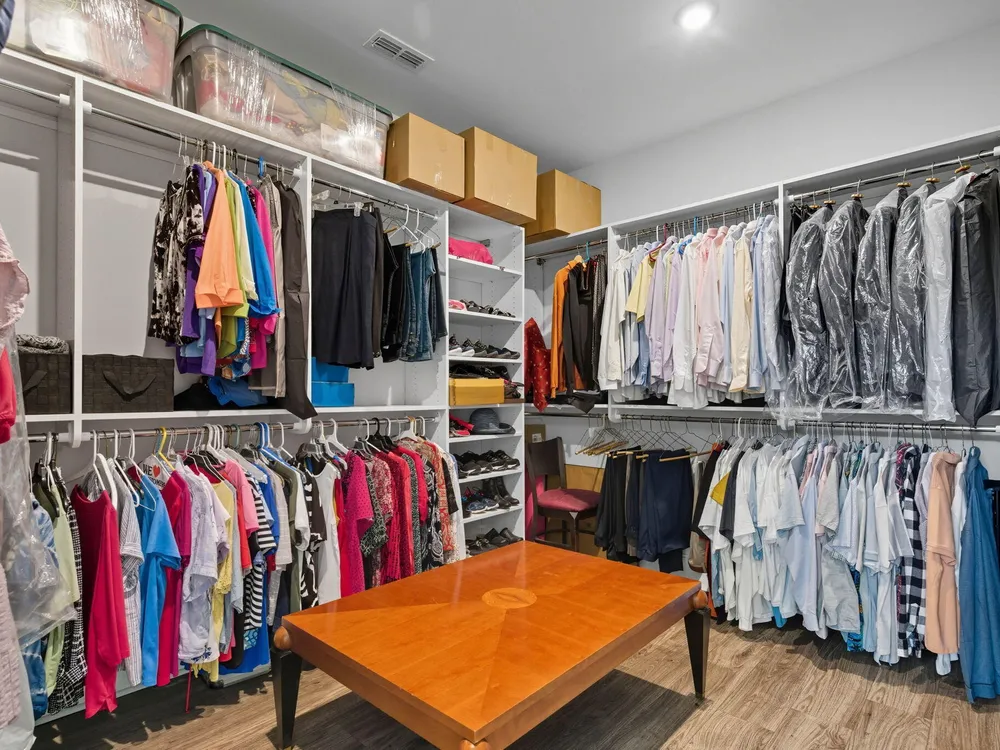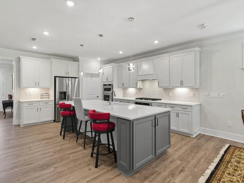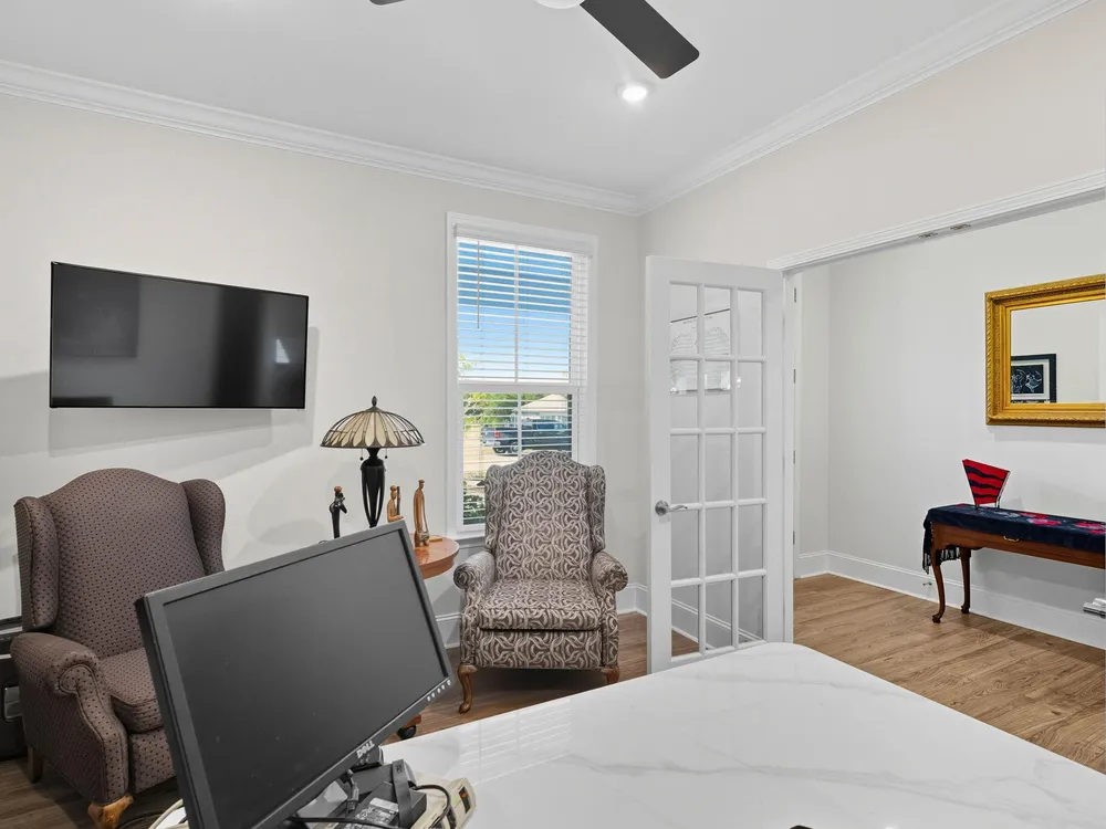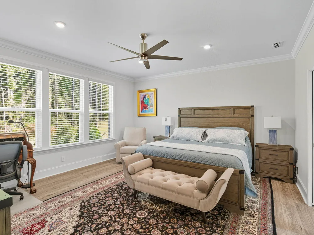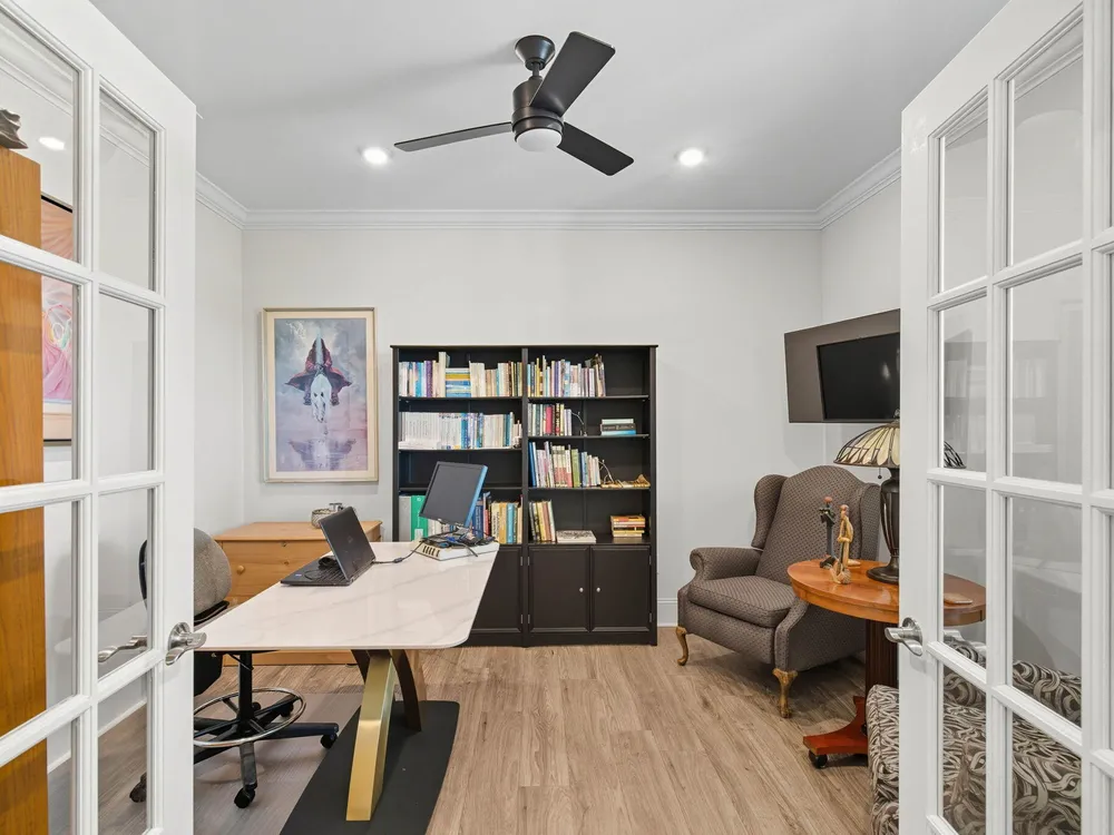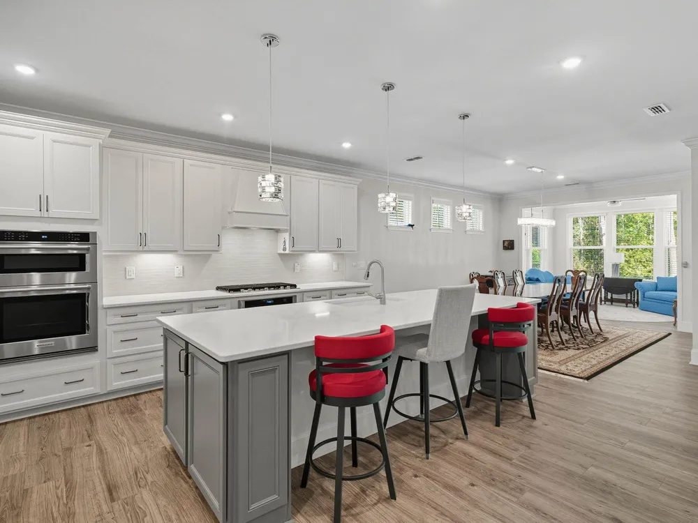- Tub Shower, Ceiling Fan(s), Crown Molding, Double Vanity, Entrance Foyer, Kitchen/Dining Combo, Living/Dining Room, Pantry, Master Downstairs, Quartz Countertops, Stall Shower, Smooth Ceilings, Tray Ceiling(s), Walk-In Closet(s), Walk-In Shower