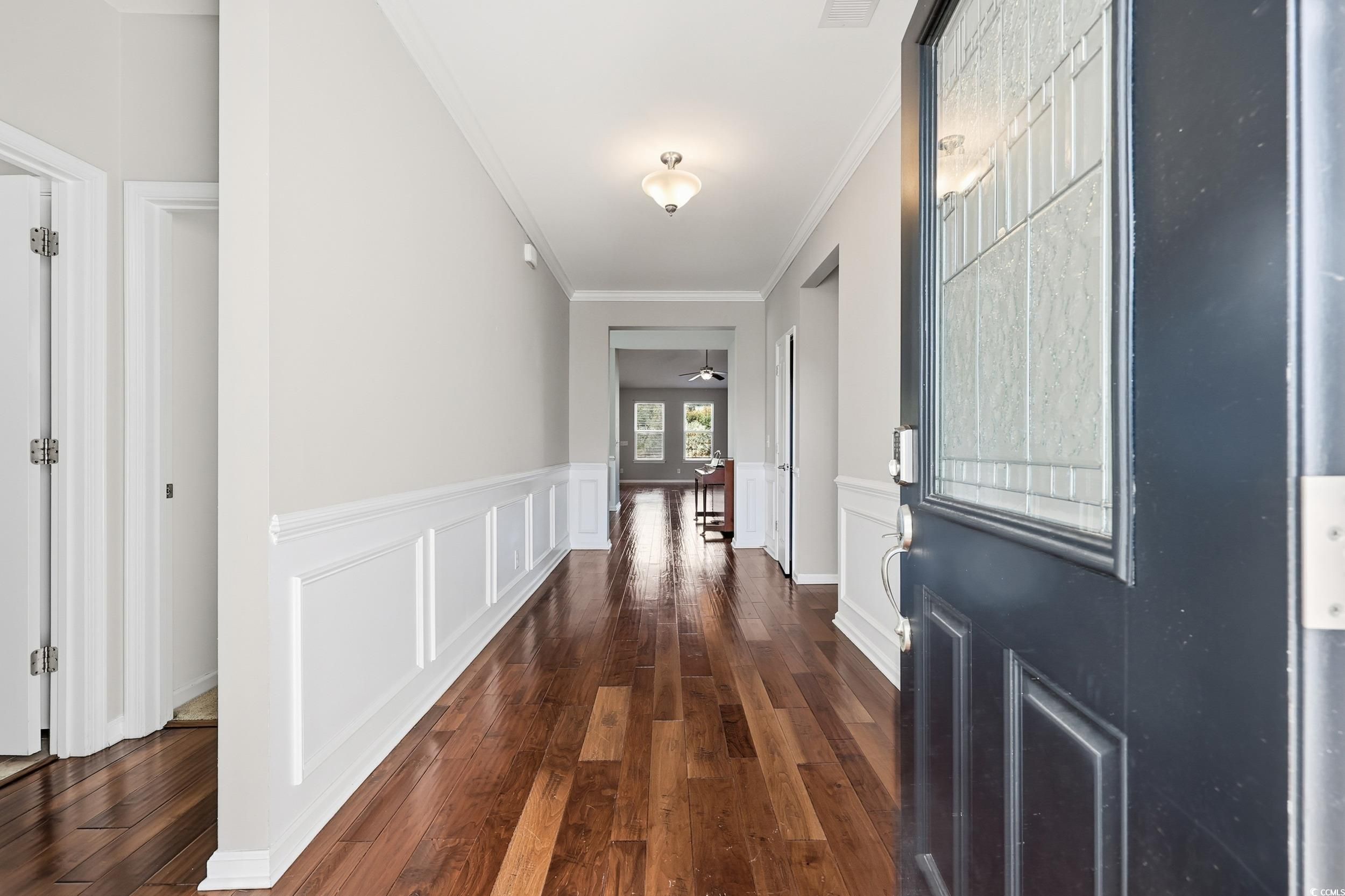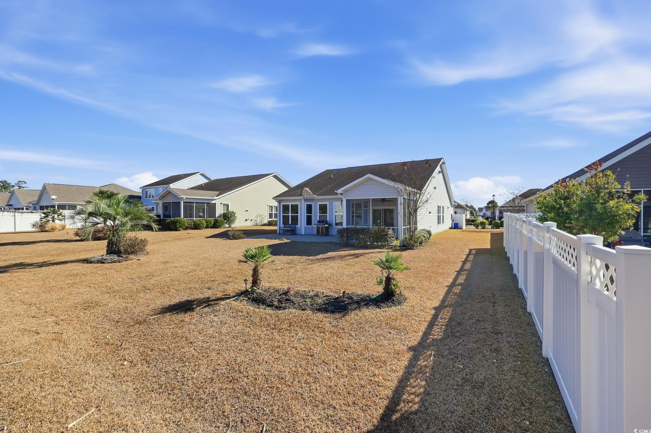 It starts with slower mornings, a quiet cup of coffee, and a home that never asks you to rush. Set in Cameron Village, this single-story residence feels settled, comfortable, and easy in all the right ways. Built in 2016, the Savannah floorplan opens with soaring ceilings and engineered hardwood floors that immediately set a calm, welcoming tone. Natural light moves through the open living spaces, making the home feel bright without ever feeling exposed. The kitchen sits at the center of it all, anchored by a granite island and stainless steel appliances, where meals are unhurried and conversations linger. The living area feels just right for evenings in, casual get-togethers, and hosting without excess. The owner’s suite offers a private place to reset, with bay windows, a tray ceiling, and a spa-style bath designed for slowing down at the end of the day. Two additional bedrooms provide flexible space for guests, hobbies, or a home office as life evolves. Outside, the screened porch becomes a favorite spot to start the day and wind it down. The extended paver patio invites relaxed evenings and coastal breezes, while the landscaped backyard remains private and easy to maintain. Cameron Village offers a well-kept, welcoming atmosphere with pools, clubhouse, tennis, and basketball courts. Located in the St. James school district and just minutes from shopping, dining, beaches, and Highway 31 access, this is a home where life feels simpler and stays that way.