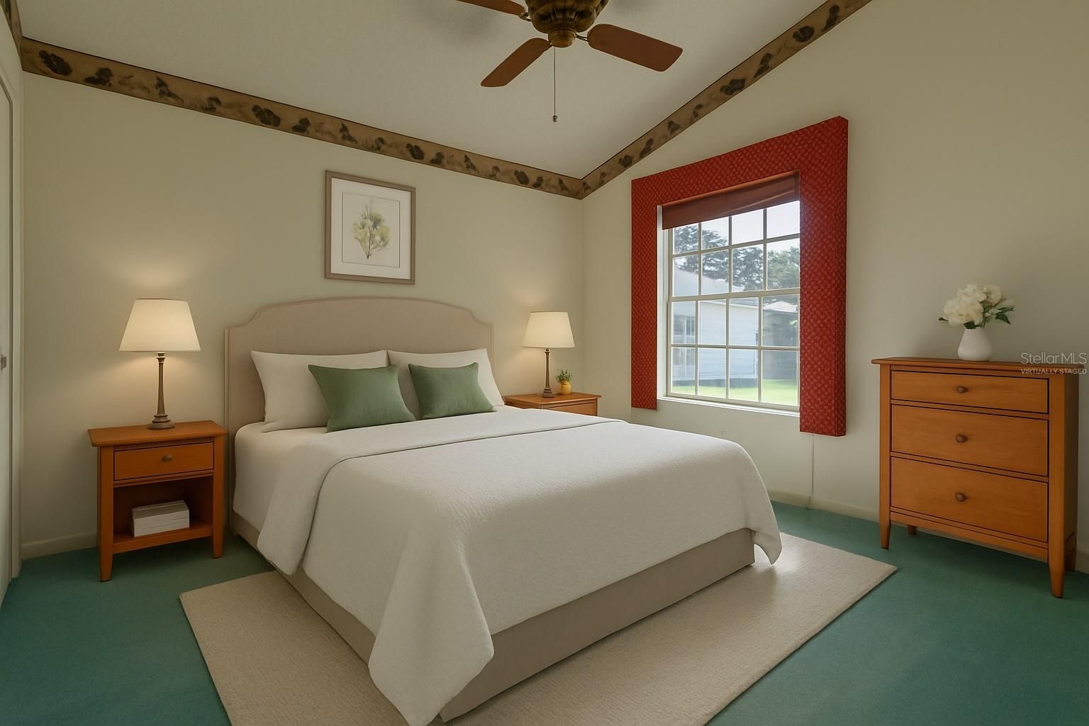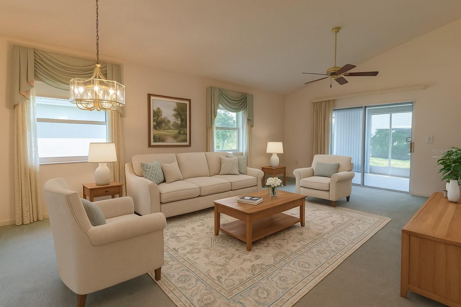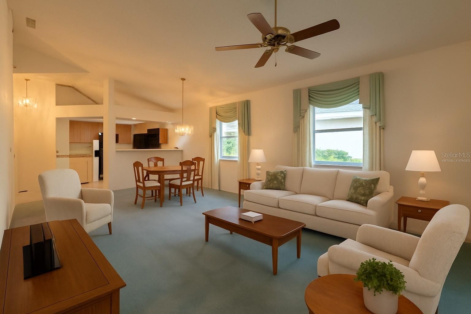 - Cathedral Ceiling(s), Ceiling Fan(s), Living/Dining Room, Split Bedrooms