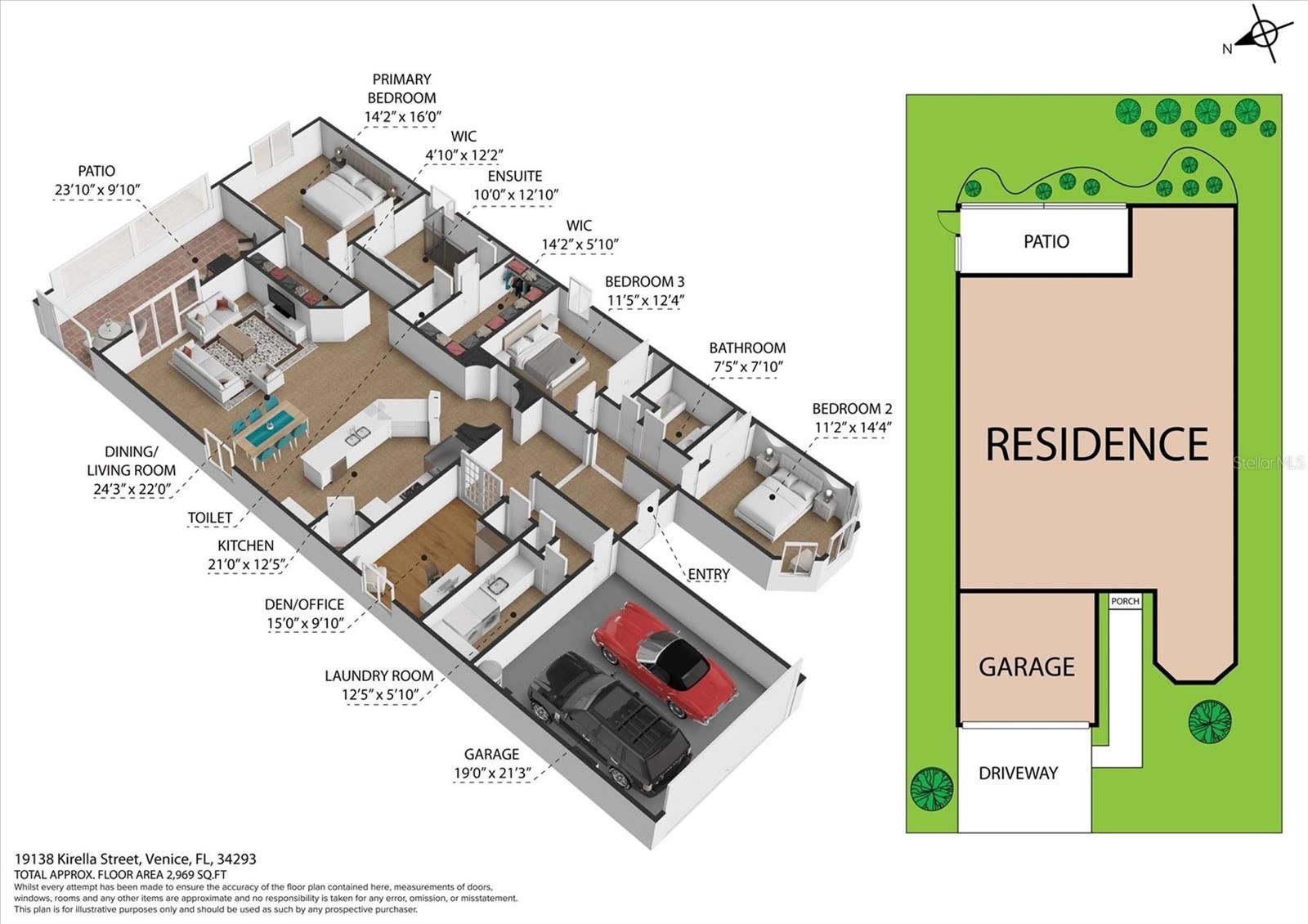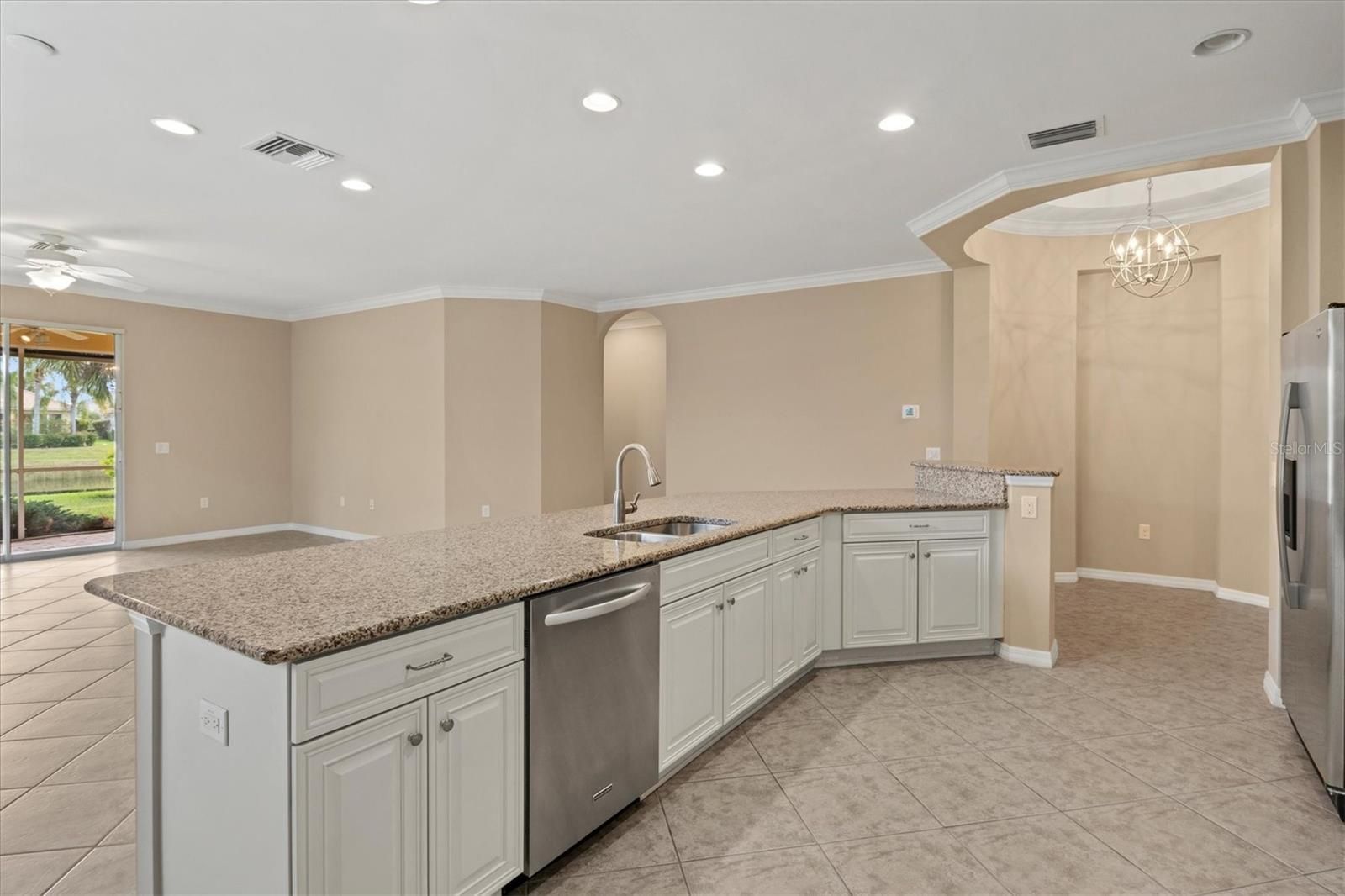One or more photo(s) has been virtually staged. Homes like this rarely come to market. THIS IS ONE OF THE BEST VALUES IN ISLANDWALK WHEN CONSIDERING PRICE, SQUARE FOOTAGE, AND THE LEVEL OF UPGRADES OFFERED. THE seldom-available DiVosta Rainer model, closely comparable to the popular Summerwood and Martin Ray floor plans, stands out by providing more functional, usable living space where it truly counts. Ideally located just steps from IslandWalk’s premier Amenity Center, this home places the community’s top amenities right outside your door. Set on a coveted lakefront homesite, this 3-bedroom, 2-bath residence also includes a dedicated office or den and a 2-car garage, delivering size, layout, and flexibility that’s hard to find. With over 2,400 square feet of interior living space, this home is priced aggressively at just $248 per square foot, making it one of the strongest value opportunities in IslandWalk today. The layout is smart and inviting, featuring a split-bedroom design and expansive open living areas that feel bright, welcoming, and perfectly suited for both entertaining and everyday comfort. At the center of the home is a chef-inspired kitchen anchored by an impressive 15-foot granite island. Custom cabinetry, stainless steel appliances, a built-in cooktop, wall oven, and an oversized walk-in pantry combine style with serious functionality. The kitchen flows effortlessly into the living and dining spaces, all overlooking the screened lanai and tranquil lake views beyond. The primary suite offers a peaceful escape with tray ceilings, large windows framing the water, and dual walk-in closets. The spa-like ensuite bath features double vanities, a linen closet, and a spacious glass-enclosed Roman shower. Two guest bedrooms are thoughtfully placed in a separate wing of the home, sharing a full bath and providing privacy for family or visitors. A flexible den with glass French doors and engineered hardwood floors adds versatility, ideal for a home office, reading room, or quiet retreat. The laundry room is equally well designed, offering built-in storage, a folding counter, and utility sink. Quality finishes are found throughout, including crown molding, plantation shutters, ceramic tile and hardwood flooring, bay windows, mature landscaping, a screened front porch, accordion hurricane shutters an electric powered kevlar motorized screens for the lanai. The oversized screened lanai overlooks the lake and creates the perfect setting to enjoy Florida’s outdoor lifestyle year-round. NEW AC IN SEPTEMBER 2024 AND NEWER HOT WATER HEATER! IslandWalk offers an unmatched amenity package with two clubhouses, an event center, resort-style pools, a lap pool, tennis and pickleball courts, a fitness center, basketball court, playground, dog park, scenic trails, and a community garden, all just steps away. With full-time activity directors and a packed calendar of events and clubs, the community is as social as it is active. Golf cart access connects you to nearby shopping, dining, and everyday conveniences, while the location places you minutes from beaches, downtown Venice, Wellen Park, spring training baseball, and easy access to Sarasota, I-75, St. Armands Circle, and Siesta Key. This is a rare opportunity to own a premium Rainer model on the water in one of Southwest Florida’s most sought-after communities. When they’re gone, they’re gone.