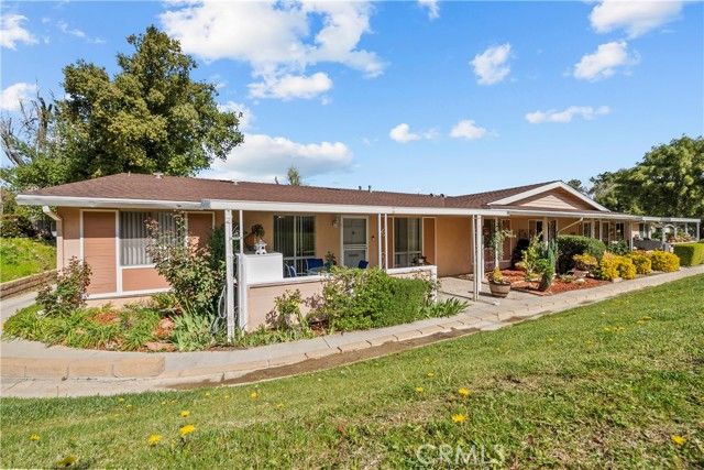 Welcome to a peaceful retreat in the highly sought-after, guard-gated 55+ community of Friendly Valley. This inviting single story, freshly painted end unit features a bright and open interior, attractive vinyl flooring, window treatments, living/family room creating a comfortable and practical living space. The kitchen features tile counters, newer cabinets with soft close convenience, stainless steel stove, microwave and dishwasher and a breakfast bar. This wonderful home also features two generously sized bedrooms on either end of the unit. The spacious primary bathroom includes a convenient walk-in shower and tub and the second bedroom features a private half-bath. Enjoy the modern ceiling fans in each bedroom, the dining area and family room. Step outside to enjoy the large covered patio, outdoor dining, or entertaining guests. The home also includes an assigned one-car covered carport with additional storage on the patio and carport for added convenience. Residents of Friendly Valley enjoy an exceptional array of resort-style amenities, including an 18-hole Pitch & Putt golf course and a 9-hole Executive Par-3 course, lush greenbelts, swimming pool and spa, clubhouse, lawn bowling and much more! HOA dues provide outstanding value and peace of mind, hot water, trash, sewer,