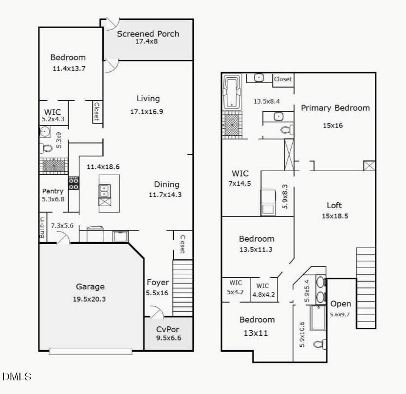 Located in the desirable Buckhorn Preserve neighborhood, this lovely two-story home is perfectly positioned at the end of a quiet cul-de-sac and borders open green space. Upon entering, you are greeted by a welcoming foyer with a soaring ceiling that creates a bright and spacious atmosphere. The open-concept design connects the kitchen, dining area, and living room, offering a seamless flow for entertaining and daily living. The gourmet kitchen is equipped with quartz countertops, stylish tile backsplash, stainless steel appliances, and a spacious walk-in pantry. Additionally, a fourth bedroom is located on the main floor, providing flexibility for guests or a home office. The upper level features a private primary suite, offering a peaceful retreat. There is also a bonus room or loft area that can be used for recreation or relaxation. Two secondary bedrooms are situated upstairs, and all bedrooms in the home are enhanced with walk-in closets, ensuring ample storage space. A delightful, screened porch overlooks the private backyard, which is bordered by a wooded buffer for added seclusion. This well-appointed home combines thoughtful design and desirable features in a prime location. Don't miss the opportunity to make it yours today!