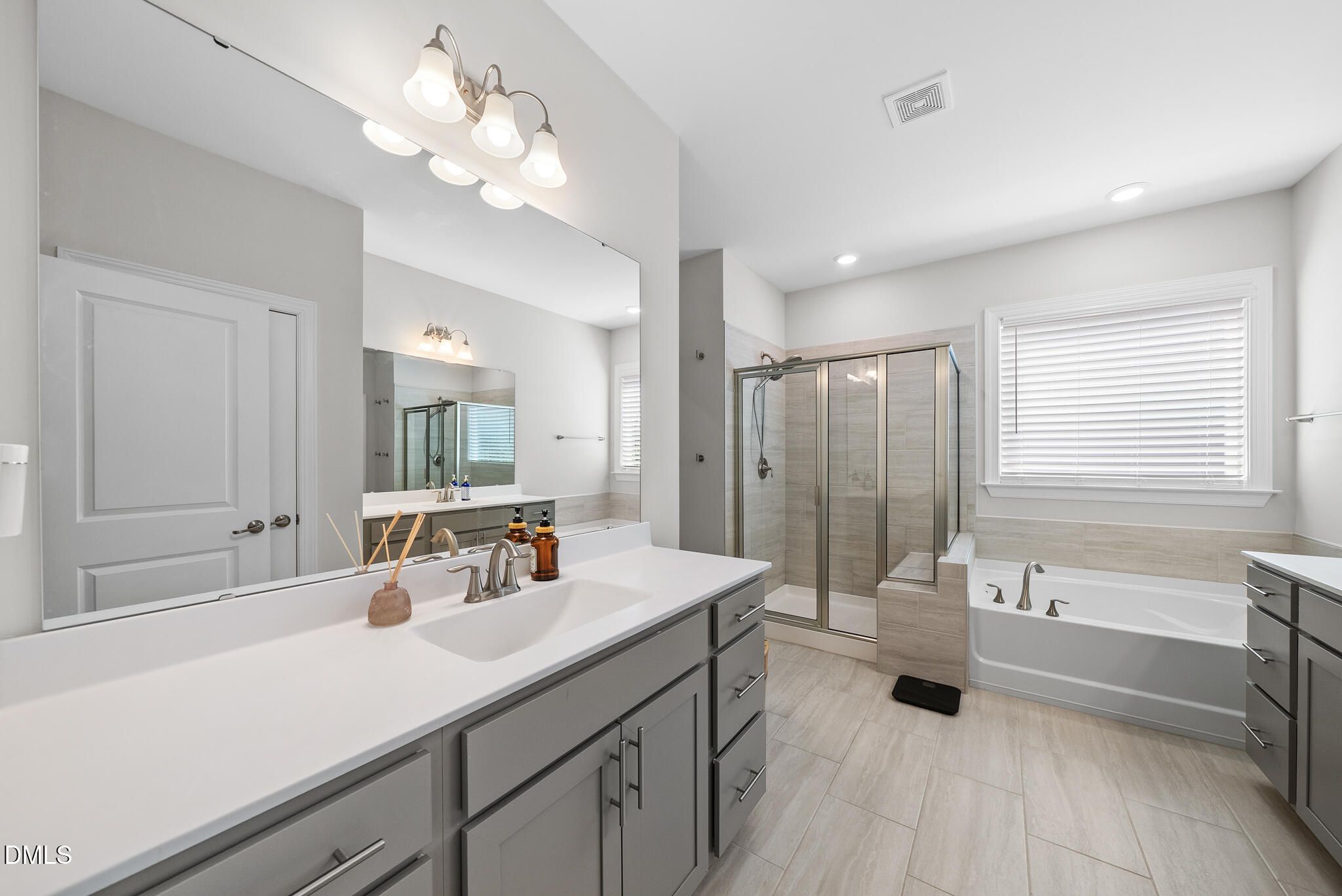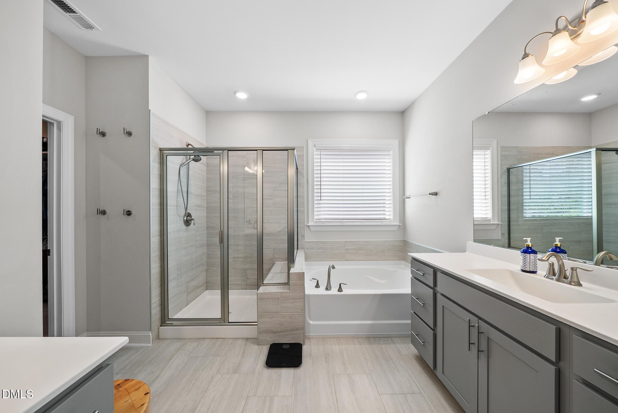 - Tub Shower, Double Vanity, Kitchen Island, Open Floorplan, Pantry, Quartz Countertops, Separate Shower, Smooth Ceilings, Soaking Tub, Walk-In Closet(s), Water Closet(s)