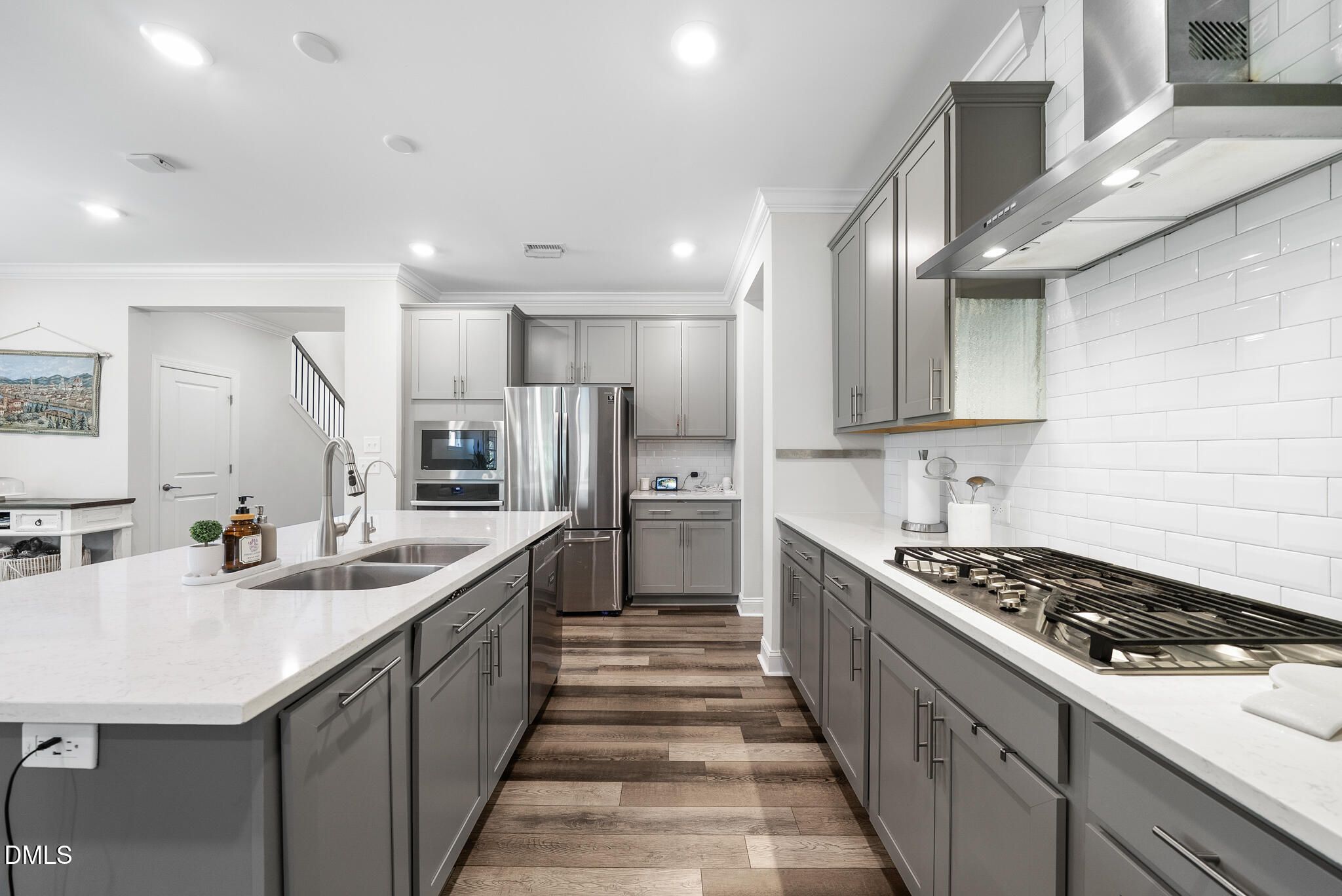 - Dishwasher, Disposal, Gas Cooktop, Microwave, Plumbed For Ice Maker, Stainless Steel Appliance(s), Vented Exhaust Fan, Oven