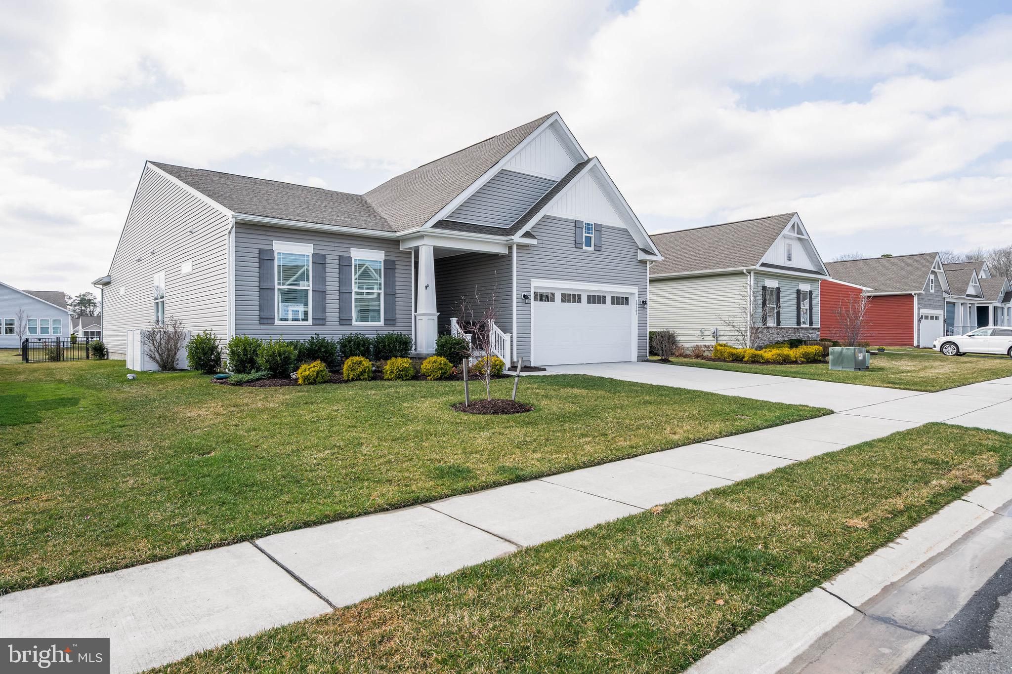 Huge Price Improvement! MOTIVATED SELLER! MUST SELL due to family emergency. Bring All Offers! This Stunning LEWES ranch home located in this amazing 55+ community just a few miles to the Atlantic Ocean. This immaculately kept home welcomes you with three bedrooms and two and a half bathrooms with ample space for comfortable living. The open floor plan enhances connectivity and flow between the living areas, making it perfect for entertaining or family gatherings. The stunning gourmet kitchen, featuring a 12-foot island and two pantries, is a chef's dream, providing plenty of lighting and room for meal preparation and storage. The open concept living space showcases a natural gas burning fireplace for those cozy chilly evenings. The sunroom, equipped with a mini-split for colder weather heating and A/C in the summer, adds a nice touch and extends the living space throughout the year. This laundry room provides a utility sink that is difficult to find these days and has space for additional storage as well. The drop zone bench is a great feature too! Additionally, the unfinished basement with plumbing for a future bathroom presents an excellent opportunity to customize and expand the home as needed. Front Door includes a Storm Door with a build-in screen. Private well for Irrigation System. Lastly, the three-car garage offers one side of tandem space which could accommodate a camper, motorcycle or small boat. This home is ideal for anyone looking for comfort, style, and tons of space. Oh and PS! The backyard is fenced in with attractive black aluminum fencing perfect for your fur babies. AND, to put the cherry on top: The community has a kayak launch with boat storage, a walking trail around the perimeter of the community in the woods, a fitness center, clubhouse with billiards, pool tables, an Olympic size swimming pool, pickleball courts, bocce ball, and a full-time program director with many adult activities.