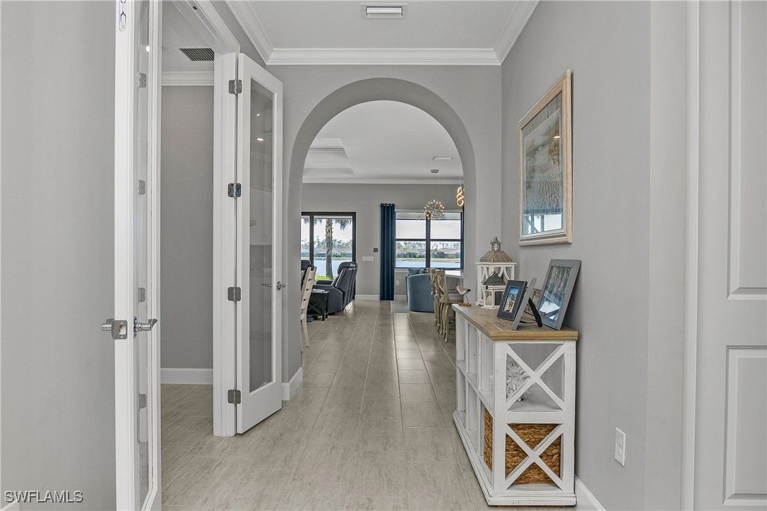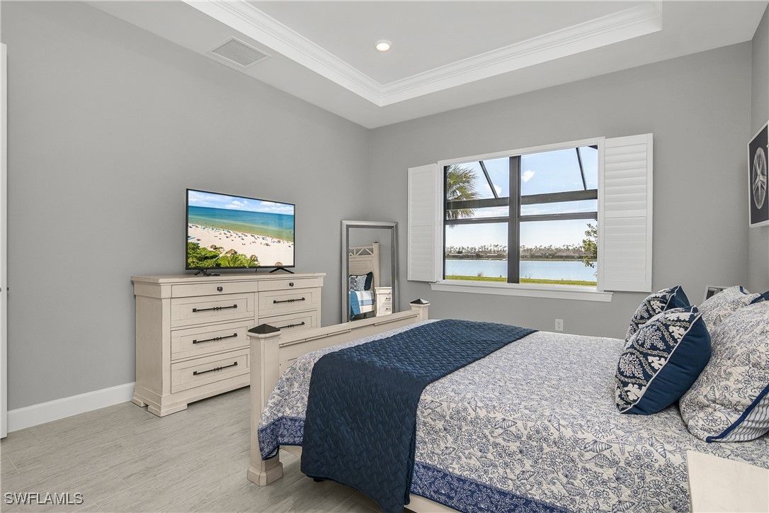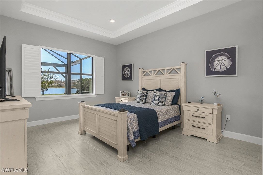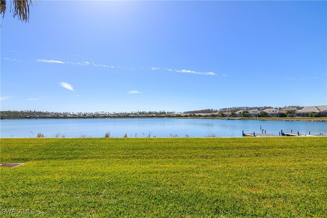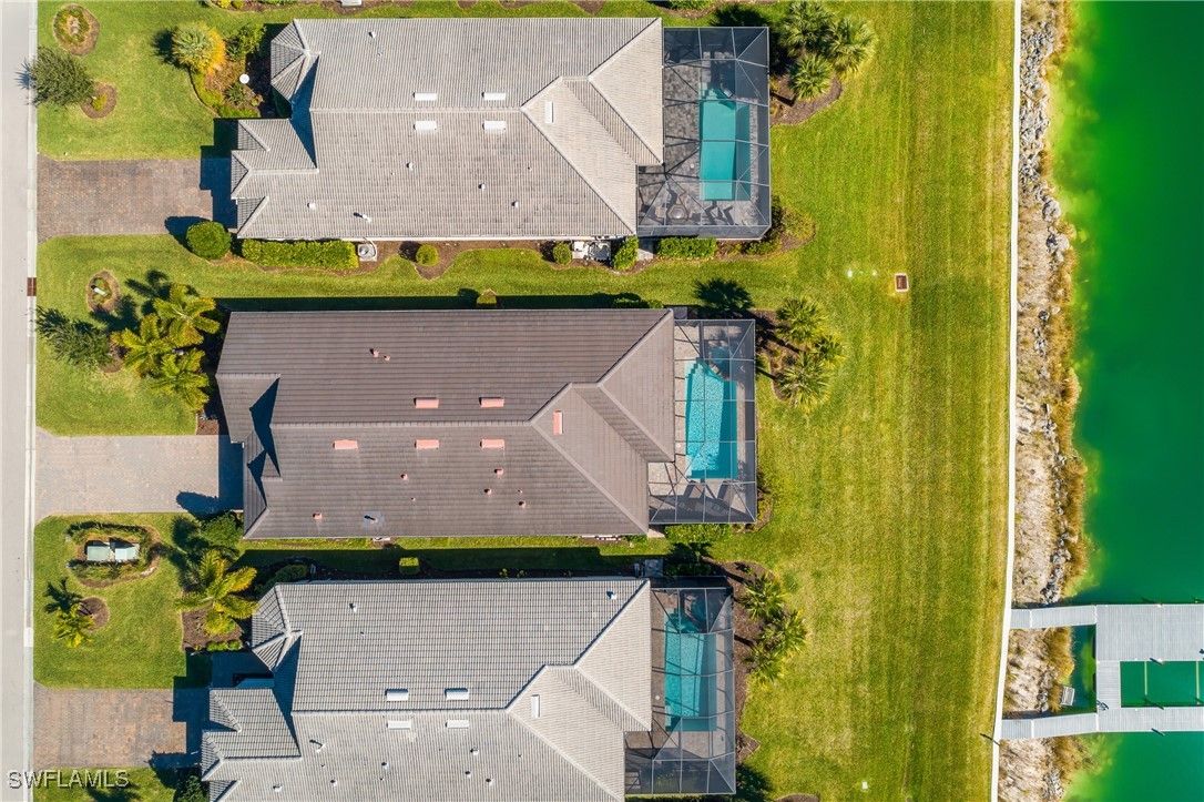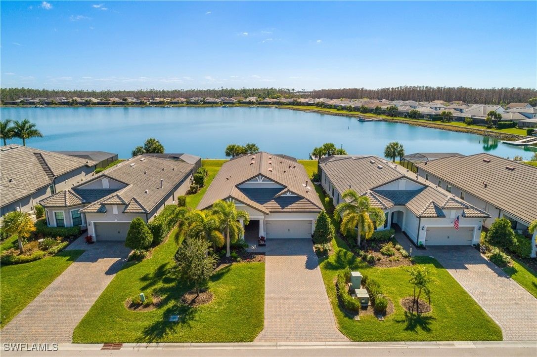 LAKEFRONT & SOUTHERN EXPOSURE in WildBlue! Welcome to 19165 Aqua Shore Drive, a pristine Summerwood floor plan offering 2,178 square feet of thoughtfully designed living space in the highly sought-after lake and boating community of WildBlue. Perfectly positioned on Indigo Lake, one of WildBlue’s boating lakes, this home offers southern exposure, tranquil water views, and the opportunity to add a private dock for those who want to fully embrace the lakefront lifestyle. This 3-bedroom plus den, 2-bath residence features an open, split-bedroom floor plan and has been meticulously maintained—so clean and lightly lived in that it feels nearly new. Tile flooring flows throughout the home, complemented by plantation shutters, crown molding in the great room and primary suite, and impact-resistant doors and windows for peace of mind. The heart of the home opens seamlessly to outdoor living, where a private pool and spa are framed by a picture-window lanai screen, delivering unobstructed, panoramic lake views—ideal for relaxing mornings and sunset evenings. A welcoming front porch adds charm and curb appeal, while professional landscaping enhances the home’s serene setting on a quiet street. This home also features an oversized two-car garage with a 4-foot extension and generous storage throughout. Residents may lease a dock at the WildBlue amenity center, and for golf enthusiasts, optional memberships are available at neighboring Grandezza. This is a rare opportunity to enjoy boating-lake frontage, southern exposure, and resort-style living in one of Southwest Florida’s most desirable communities. Wildblue is an amenity-rich, boating and lakefront community, where residents enjoy access to an onsite restaurant, lake beach, sports complex, and a vibrant, active social scene. Whether you're looking for a seasonal retreat or a full-time residence, this nearly new home is MOVE-IN READY and waiting for you. Don’t miss this exceptional opportunity to own a lakefront home!