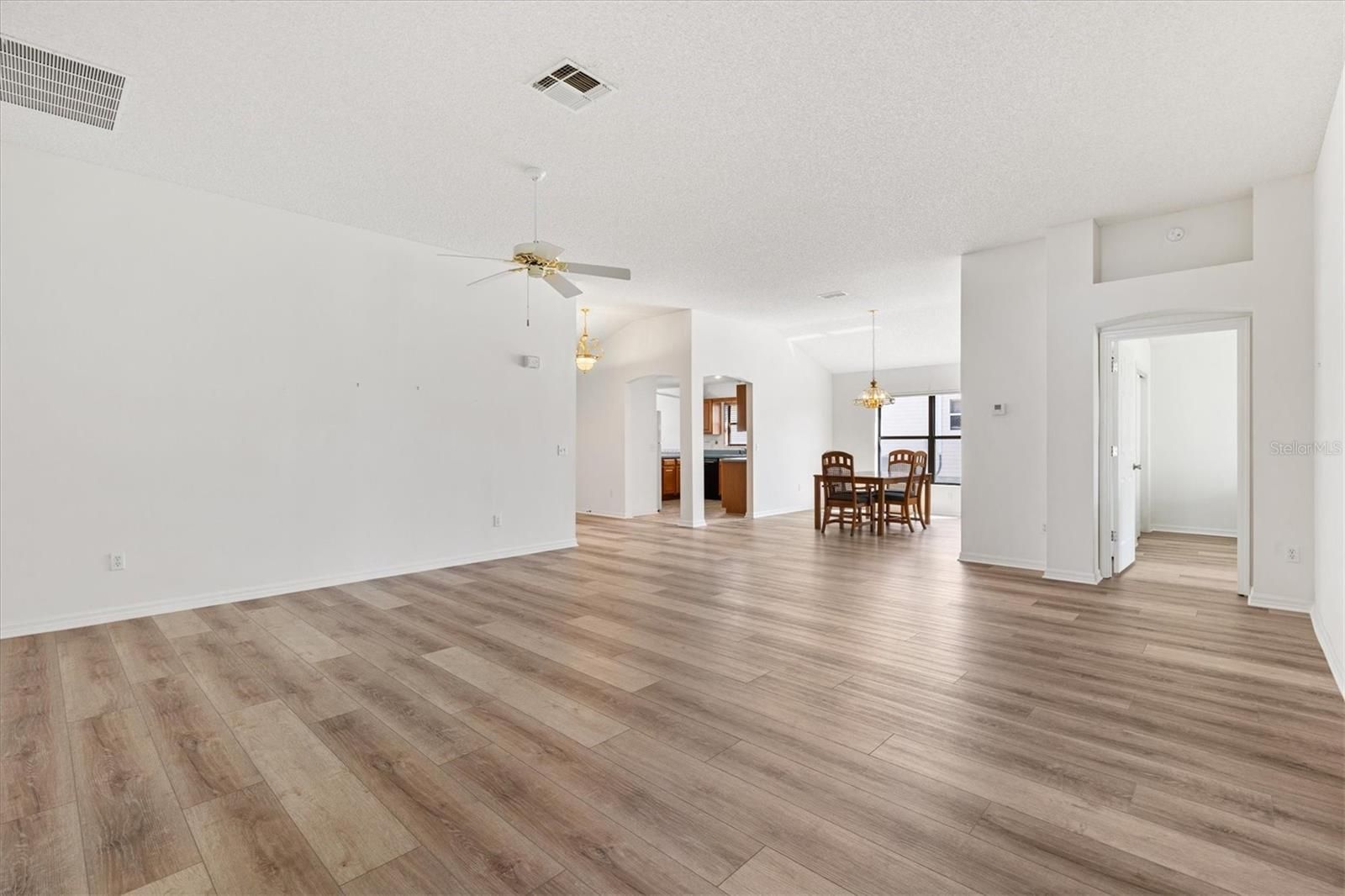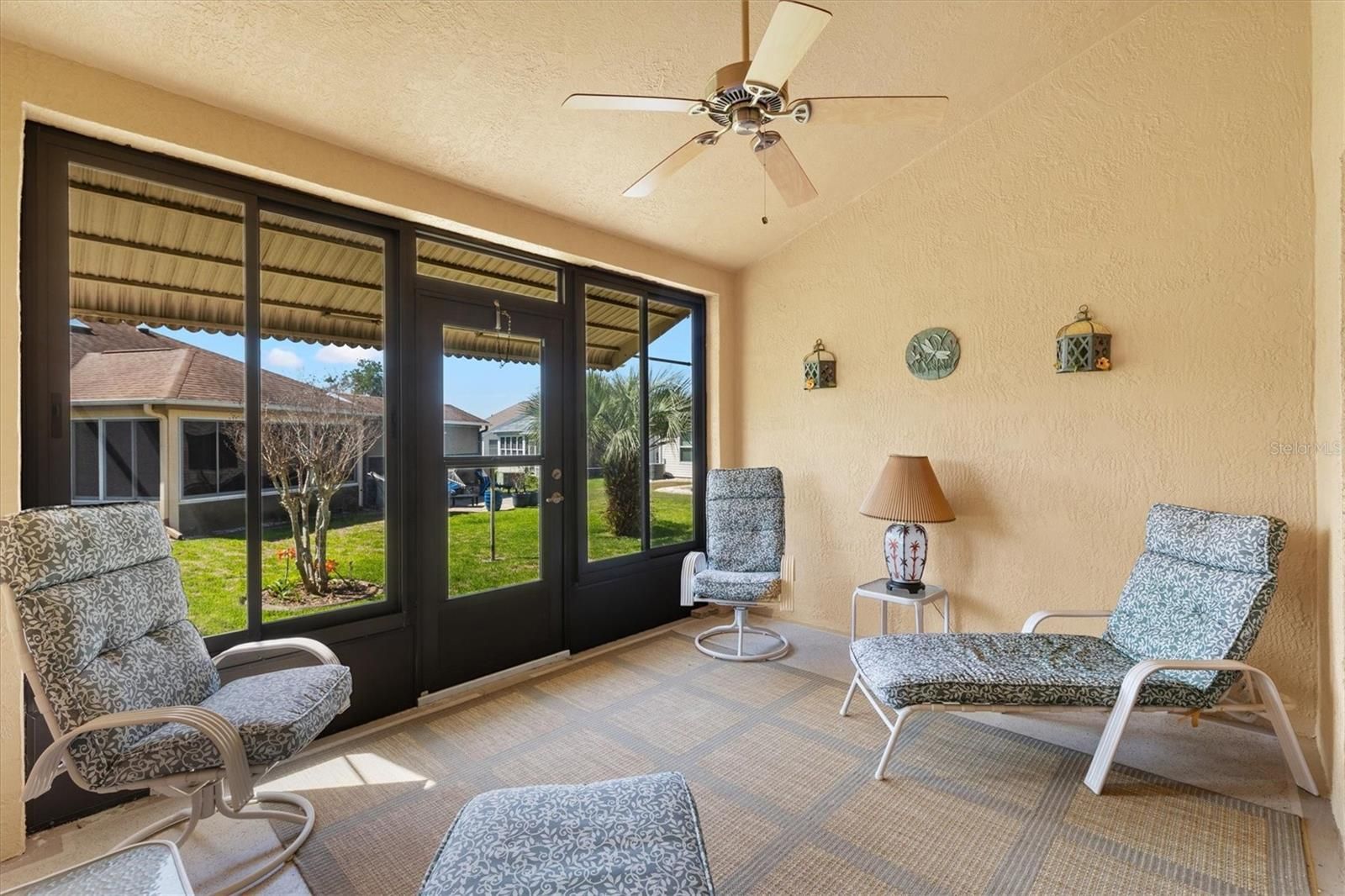 Your journey to THE VILLAGES, FLORIDA begins here! This DESIGNER HOME FOR SALE IN THE VILLAGES, FLORIDA features the popular VERA CRUZ floor plan and is located in desirable SUMTER COUNTY just steps from TIERRA DEL SOL COUNTRY CLUB, Championship Golf Course, and Tierra Del Sol Recreation Center. Offering nearly 2,000 square feet of living space, this 3 BEDROOM, 2 BATHROOM home features a SPLIT FLOOR PLAN with a private guest wing positioned across the home from the primary suite, providing both comfort and privacy. Inside, BRAND NEW LUXURY VINYL PLANK FLOORING runs throughout the living areas and bedrooms, creating a seamless and modern look with the durability of today’s waterproof vinyl technology. With brand new flooring and a spacious layout, this home offers a MOVE-IN READY opportunity to start enjoying THE VILLAGES lifestyle immediately. The spacious main living area flows naturally into a LARGE DESIGNATED DINING SPACE, perfect for hosting holiday meals, dinner parties, or board game night with new friends here in THE VILLAGES. The SPACIOUS KITCHEN features extensive SOLID WOOD CABINETRY throughout with no MDF or refaced cabinets. A NEW MICROWAVE has recently been installed, and the layout provides AMPLE COUNTER SPACE for cooking, entertaining, and bar seating. An EAT-IN KITCHEN AREA offers the perfect spot for morning coffee or a relaxed dinner at home. A unique bonus feature is the CONVERTED LAUNDRY ROOM HOBBY SPACE, providing a flexible area for crafts, music, projects, or relaxation. The full-size washer and dryer are conveniently located just steps away through the spacious 2-CAR GARAGE. The garage also includes a BUILT-IN WORKBENCH and tools, offering a ready-to-use workspace for projects around the home. NEW HEAT PUMP installed 2024 - Exterior Block & Driveway PAINTED 2023! Additional highlights include a GLASS STORM DOOR WITH SCREEN to let in Florida sunshine and breezes, MULTIPLE CEILING FANS THROUGHOUT, and a COZY ENCLOSED LANAI with sliding windows and screens, allowing you to relax comfortably year-round. It is the perfect place to enjoy morning coffee, read the paper, or unwind in the evening after a round of golf. A 2012 YAMAHA GAS GOLF CART is also available separately if YOU would like to start enjoying the golf cart lifestyle from day one. The location is exceptional, situated just steps from Tierra Del Sol RECREATION CENTER, Pool, Country Club, and CHAMPIONSHIP GOLF COURSE. Known as one of the most famous GOLF CART COMMUNITIES IN FLORIDA, THE VILLAGES allows residents to travel to golf, dining, shopping, and entertainment entirely by golf cart. Living here means enjoying convenient access to recreation centers, clubs, restaurants, shopping, medical services, and countless activities that make THE VILLAGES FLORIDA RETIREMENT COMMUNITY one of the most sought-after ACTIVE ADULT COMMUNITIES IN FLORIDA.