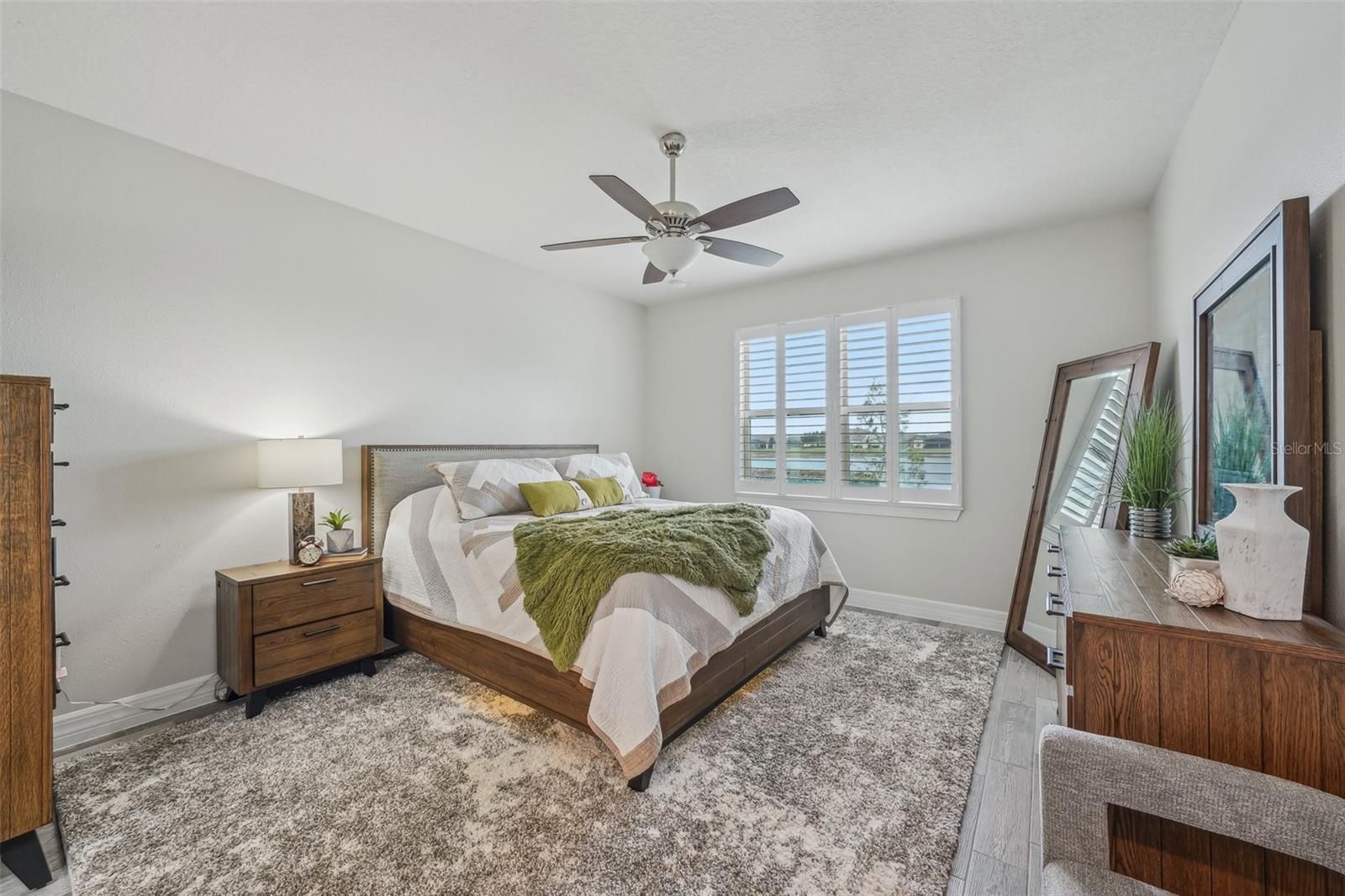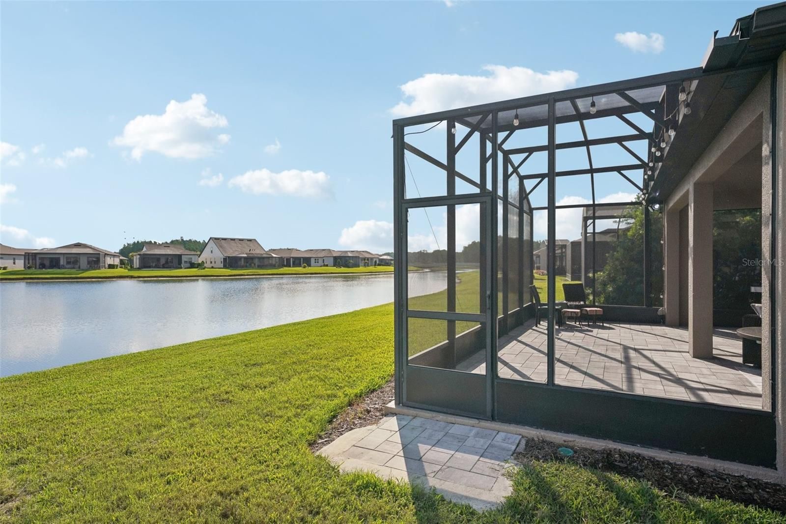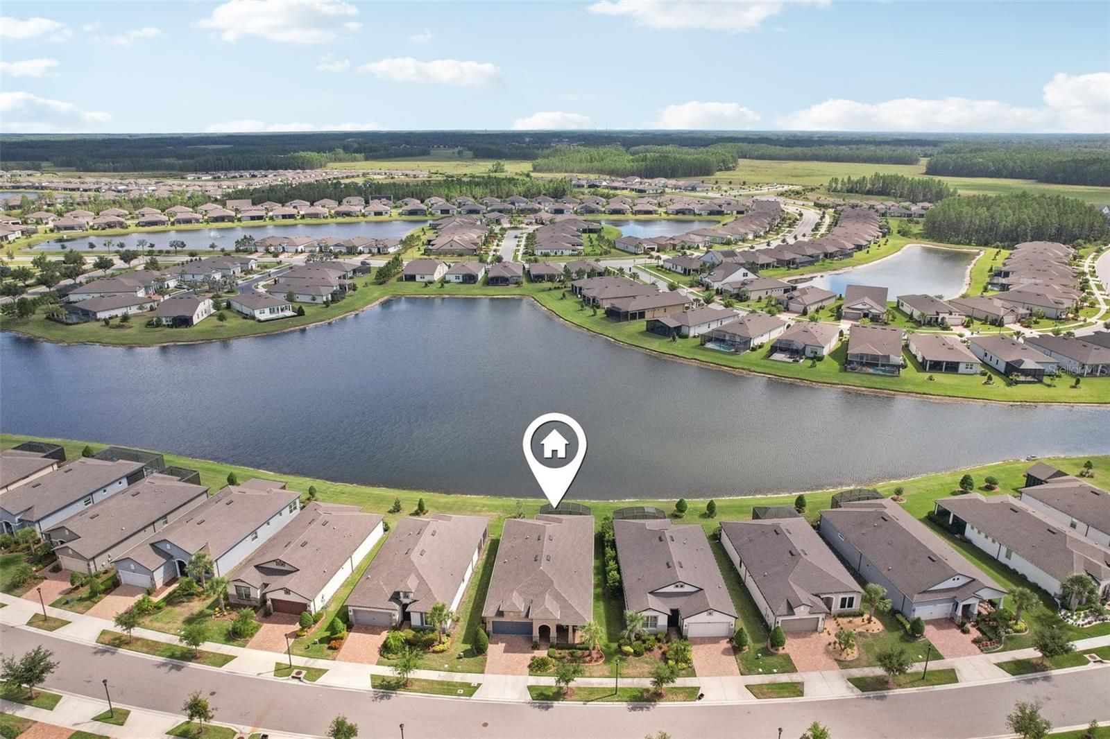 Step into elevated Florida living in this meticulously maintained, model-perfect 2019 home—located in the newly built subdivision of Del Webb Bexley, a premier 55+ active community known for its vibrant lifestyle and high-end amenities. This single-story, standalone home showcases a Mediterranean transitional design with architectural details that include curved archways, rounded corners, and ceramic clay tile flooring throughout. It’s as well-built as it is beautiful. Stately rectangular columns and real stone accents enhance the façade, while a covered front porch and smooth brick pavers create a warm, welcoming first impression. The interior and exterior were freshly painted just over a year ago. A coordinating slate blue garage and front door add a sophisticated pop of color that complement the neutral palette and ties into the surrounding stonework. Beneath the beauty, insulated concrete block construction provides enhanced thermal efficiency—reducing energy use and maintaining year-round comfort. With over 3,100 SF of total space, this home is designed to blend indoor and outdoor living. From the moment you enter, your eye is drawn through the open-concept layout—where the kitchen, living, and dining areas flow together—toward the lanai and vast pond view. At the heart of the home is the entertainer’s kitchen, designed to impress and built to perform. It features granite countertops, a sprawling center island with sink and breakfast bar seating, soft-close wood cabinetry with pull-out shelves and deep drawers, a professionally designed walk-in pantry with pull-out baskets and wine storage, and a KitchenAid natural gas griddle stove with exhaust hood. The primary suite is located at the back of the home, offering serene pond views. The en-suite bath is filled with natural light and includes dual vanities, a walk-in linear shower with bench and dual shower heads, a large linen closet, a private water closet, and a walk-in closet with built-in organizational shelving. Two guest bedrooms are thoughtfully positioned for guest privacy. Step outside to your oversized 24’ x 19’ lanai, with cement-tile flooring and a durable tension-cable screen that preserves wide-open water views—perfect for evening gatherings around the firepit table. The extended garage offers space for 2 cars + a golf cart and is outfitted with epoxy flooring, ceiling storage, and an insulated, impact-rated door with a raised threshold to help keep out debris. A full-sized laundry room provides upper and lower cabinetry, a washtub sink, and LG washer and dryer. Additional upgrades include: 8' interior doors, modern wide baseboards, gas-powered tankless water heater, whole-house water softener and RO system, and an in-wall pest control system with exterior access. Del Webb Bexley’s gated entrance leads to an exceptional amenity center featuring a 19,000-square-foot clubhouse, resort-style pools with lap and resistance lanes, hot tub, a fitness center, amphitheater, walking trails, pickleball and tennis courts, dog parks, a community garden, and a full calendar of social events. This home offers the perfect blend of style, comfort, and active living in one of Land O’ Lakes’ most desirable communities. Come experience the resort lifestyle every day.