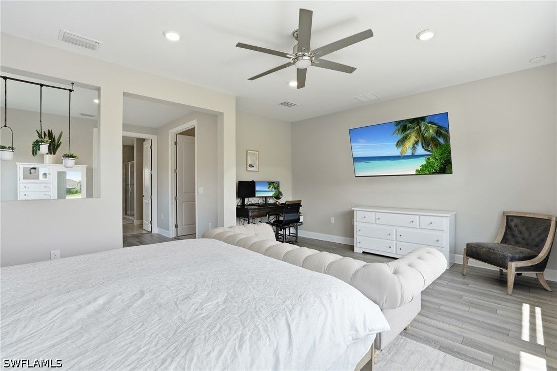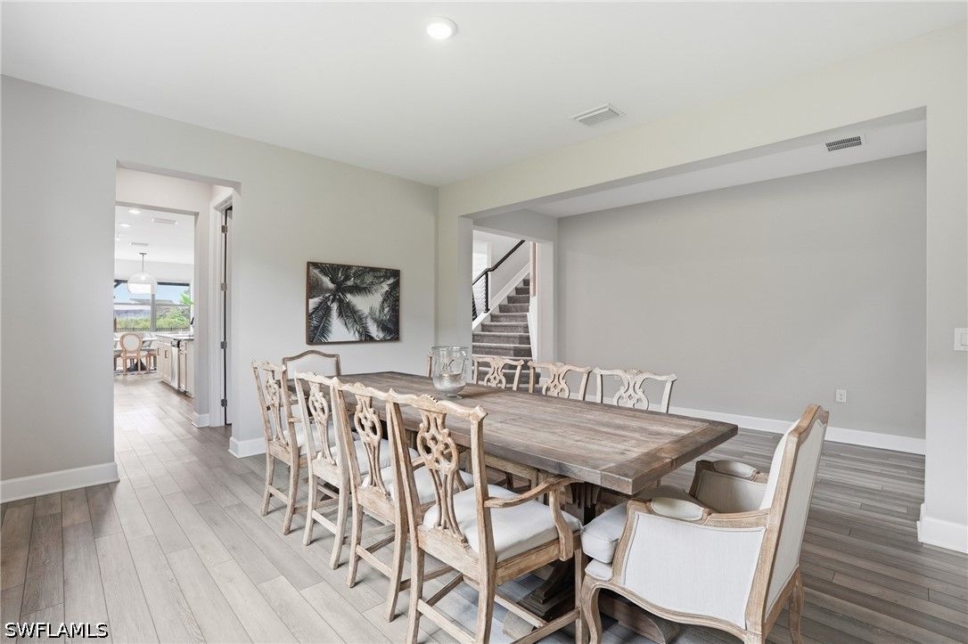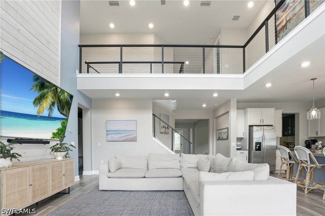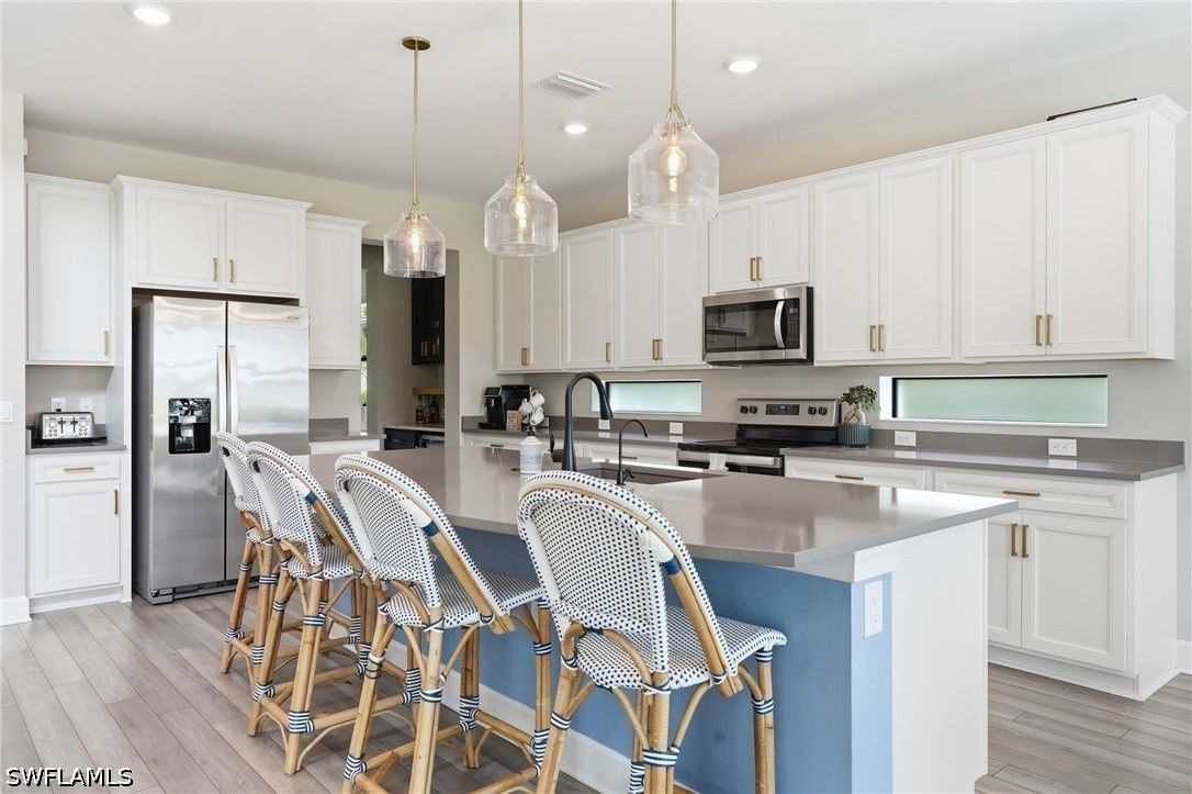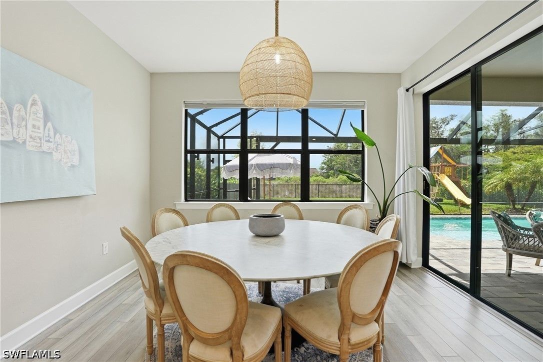 Welcome to an extraordinary lifestyle opportunity where every day feels like a year-round luxury resort escape. This expansive residence is more than just a home—it is an elevated living experience defined by elegance, comfort, and a rare sense of retreat. From the moment you enter this exclusive gated community, you are immersed in a setting that immediately feels different—where lush surroundings, thoughtful design, and resort-caliber amenities come together to create a lifestyle that feels effortlessly indulgent. Whether you are spending the afternoon poolside, staying active with world-class recreation, or simply enjoying the sunshine and warm Florida breezes, life here is designed to feel like a permanent vacation. Every detail of the community has been curated to enhance both relaxation and connection, offering a place where residents don’t just live—they truly unwind, recharge, and thrive all year long. The community is truly world class, featuring an incredible resort-style pool with dual zero entry access points, cascading waterfalls and an expansive sun-soaked lounging areas, enjoy it all with poolside service from the bar and restaurant. Residents also enjoy 8 pickleball courts, 6 clay tennis courts, a sand volleyball court and a fully equipped two-story fitness center. A vibrant social scene awaits at the open-air poolside restaurant and bar, and a separate bourbon bar for evening gatherings. Additional amenities include a 40 person hot tub, a coffee cafe and ice cream shop, a beautifully designed playground, full basketball court and a dedicated dog park - creating a lifestyle that blends relaxation, recreation and community connection. The home itself is a standout masterpiece of coastal-modern design, offering 4 spacious bedrooms, all with walk in closets, along with two versatile bonus spaces of the main floor ideal for additional bedrooms, a private office or a media room. Every detail of this home has been thoughtfully curated with high-end upgrades throughout, including a dramatic two story custom wood plank feature wall, designer lighting and a bright open layout perfect for entertaining. Custom cabinetry and quartz makes the laundry enjoyable. The primary suite is spa-like with a beautiful soaking tub, separate sink spaces and custom built his and her closets. The great room fully opens to the covered patio and pool, giving the ultimate indoor-outdoor feel. Come experience an elevated lifestyle you have been waiting for.