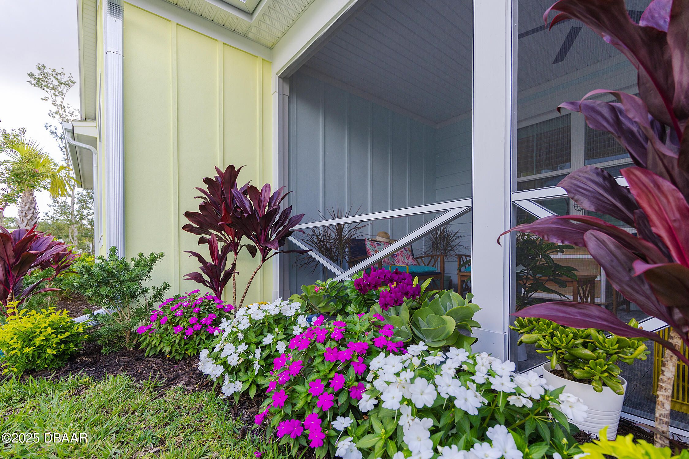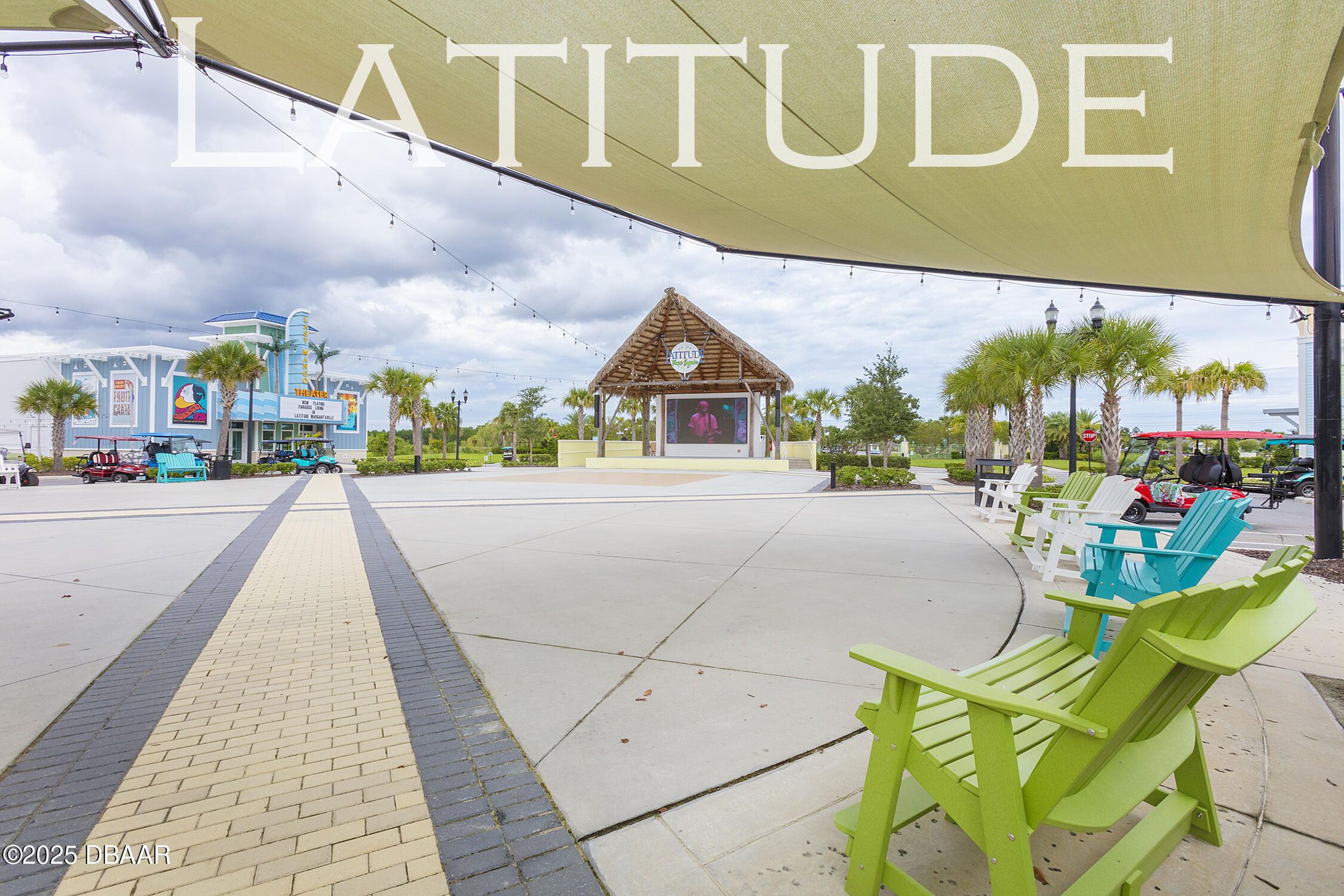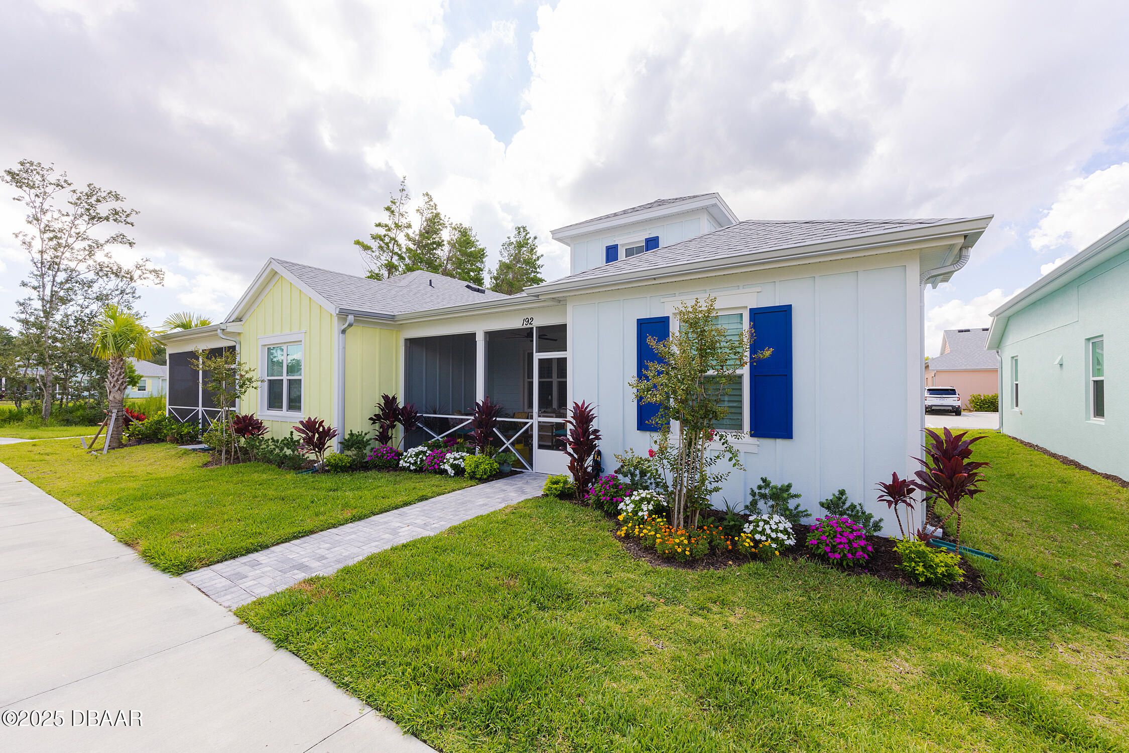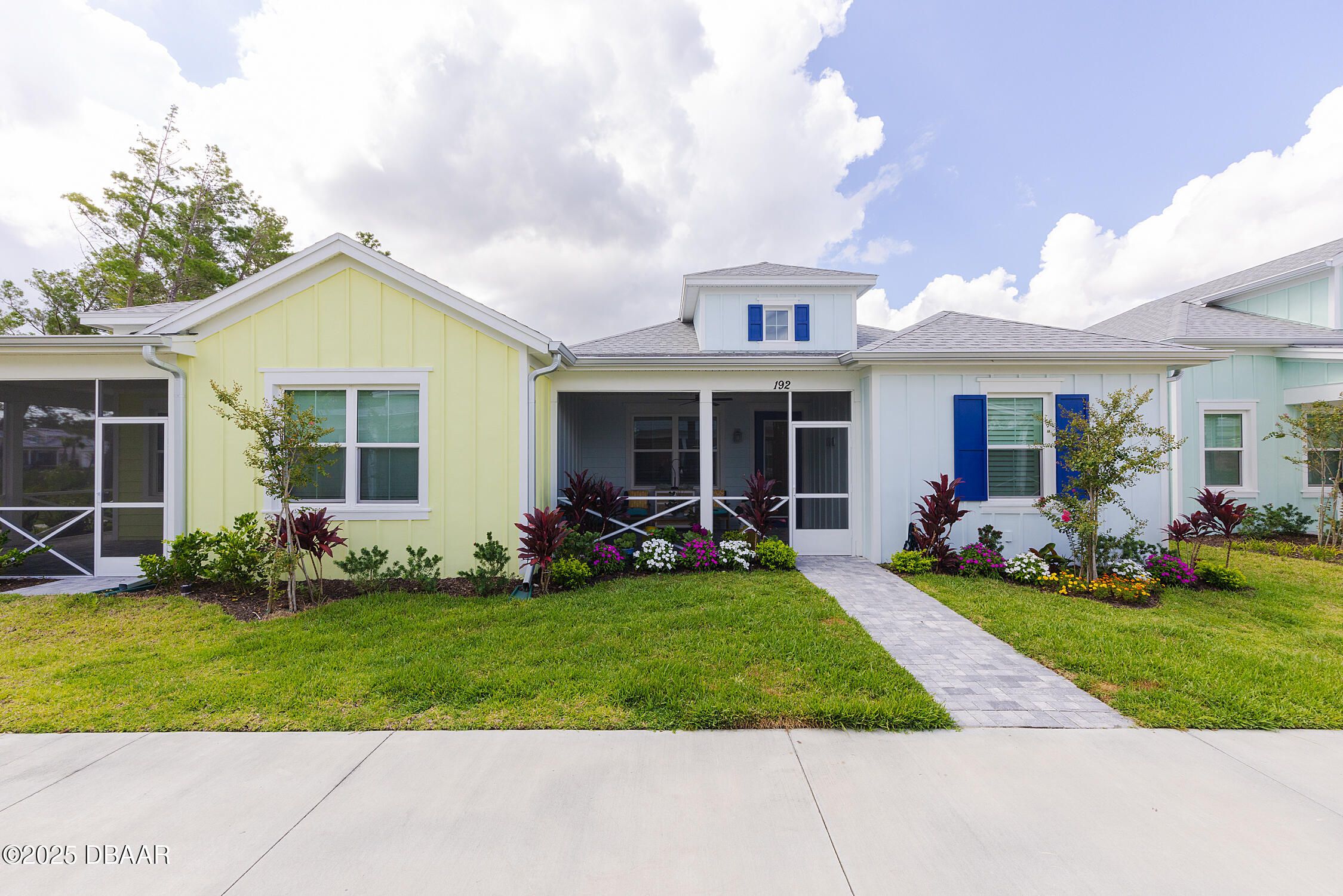 This stunning 2024-built Camellia Conch model offers the perfect blend of island-inspired living and modern comfort. Featuring 2 split bedrooms, 2 bathrooms, and a 2-car garage, this home was thoughtfully designed for both relaxation and entertaining. Step inside to an open-concept layout with bright, airy living spaces and elegant finishes throughout. Upgrades abound with vaulted beams in the living room and neutral colored tile throughout the entire home. Modern looking Plantation blinds and newly painted soft yellow walls in the living area adds a tropical feel. The gourmet kitchen boasts stainless steel appliances, quartz countertops, upgraded 42'' soft close cabinets and a spacious island — ideal for gathering with friends. Additional flex room near the kitchen is so convenient and can accommodate a large dining room table, or could be used as an office. Upgraded lighting and fans. Extra large capacity, front loading GE washer and dryer are included. The owner's suite provides a private retreat with a walk-in closet and spa-style bathroom featuring a glass walk-in shower, double vanity and custom-built storage. A versatile guest bedroom and bath ensure plenty of space for visitors. Enjoy indoor-outdoor living with a spacious screened in lanai with pavers, perfect for morning coffee or evening cocktails. The home is ideally situated near a large green space and park, complete with covered picnic tables and a grill. HOA maintenance of the outside painting and grounds means more time to soak in the Margaritaville lifestyle. Living in the gated community of Latitude Margaritaville means access to world-class amenities: resort-style pools, fitness center, restaurants, live entertainment, private beach club with daily shuttle, tennis, pickleball, bocce, a pet spa and park, and endless activities designed for active adults 55+. Located just minutes from shopping, dining, medical facilities, and the beautiful beaches of Daytona. Whether you're seeking a full-time residence or a tropical getaway, this home is move-in ready and waiting for you! The golf cart (valued at $10,000) may be purchased for $6,000.