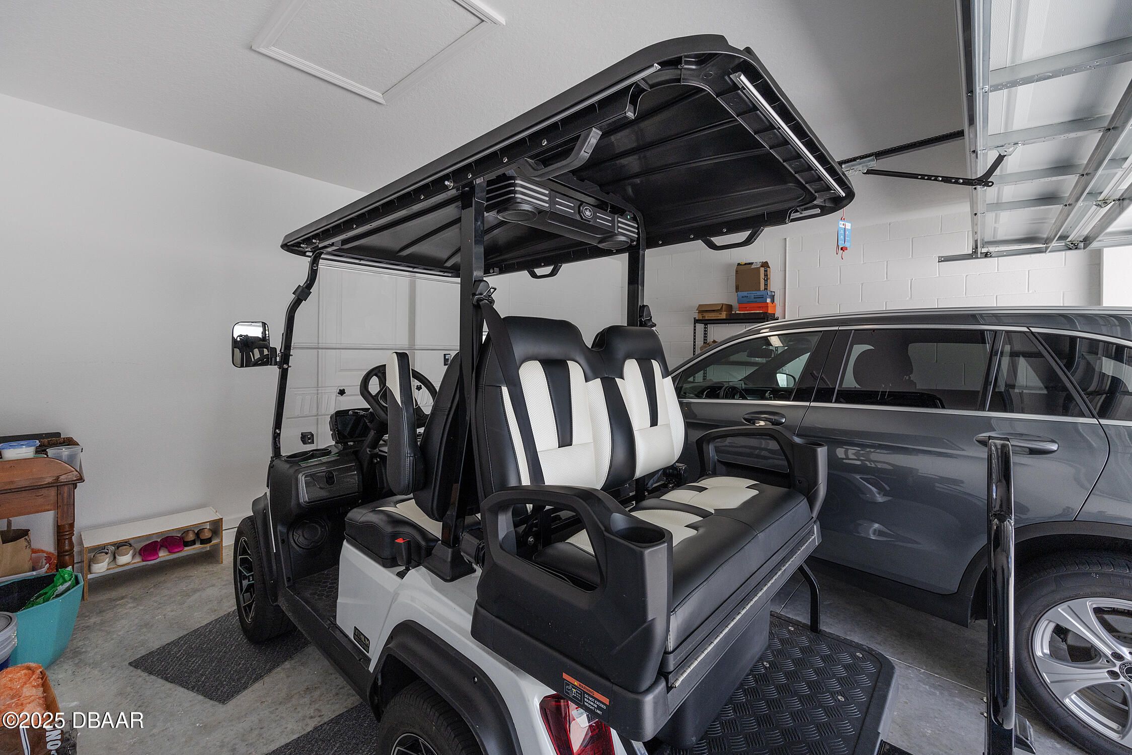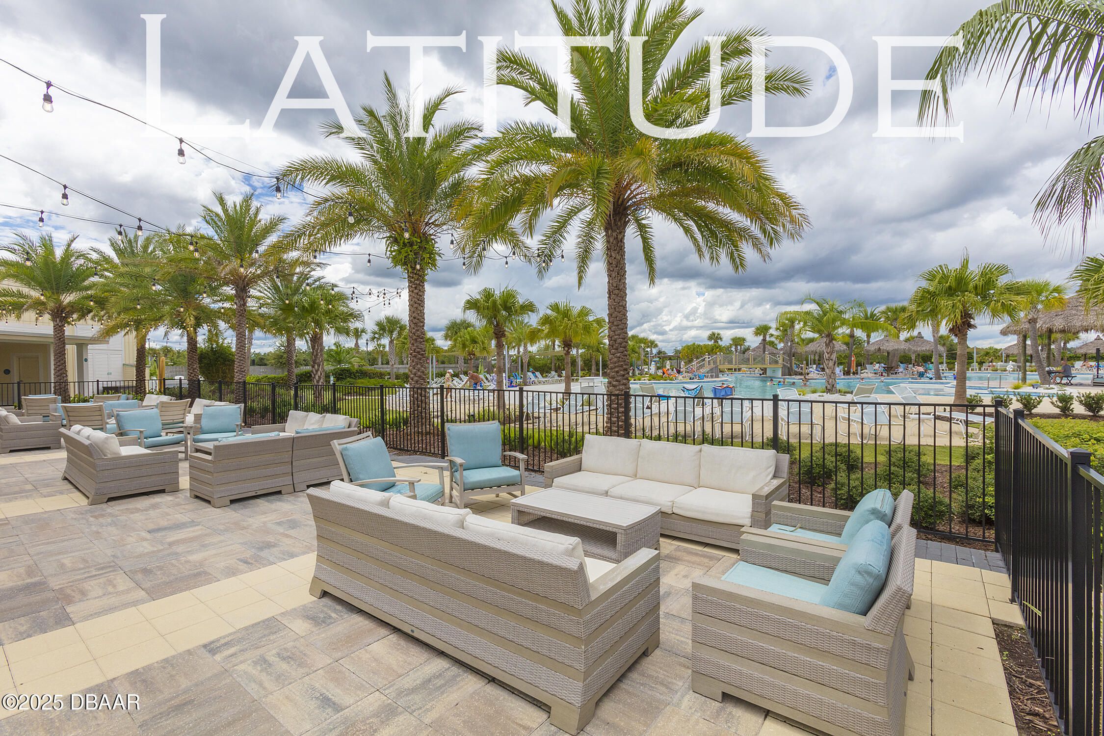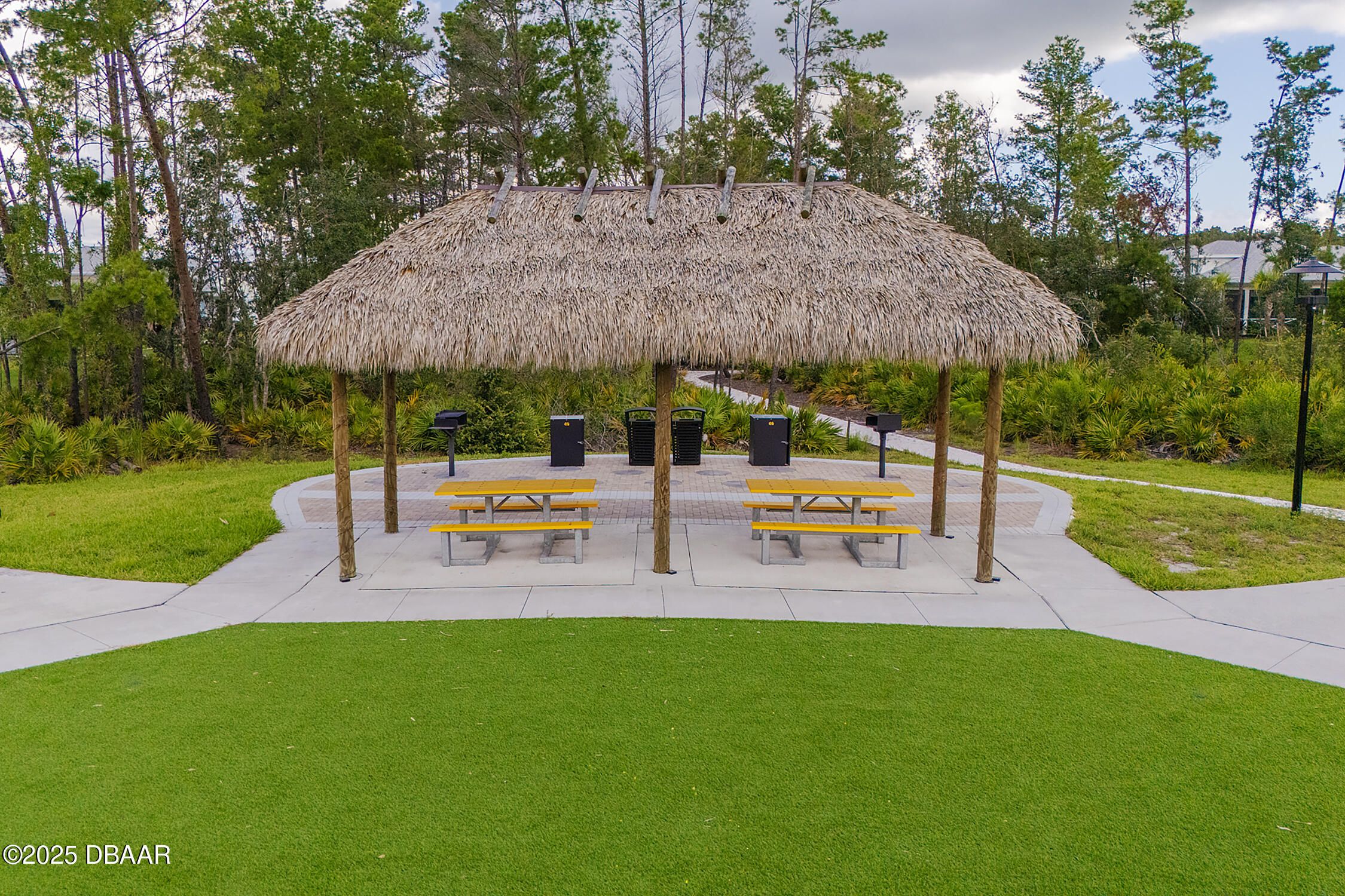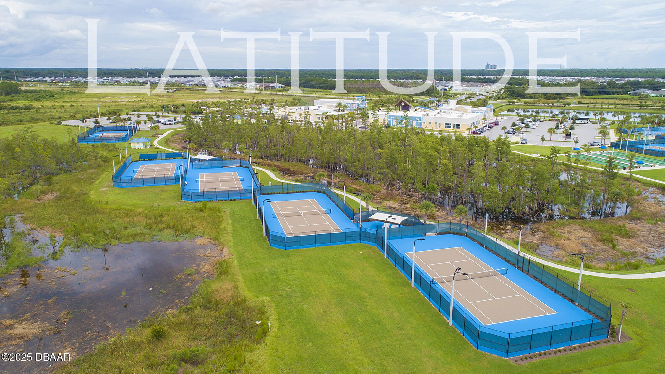 This stunning 2024-built Camellia Conch model offers the perfect blend of island-inspired living and modern comfort. Featuring 2 split bedrooms, 2 bathrooms, and a 2-car garage, this home was thoughtfully designed for both relaxation and entertaining. Step inside to an open-concept layout with bright, airy living spaces and elegant finishes throughout. Upgrades abound with vaulted beams in the living room and neutral colored tile throughout the entire home. Modern looking Plantation blinds and newly painted soft yellow walls in the living area adds a tropical feel. The gourmet kitchen boasts stainless steel appliances, quartz countertops, upgraded 42'' soft close cabinets and a spacious island — ideal for gathering with friends. Additional flex room near the kitchen is so convenient and can accommodate a large dining room table, or could be used as an office. Upgraded lighting and fans. Extra large capacity, front loading GE washer and dryer are included. The owner's suite provides a private retreat with a walk-in closet and spa-style bathroom featuring a glass walk-in shower, double vanity and custom-built storage. A versatile guest bedroom and bath ensure plenty of space for visitors. Enjoy indoor-outdoor living with a spacious screened in lanai with pavers, perfect for morning coffee or evening cocktails. The home is ideally situated near a large green space and park, complete with covered picnic tables and a grill. HOA maintenance of the outside painting and grounds means more time to soak in the Margaritaville lifestyle. Living in the gated community of Latitude Margaritaville means access to world-class amenities: resort-style pools, fitness center, restaurants, live entertainment, private beach club with daily shuttle, tennis, pickleball, bocce, a pet spa and park, and endless activities designed for active adults 55+. Located just minutes from shopping, dining, medical facilities, and the beautiful beaches of Daytona. Whether you're seeking a full-time residence or a tropical getaway, this home is move-in ready and waiting for you! The golf cart (valued at $10,000) may be purchased for $6,000.