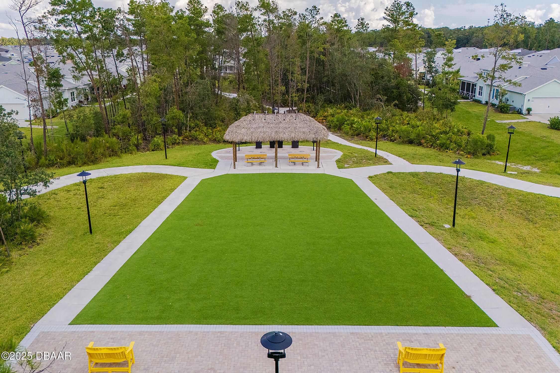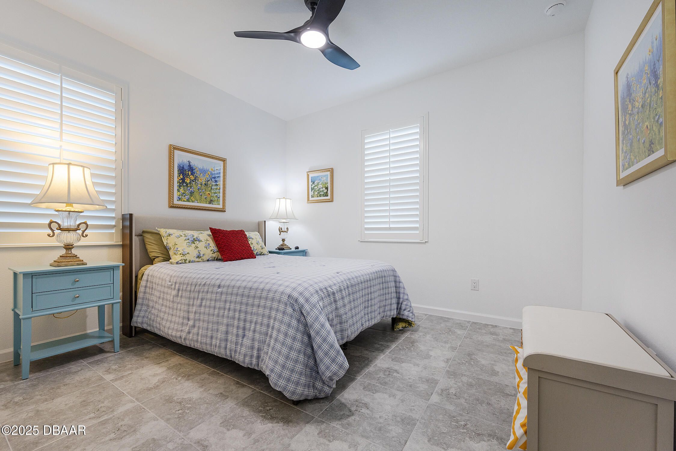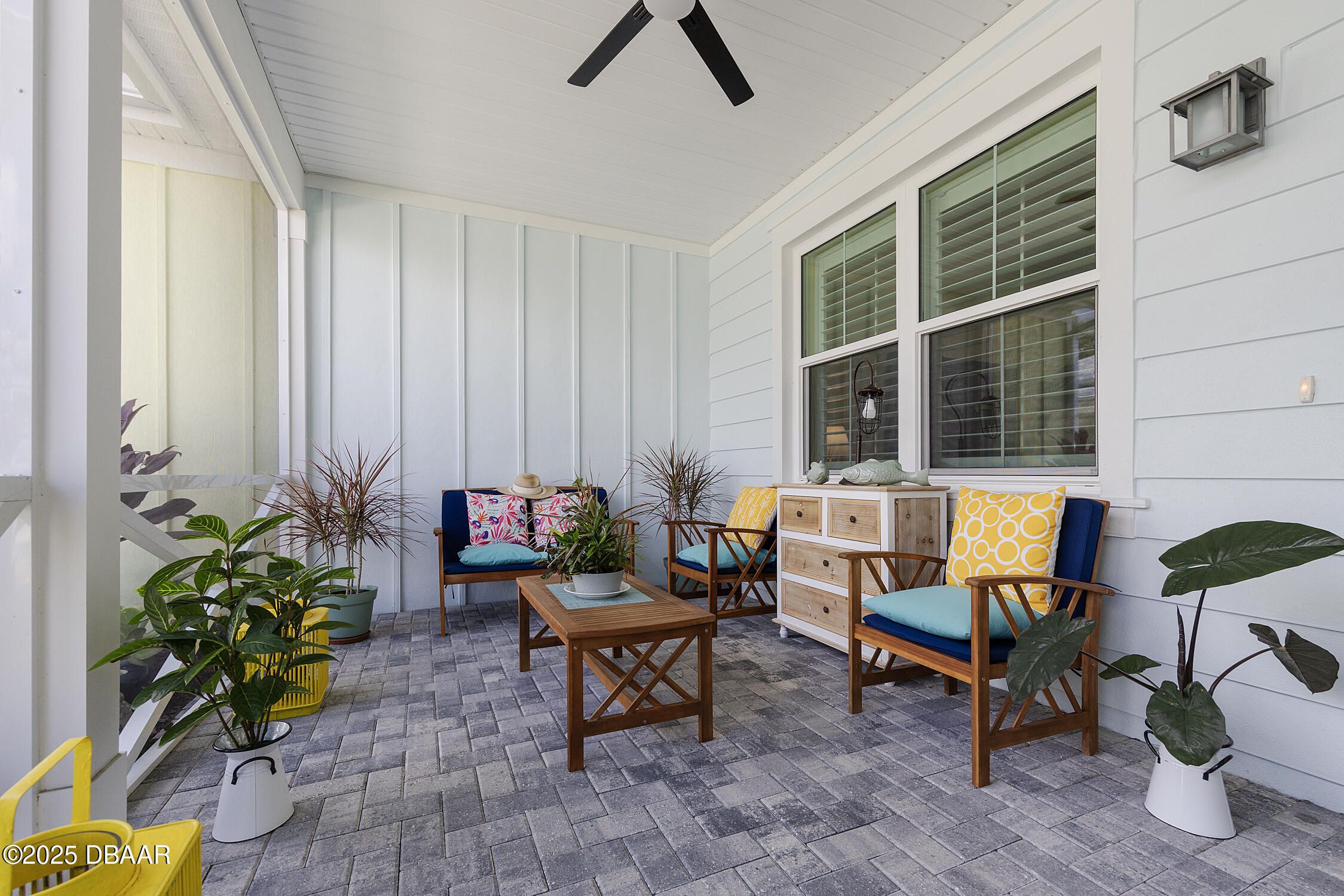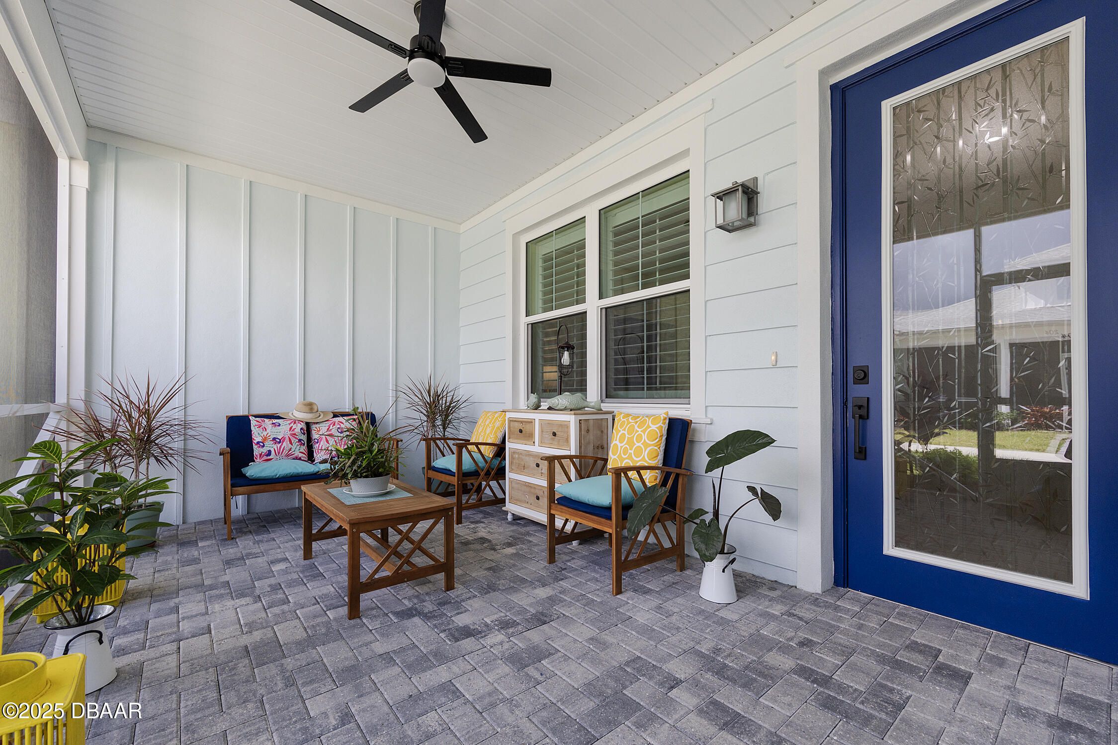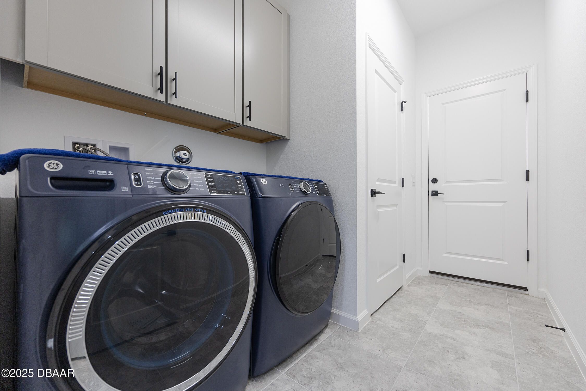 This stunning 2024-built Camellia Conch model offers the perfect blend of island-inspired living and modern comfort. Featuring 2 split bedrooms, 2 bathrooms, and a 2-car garage, this home was thoughtfully designed for both relaxation and entertaining. Step inside to an open-concept layout with bright, airy living spaces and elegant finishes throughout. Upgrades abound with vaulted beams in the living room and neutral colored tile throughout the entire home. Modern looking Plantation blinds and newly painted soft yellow walls in the living area adds a tropical feel. The gourmet kitchen boasts stainless steel appliances, quartz countertops, upgraded 42'' soft close cabinets and a spacious island — ideal for gathering with friends. Additional flex room near the kitchen is so convenient and can accommodate a large dining room table, or could be used as an office. Upgraded lighting and fans. Extra large capacity, front loading GE washer and dryer are included. The owner's suite provides a private retreat with a walk-in closet and spa-style bathroom featuring a glass walk-in shower, double vanity and custom-built storage. A versatile guest bedroom and bath ensure plenty of space for visitors. Enjoy indoor-outdoor living with a spacious screened in lanai with pavers, perfect for morning coffee or evening cocktails. The home is ideally situated near a large green space and park, complete with covered picnic tables and a grill. HOA maintenance of the outside painting and grounds means more time to soak in the Margaritaville lifestyle. Living in the gated community of Latitude Margaritaville means access to world-class amenities: resort-style pools, fitness center, restaurants, live entertainment, private beach club with daily shuttle, tennis, pickleball, bocce, a pet spa and park, and endless activities designed for active adults 55+. Located just minutes from shopping, dining, medical facilities, and the beautiful beaches of Daytona. Whether you're seeking a full-time residence or a tropical getaway, this home is move-in ready and waiting for you! The golf cart (valued at $10,000) may be purchased for $6,000.