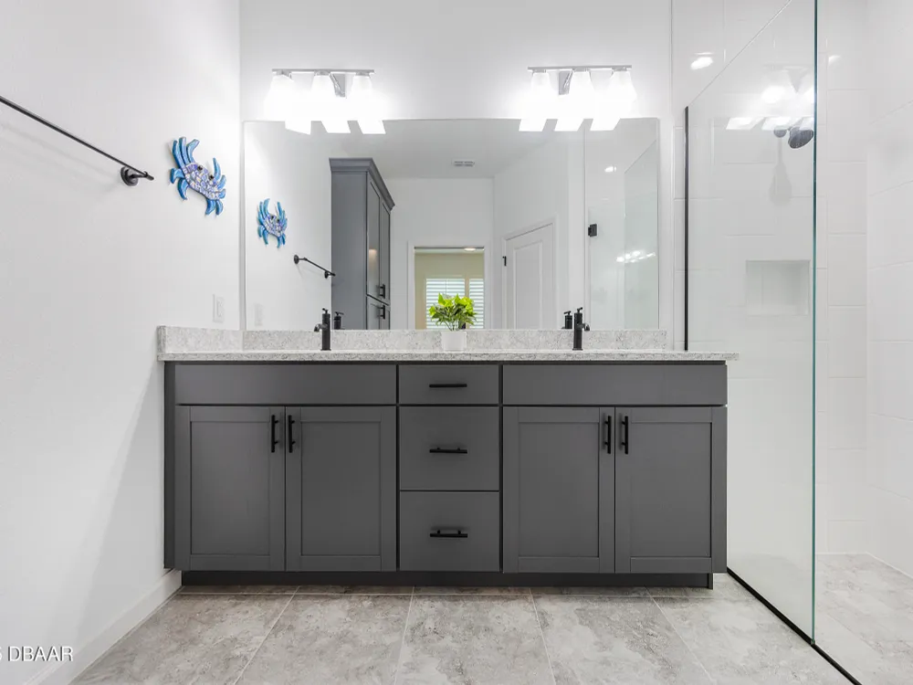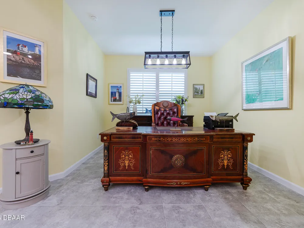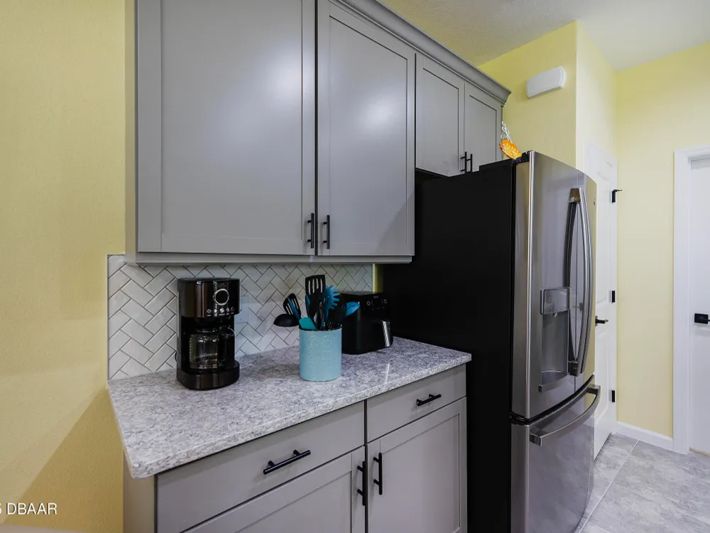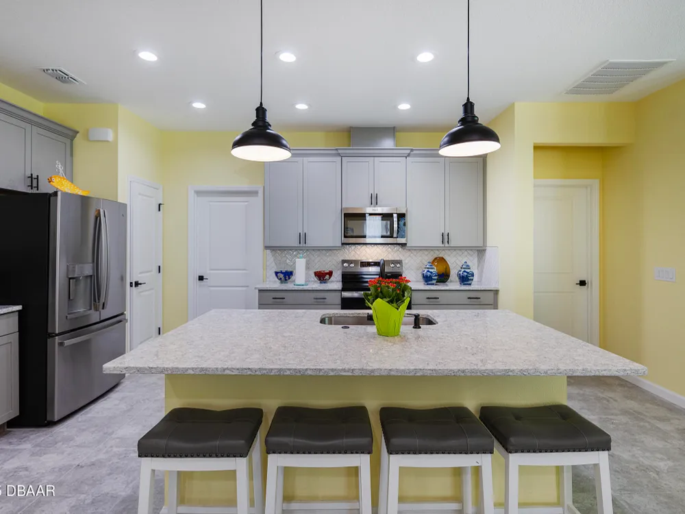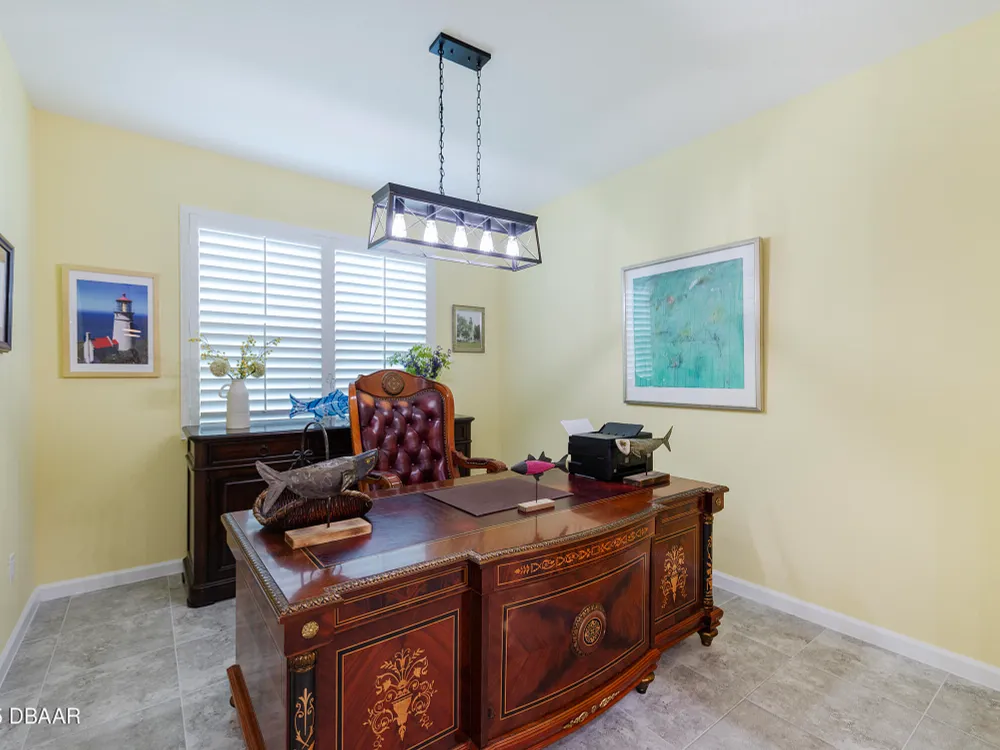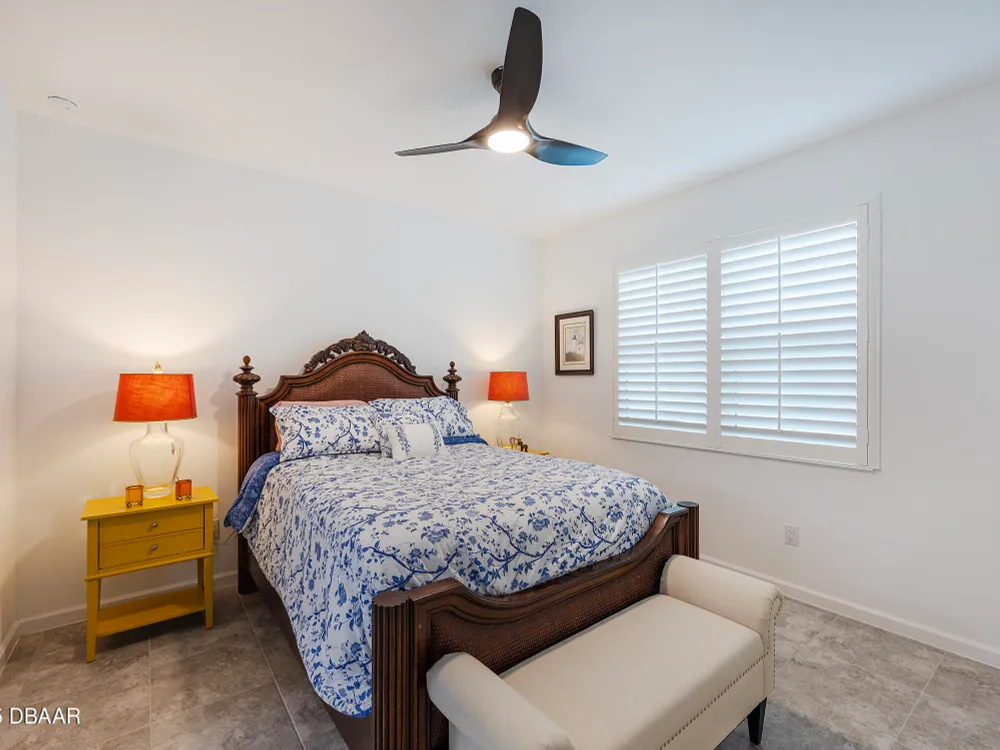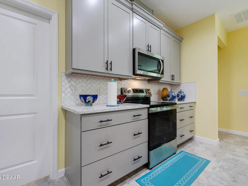 This stunning 2024-built Camellia Conch model offers the perfect blend of island-inspired living and modern comfort. Featuring 2 split bedrooms, 2 bathrooms, and a 2-car garage, this home was thoughtfully designed for both relaxation and entertaining. Step inside to an open-concept layout with bright, airy living spaces and elegant finishes throughout. Upgrades abound with vaulted beams in the living room and neutral colored tile throughout the entire home. Modern looking Plantation blinds and newly painted soft yellow walls in the living area adds a tropical feel. The gourmet kitchen boasts stainless steel appliances, quartz countertops, upgraded 42'' soft close cabinets and a spacious island — ideal for gathering with friends. Additional flex room near the kitchen is so convenient and can accommodate a large dining room table, or could be used as an office. Upgraded lighting and fans. Extra large capacity, front loading GE washer and dryer are included. The owner's suite provides a private retreat with a walk-in closet and spa-style bathroom featuring a glass walk-in shower, double vanity and custom-built storage. A versatile guest bedroom and bath ensure plenty of space for visitors. Enjoy indoor-outdoor living with a spacious screened in lanai with pavers, perfect for morning coffee or evening cocktails. The home is ideally situated near a large green space and park, complete with covered picnic tables and a grill. HOA maintenance of the outside painting and grounds means more time to soak in the Margaritaville lifestyle. Living in the gated community of Latitude Margaritaville means access to world-class amenities: resort-style pools, fitness center, restaurants, live entertainment, private beach club with daily shuttle, tennis, pickleball, bocce, a pet spa and park, and endless activities designed for active adults 55+. Located just minutes from shopping, dining, medical facilities, and the beautiful beaches of Daytona. Whether you're seeking a full-time residence or a tropical getaway, this home is move-in ready and waiting for you!