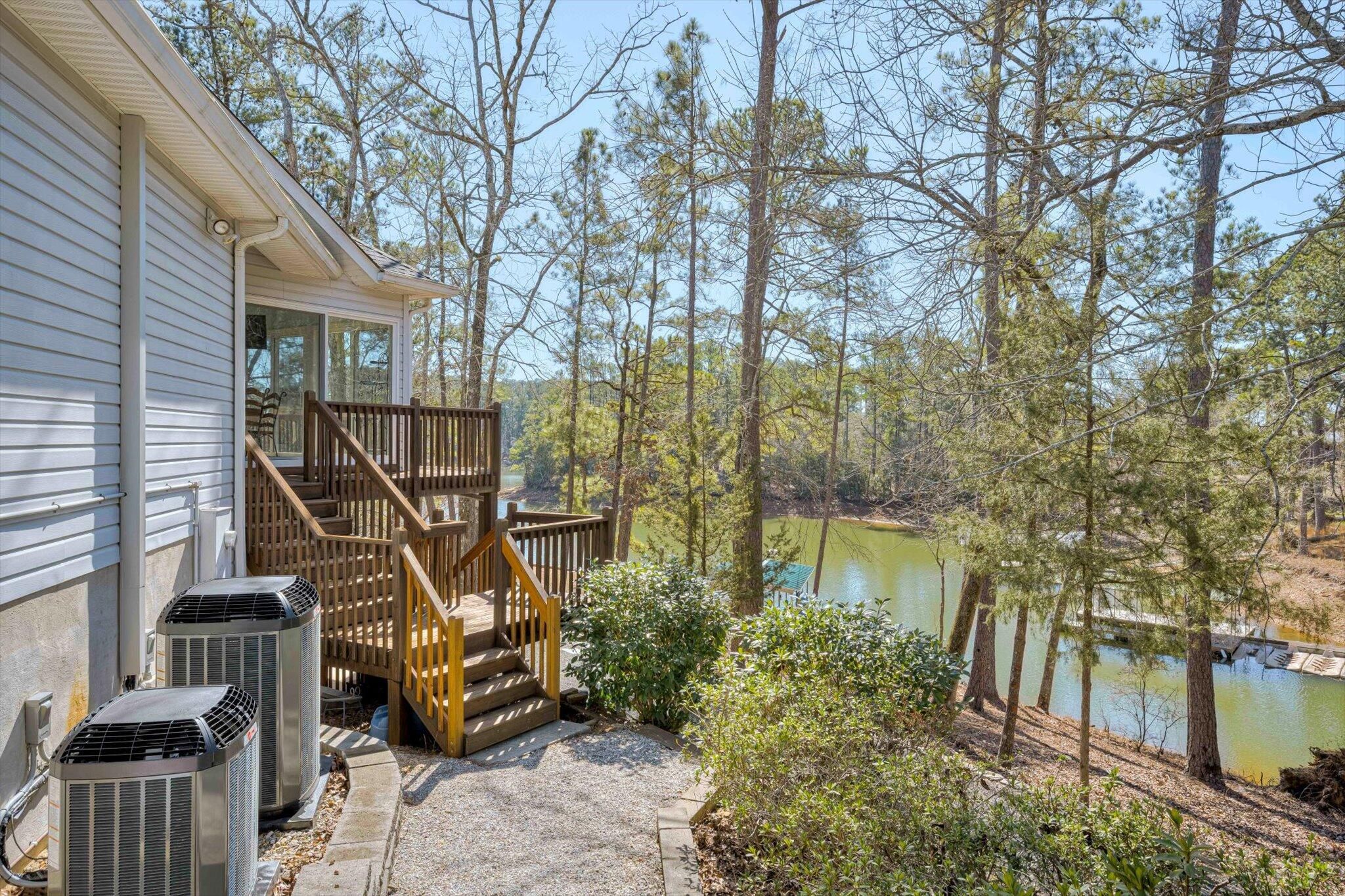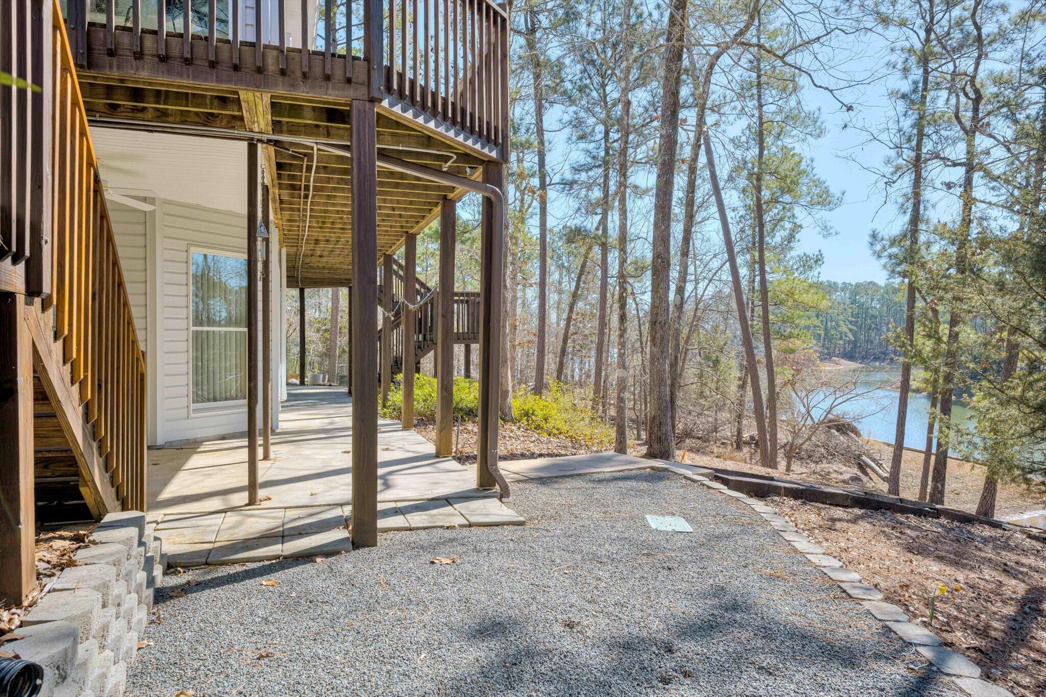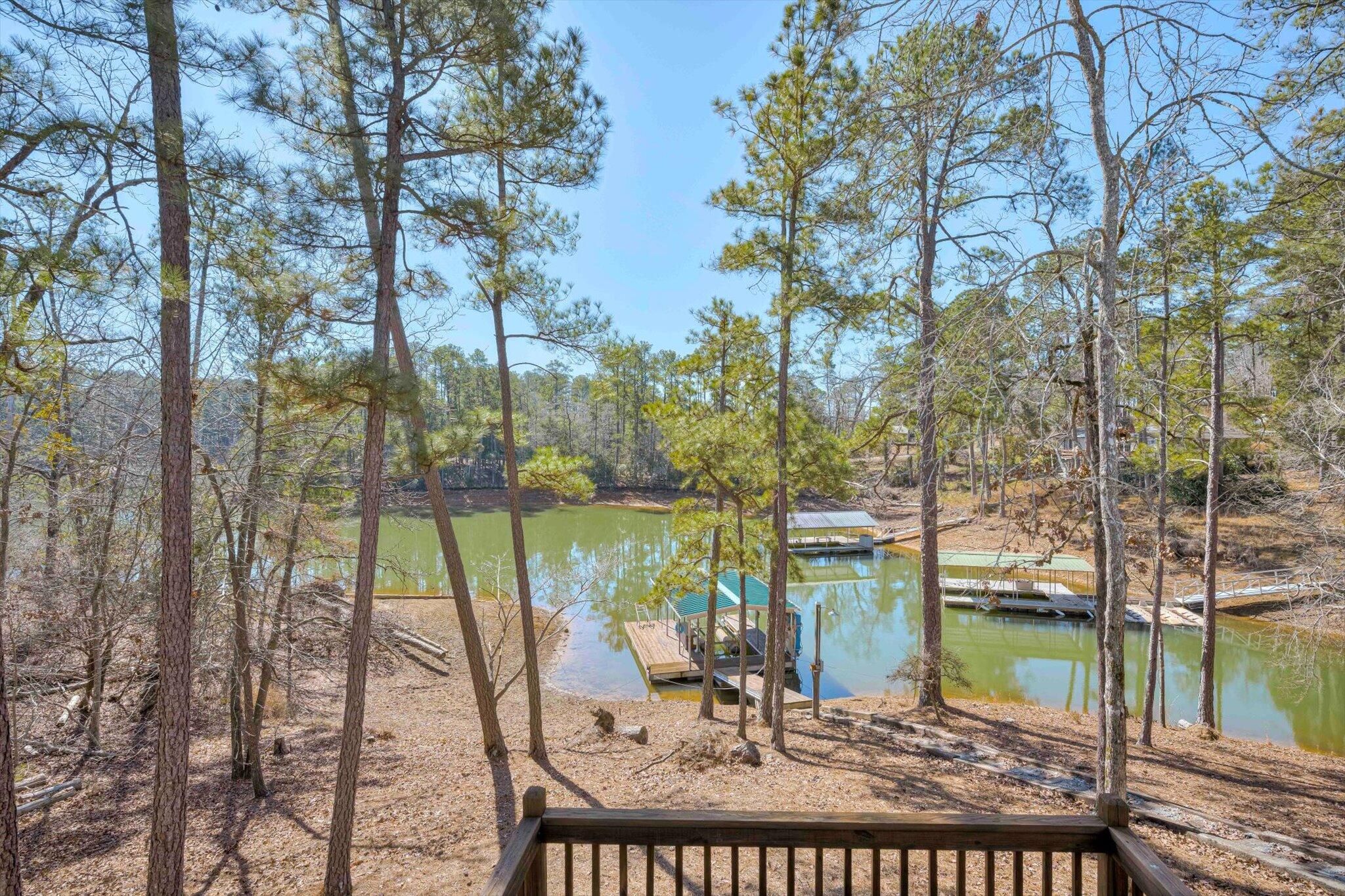 Tucked away on a quiet dead-end road in the desirable Little River Cottages subdivision, this beautifully maintained two-story lakefront home offers the perfect blend of privacy, space, and waterfront living on Clarks Hill Lake. With a short Corp line and private dock, you'll enjoy easy access to the water along with peaceful backyard views year-round. The main level welcomes you with an entrance foyer that opens into a spacious den featuring a stunning cathedral ceiling and abundant natural light. The kitchen is thoughtfully designed with stainless steel appliances, including a new refrigerator (2022) and new microwave (2026), a cooktop in the island, and a cozy eat-in breakfast area. A formal dining room provides the perfect setting for gatherings and entertaining. The primary suite is conveniently located on the main floor and offers serene backyard and lake views, along with a spa-like ensuite bath featuring double vanities, a separate tub and shower, and a large walk-in closet. Additional main-level highlights include a half bath, laundry room with new flooring (2020) and soaking sink, and a bright sunroom overlooking the backyard and dock. Both the great room and sunroom provide direct access to the wrap-around deck—ideal for relaxing or entertaining outdoors. Downstairs, you'll find an expansive second living area with a gas fireplace, two large closets, and plenty of room for recreation or guests. This level also includes two bedrooms, a full bath, an office, mudroom, storage room, and an additional flex space perfect for a second office or workout room. Major system updates include both HVAC units replaced in 2025, offering peace of mind for years to come. Complementing the home is a detached 1½-story building. Upstairs features two large rooms—currently used for woodworking and boat/canoe storage—while the downstairs offers a smaller storage room that can be climate controlled, providing excellent workspace or hobby potential. Additionally, the property includes a lot off Holiday Road within Savannah Lakes. Ownership of this lot grants access to the many amenities Savannah Lakes has to offer, enhancing both lifestyle and recreational opportunities. This rare lakefront package combines comfort, functionality, and waterfront charm—all in a private setting just waiting to be enjoyed.