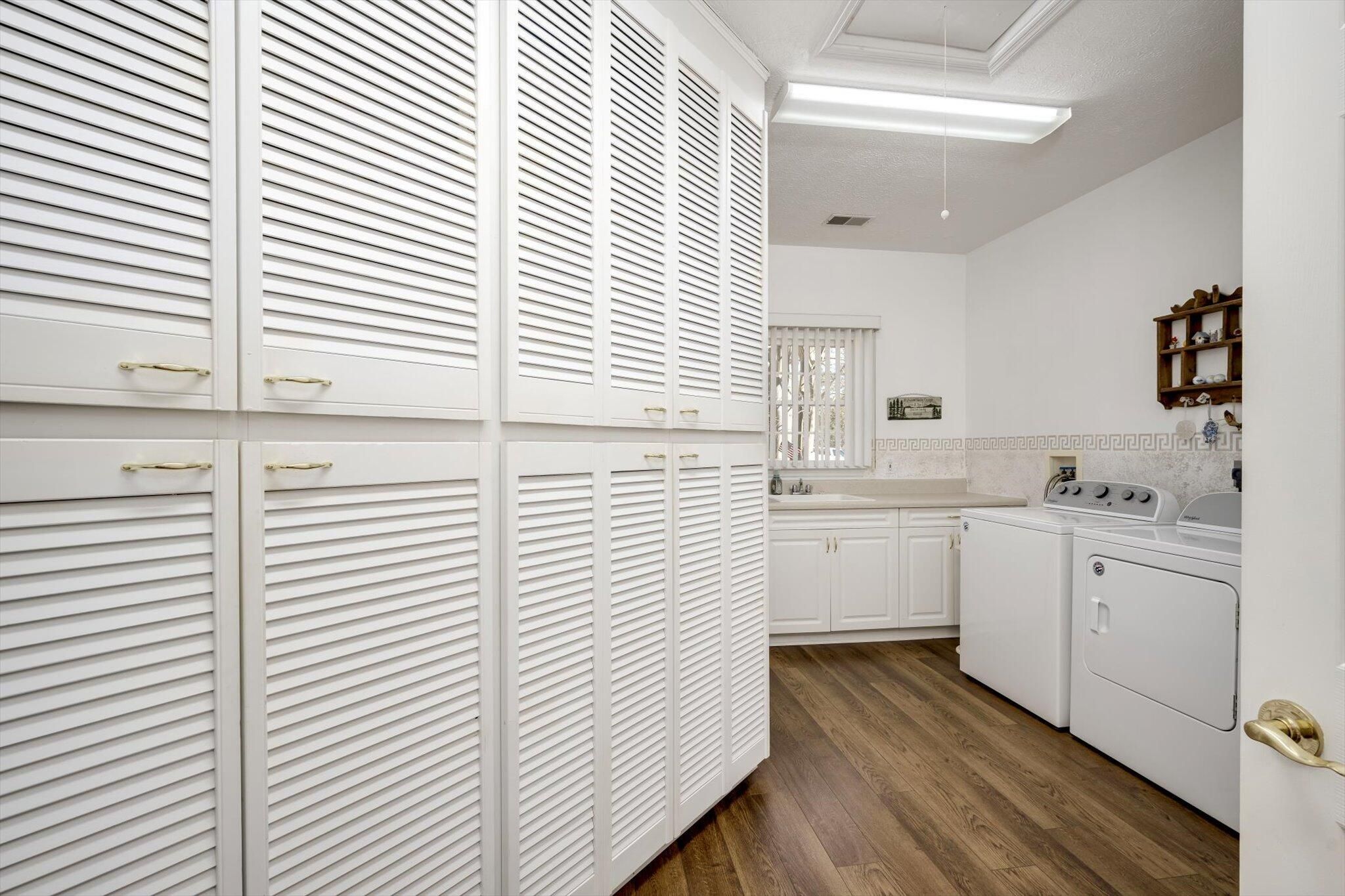 - Blinds, Entrance Foyer, Garden Tub, Kitchen Island, Split Bedrooms, Utility Sink, Walk-In Closet(s), Washer Hookup, Electric Dryer Hookup, Main Level Primary