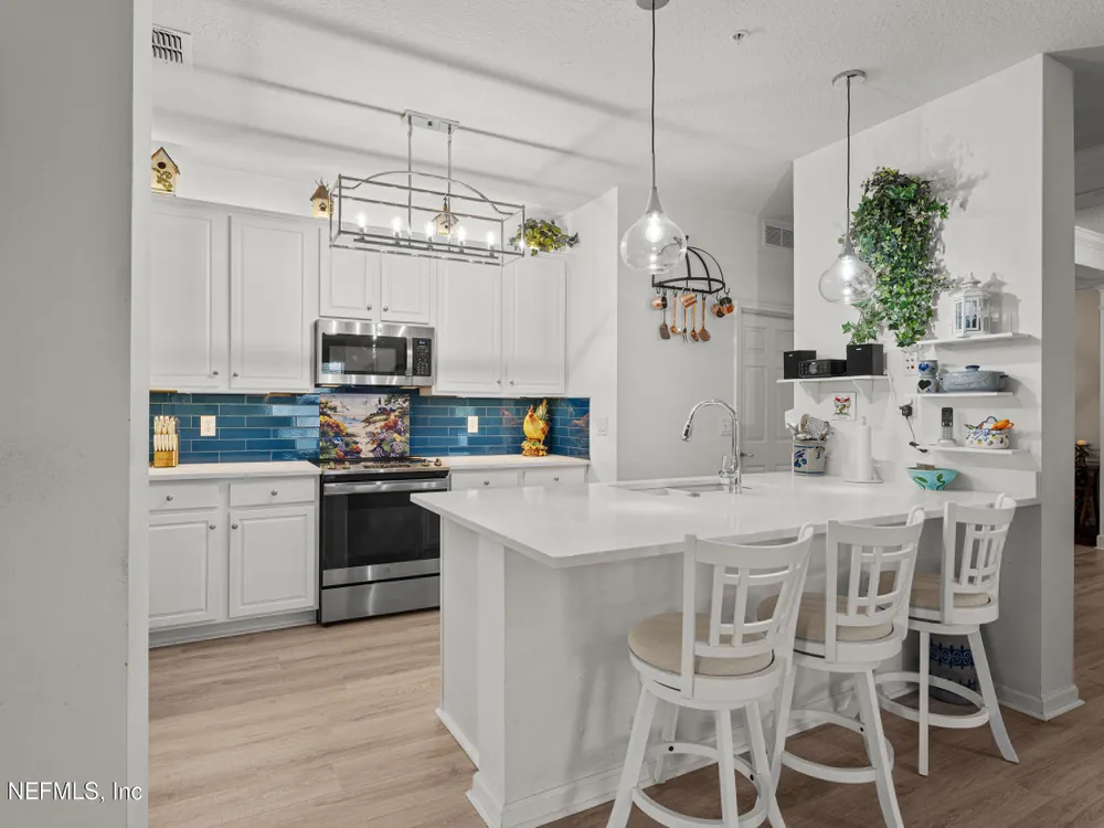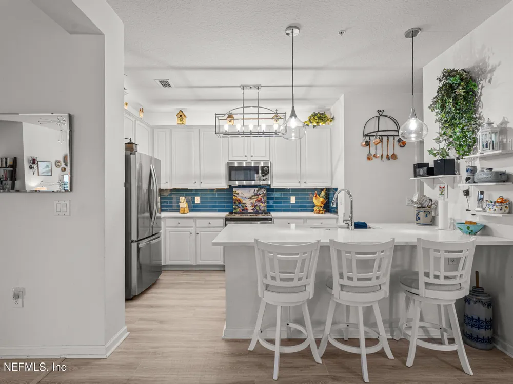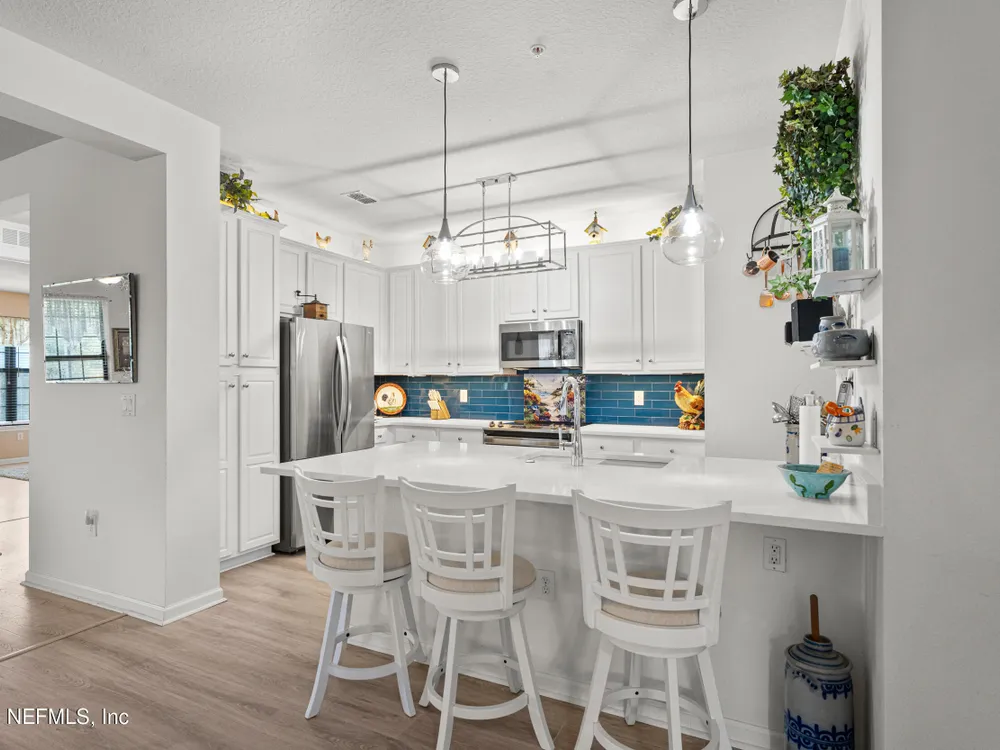 Welcome to gated 55+ Del Webb Ponte Vedra in Nocatee! This 2nd floor corner unit condo w/ windows on 2 sides is 2129 sq. ft. w/ 2 beds, 2 baths + an office/flex room. $31k+ in recent upgrades inc: LVP flooring, refinished white cabinets + new quartz counters & faucets in the kitchen & 2nd bath, tile kitchen backsplash, new light fixtures, new toilets, new kitchen sink & disposal; new electric range, microwave & dishwasher 2023. Additional updates inc: new fridge 2022, water heater 2023, HVAC 2020. Water is included in the HOA payment. The building has 2 elevators + stairs. Owners enjoy all DWPV privileges at the Anastasia Club inc: indoor & outdoor pools & spas, pickle ball, bocce, tennis, fitness center, game rooms, numerous clubs, a full-time activity director plus access to the Nocatee Water Parks & Amenities. DWPV is located just a few minutes away from the Nocatee Town Center & 10+ minutes from PV Beach shopping, clubs, dining & the OCEAN! Nocatee & DWPV are golf cart friendly.