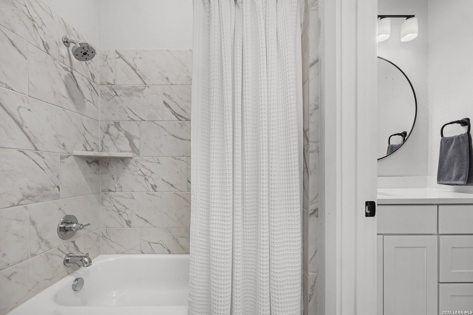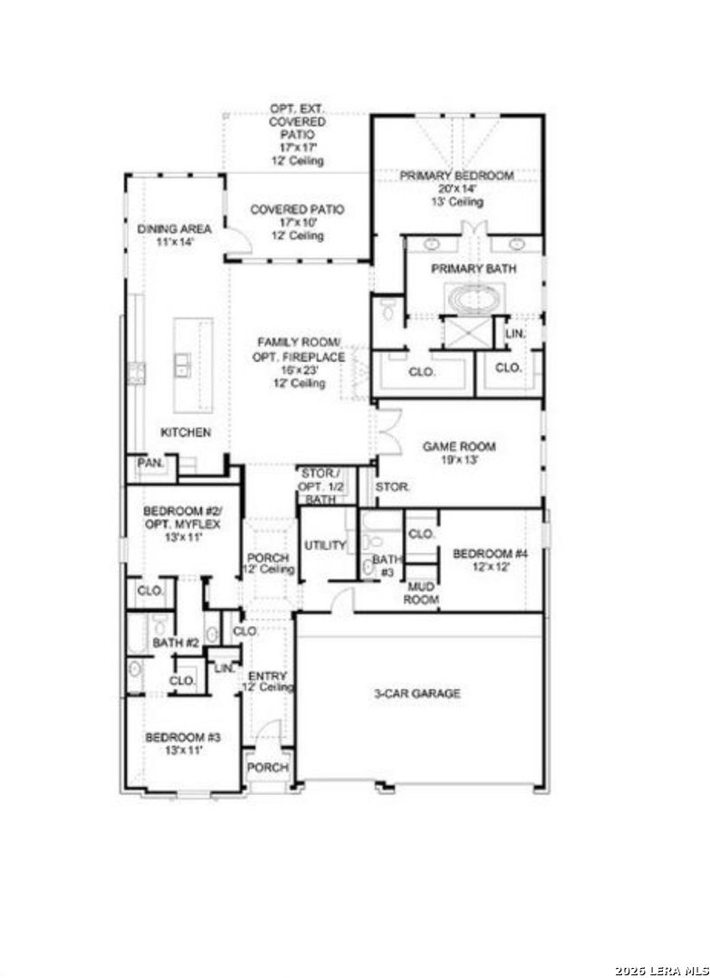 This stunning Perry Homes-built residence, completed in 2023, offers 2,894 sq.ft. of meticulously maintained, single-story living space with remarkable upgrades throughout. The thoughtfully designed floor plan features 4 bedrooms, 3 full baths, 1 half bath, a game room, and an oversized 3-car garage. The rear covered patio has been screened in, seamlessly extending the living area when the multi-slide glass doors are open. The chef-inspired kitchen boasts a large quartz waterfall island and a tile backsplash that reaches the ceiling. The living room is highlighted by a sleek, modern gas linear fireplace with a tile facade extending to the ceiling. In the spacious primary suite, you'll find soaring vaulted ceilings. The primary bath is a true standout, with dual vanities, a full tile wall, a freestanding soaking tub, and a custom-tiled walk-in shower. Two separate walk-in closets with custom built-ins ensure ample storage. Upgrades include professional-grade epoxy garage floors, full gutters, a complete home alarm and automation system, a water softener, ceiling fans throughout, and much more. The home is ideally located with a greenbelt in front and within walking distance to the community swimming pool and restaurant. Don't miss the chance to make this exceptional home in the prestigious Veramendi community yours!