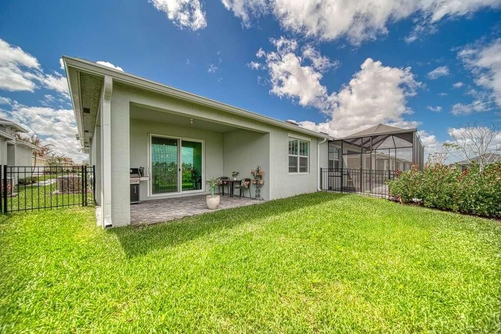 Welcome to this beautifully completed 2024 Lennar Azalea model offering 1,758 sq ft of thoughtfully designed living space with 3 bedrooms and 2 bathrooms, ideally positioned to capture peaceful lake views in a desirable Port St. Lucie location. This move-in ready home features upgraded waterproof luxury vinyl flooring throughout all living areas and bedrooms, delivering both durability and a clean, modern aesthetic. The open-concept kitchen is equipped with Corian countertops, ample cabinetry, and a functional layout ideal for both everyday living and entertaining. Enjoy added peace of mind with impact glass windows throughout, along with tranquil water views that enhance the home's natural light and overall ambiance. Additional upgrades include a garage with professionally finished epoxy flooring, perfect for a polished look and easy maintenance. Step outside to a fully fenced and landscaped backyard, where you can relax or entertain while enjoying the serene lake setting. Built in 2024, this home combines the benefits of new construction with immediate availability—no waiting, no construction delays. Conveniently located near shopping, dining, and major roadways, this property is an excellent opportunity to own a nearly new lakefront home in one of Port St. Lucie's fastest-growing areas.