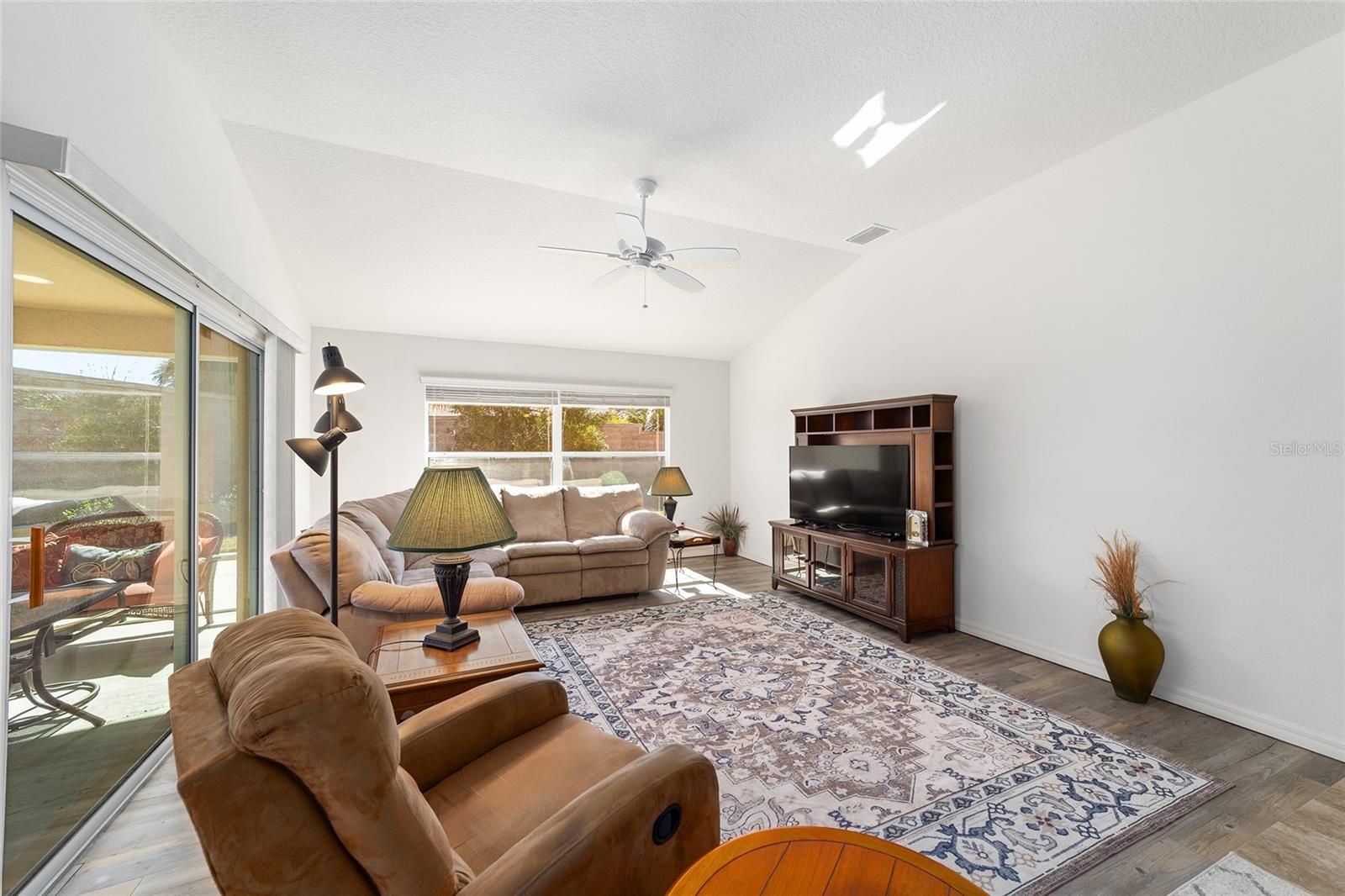 Welcome to 1920 Tranquility Ln. in the Fairwinds Villas. This private corner lot has plenty of room for a pool. The southern facing sunny rear yard would be ideal! It even has a front sitting area with an overhang. You'll love the tile entry as it takes you to a spacious kitchen with a center island. There is plenty of cabinet space and added seating is around the island. There is a nice dinette space as well. The great room has neutral LVP flooring. The primary bedroom is to the right and has ample space and a tray ceiling. The primary bath has dual sinks, tile surround shower with a seat. The primary bedroom has a roomy walk-in closet. There are two additional bedrooms at the opposite end of the home giving privacy to your guests. Both bedrooms have full closets. The guest bath has a shower/bathtub combo. The fully enclosed yard is very private, and large enough for all your furry friends, plus a large south facing patio. The entire yard offers Florida friendly landscaping. This home has been used seasonally, and it has been maintained in top condition. The Water heater was replaced in February of 2026. Low Bond (Tax line reflects Ad valorem and non-ad valorem fees). Right around the corner on St Charles is the Sterling Heights Recreation Center. It features Tennis, Pickleball, Bocce, Corn Toss, a Family Pool, plus challenging golf at Southern Star and Yankee Clipper Executive Golf courses. Inside the rec center are Six Billiard Tables, Exercise Rooms, Card Room plus a Kitchen. Close to Hwy 466A Shopping District Publix, Lowes, Target and Plenty of Restaurants! Call now - for your own private showing, surely it will not last long.