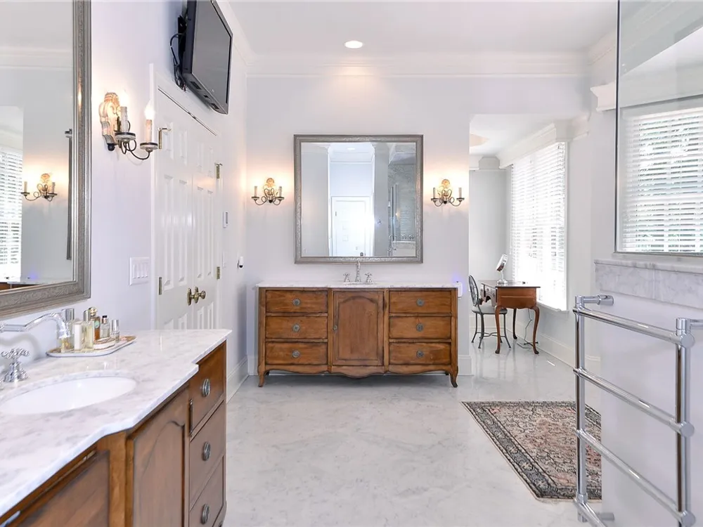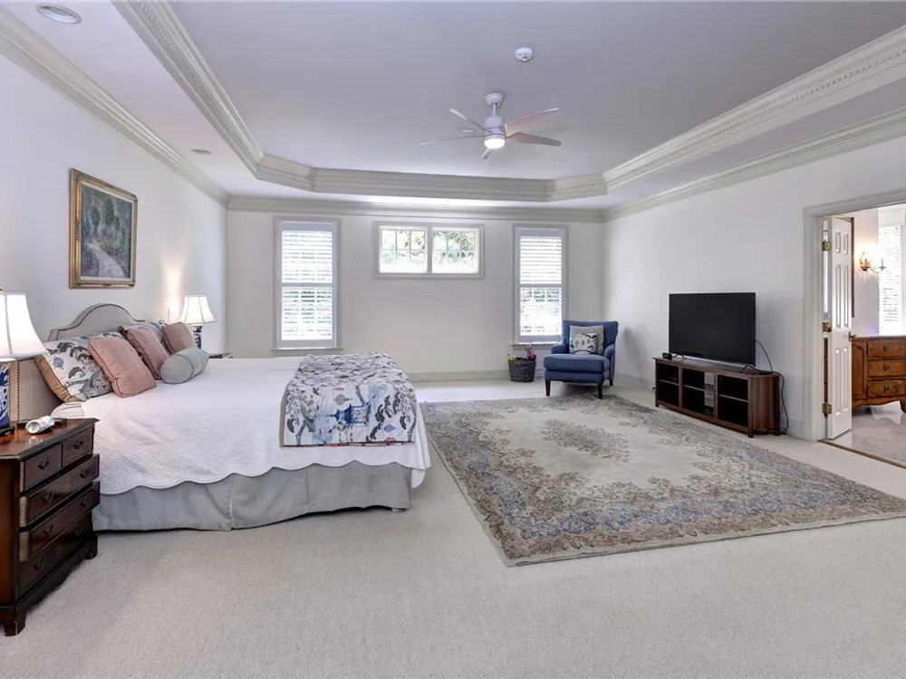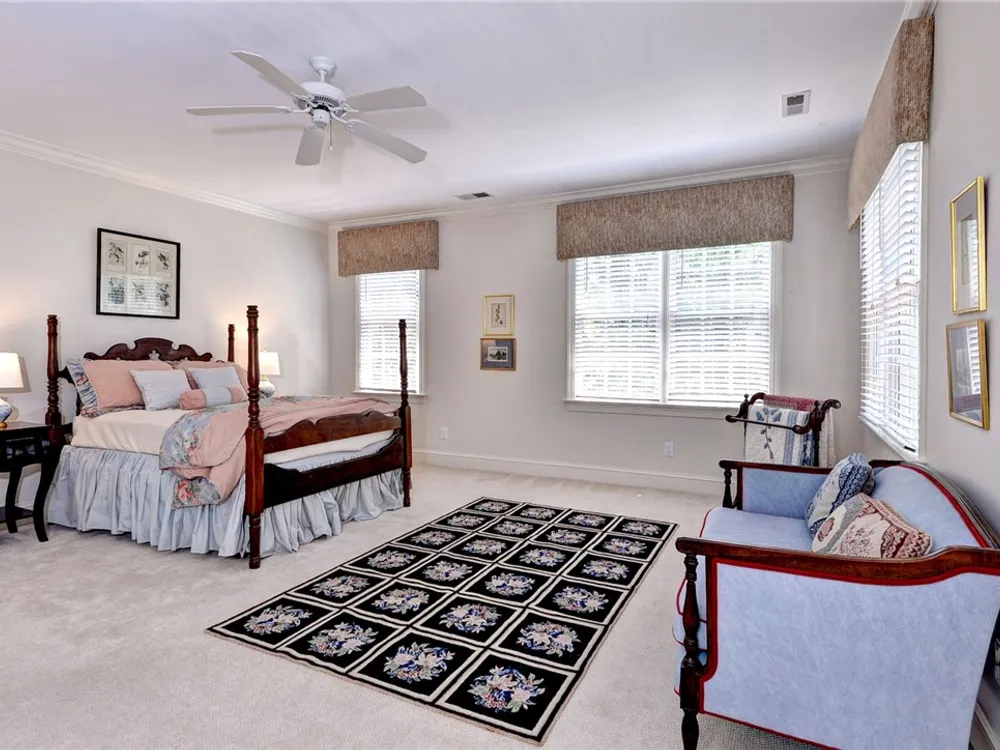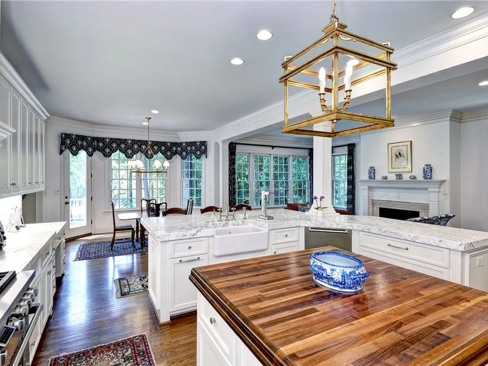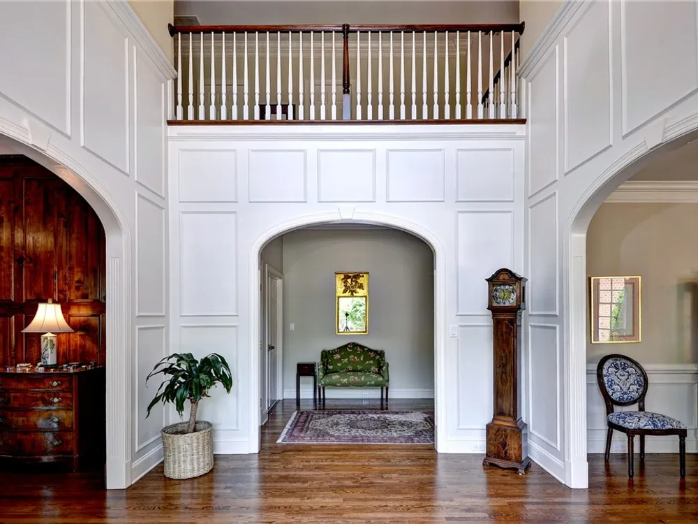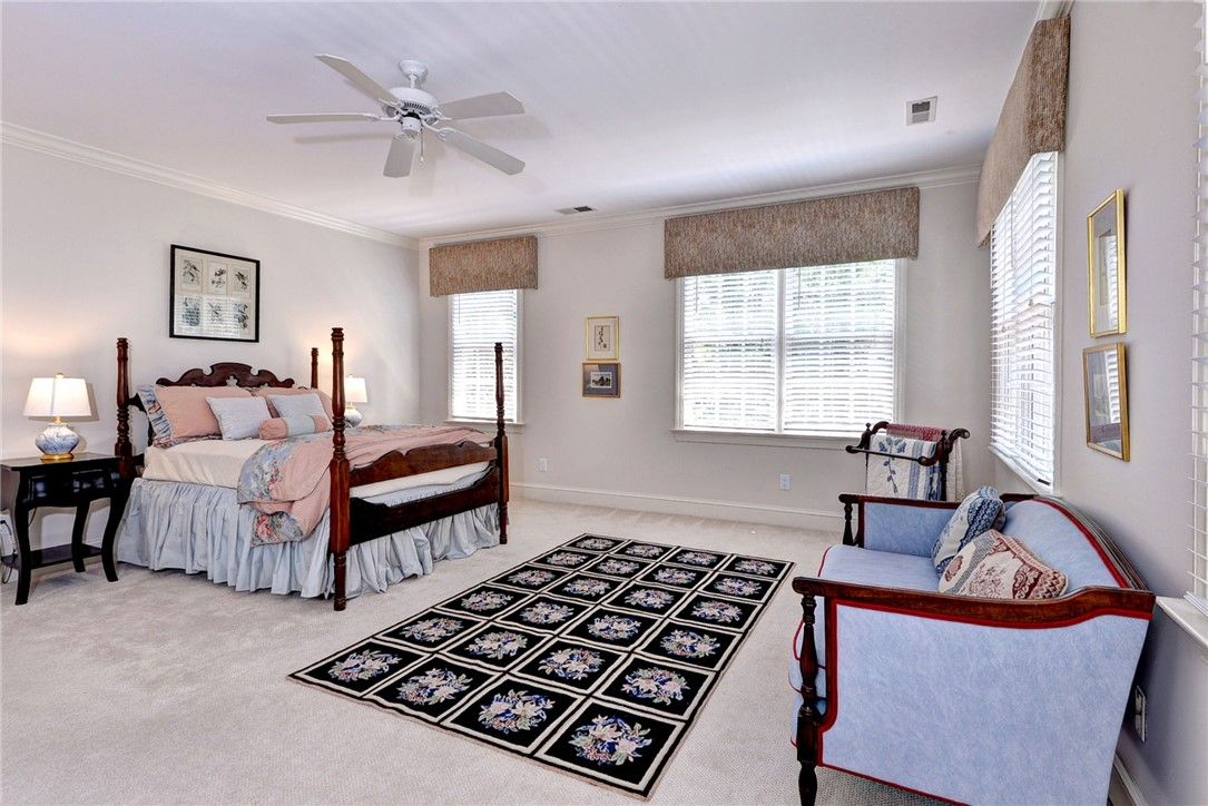 Live and enjoy the good life in this stately golf-front, brick home in wonderful Governor's Land. Fine craftsmanship, generous room sizes, soaring ceilings and luxurious materials will impress the most discriminating buyers. The kitchen is the heart of the home and can only be described as MAGNIFICENT! It is a gourmand's dream and has ample marble counter space, farm sink, walnut-topped island, breakfast bar, eat-in area, luxury appliances (Cove, Wolf, Sub Zero), pantry w 2nd Sub Zero and is open to a keeping room w fireplace. Main floor primary bedroom is the perfect retreat. Primary bath equipped with soaking tub, frameless glass shower, water closet with bidet, heated floors and towel bar. Butlers pantry, wet bar with wine cooler, temperature-controlled wine storage in lower level, plus flex spaces and 4 additional bedrooms upstairs. Stand-by generator, golf cart storage, encapsulated crawlspace, Navien hot water heater, whole house surge protector, security system and more.