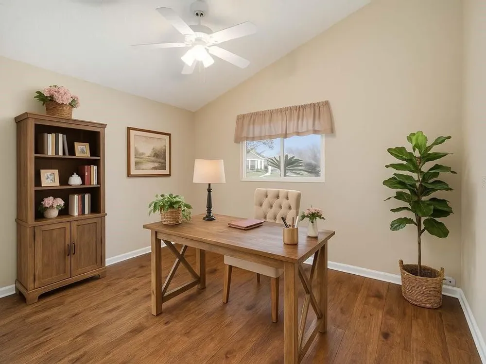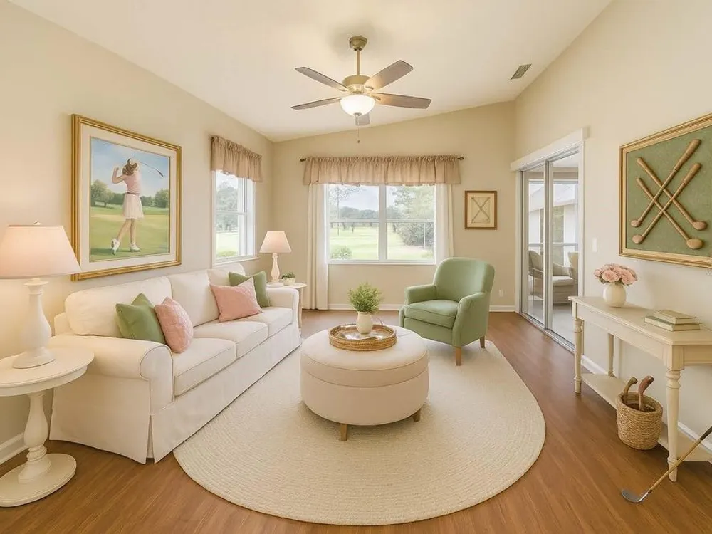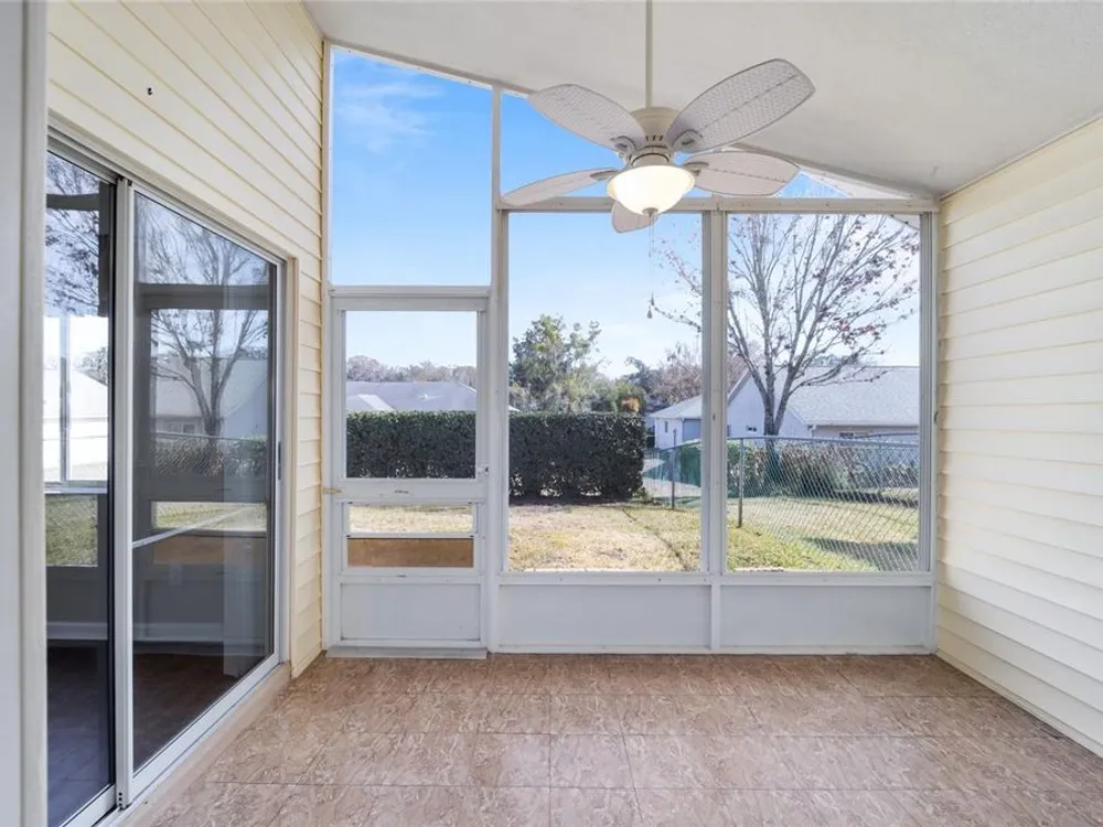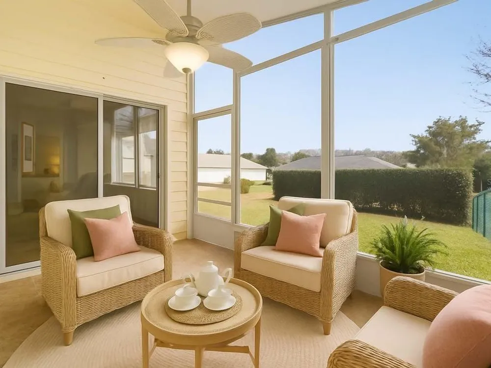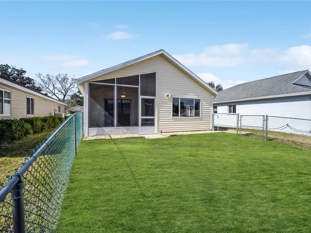 Get ready to pack your bags because this gem is MOVE-IN READY! This charming 2Bd/2BA home is sparkling clean and flaunts an open floor plan that is very inviting. Furry friends will love the private fenced backyard, perfect for their outdoor adventures! Inside, you'll find luxury-engineered vinyl plank flooring that’s as easy on the eyes as it is to clean. The kitchen and dining areas are cozy, and the living area flows right into the backyard with sliding glass doors that lead to the lanai—a perfect spot for sipping morning coffee while soaking up the early sunshine! The Master Bedroom boasts a spacious closet and those same great sliding glass doors to the screened-in lanai. The guest bedroom has a front yard view and a roomy closet to store all your goodies, and the guest bathroom has had a recent makeover with a chic new shower. This home features a newer roof (April 2017), an updated A/C and hot water tank (2021), and a shiny new refrigerator, this home is like a breath of fresh air—with new lighting, ceiling fans, and a splash of paint to boot! Outside, enjoy low-maintenance living with irrigation systems, rain gutters, and attractive stone edging. Situated in the fabulous Ocala Palms, a gated active 55+ community, you’ll find an 18-hole golf course for golf lovers and a swanky clubhouse that’s 19,000 square feet of fun! Get ready for a fitness center, Olympic-sized outdoor pool, hot tub, arts & crafts studio, and a slew of activities from pickleball to bocce ball. Plus, it’s conveniently located near shopping, dining, and healthcare. For adventure seekers, Ocala offers year-round festivals, canoeing, and horseback riding, and is just a hop, skip, and jump from theme parks like Disney and Universal Studios!