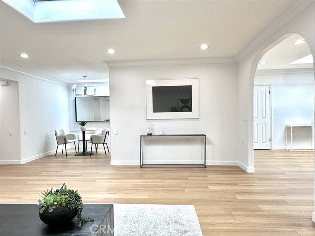 A rare offering in Leisure World Seal Beach—an expanded 2-bedroom, 3-bath, and den, front-to-back atrium model in one of the community’s most desirable enclaves. Just four sets of these unique atrium homes exist in the entire community. With 1,642 sq. ft. of fully permitted living space, this residence blends architectural uniqueness with a complete modern renovation. Originally built with an interior atrium and open front patio, the home was transformed into a spacious, light-filled layout. The front patio was enclosed to create an inviting, expanded living area with custom arches and a new entry door. The interior atrium was enclosed as well, creating a flexible den, sitting room, or potential third bedroom—plus a full bathroom added during the expansion. The home feels entirely refreshed. Upgrades include seven new skylights, new wide-plank Tecsun laminate flooring, new paint, recessed lighting, designer fixtures, updated switches, outlets, hardware, and hinges. The kitchen features quartz countertops, a reimagined backsplash, a new sink and faucet, upgraded hardware, GE Profile stainless steel appliances, and an LG counter-depth refrigerator. The 2.5 remodeled bathrooms include custom vanities with quartz counters, Kohler sinks, upgraded faucets, new shower doors, fresh tile accents, comfort-height toilets, and improved ventilation. A new LG stacked washer/dryer is tucked into the second bathroom. Significant improvements include a new air-conditioning system and a new electrical panel installed concurrently. Additional touches—new closet knobs, updated door hardware, and cohesive finish work—add to the turnkey feel. Dual French doors open to a wonderful back patio and peaceful greenbelt, extending the home’s generous interior. This is one of the most spacious, upgraded, and distinctive homes in all of Leisure World—set in a high-value pocket with ideal East–West exposure, abundant natural light, and exceptional privacy. A rare chance to own a truly one-of-a-kind residence in Mutual 15. (Carport 6, Space 34) The LW SENIOR COMMUNITY-OFFERS: 9 Hole Golf Course, Swimming Pool, Jacuzzi, Gym, Table Tennis, Shuffle Board, Billiards, Pickle Ball, and Bocce Ball courts. Amphitheater, 6 Clubhouses featuring: Art Room, Sewing, Crafts, Wood Shops, Lapidary, Pool Tables, Over 200 Clubs, and Guard-Gated Security. Also, a Library, Friends of Library Bookstore, Credit Union, Health Care Center, Pharmacy, and Post Office.