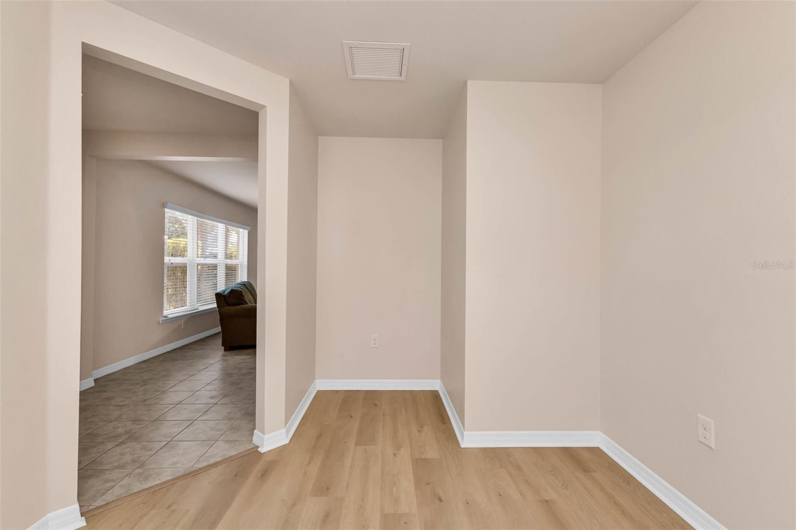 - Eat-in Kitchen, Living/Dining Room, Open Floorplan, Main Level Primary, Stone Counters, Thermostat, Window Treatments