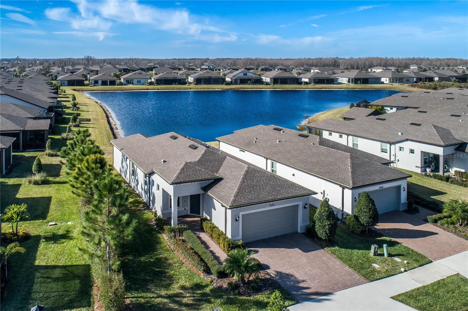 LUXURY RESORT LIFESTYLE living at its finest!!! This NEWER 2022 Pulte residence which PERFECTLY encapsulates the WOW-FACTOR is located in the HIGHLY desirable Award-Winning MAINTENANCE FREE 55+ neighborhood of Del Webb BEXLEY! The Del Webb reputation of a renowned active lifestyle is exemplified in Bexley starting with the 19,000 sqft Meridian Clubhouse, exclusive to Del Webb residents, full spectrum of social activities and abundance of amenities alongside a full-time lifestyle director! This BRIGHT & AIRY highly appointed MODEL-like home features 2 Bedrooms + 2 Full Bathrooms + Flex/Office Space + 2 Car Garage spanning 1,400 sqft and is situated on a PREMIER lot with Magnificent POND views – A Must See!!! Explore the truly remarkable elements that elevate this home including over $22,000 in enriching Structural & Designer Builder Options + $13,600 in After-Build Upgrades!!! A RARE find at this price point with spectacular NEW upgrades, including NEW Luxury AquaShield Wide-Plank High Performance Waterproof Flooring in Office & Bedrooms (2025!) + NEW Lanai Sunbrella Marine Canvas Outdoor Curtains – comes with 10-year Fade Free Warranty (2026!). The exterior features a welcoming brick paved driveway, delightful front porch & beautiful architectural detail on the exterior of the home. This immaculate home combines SUPERIOR craftsmanship & SMART, ENERGY-EFFICIENT design elements for the modern-day lifestyle! This DESIRABLE floorplan offers a SPACIOUS Great Room Design featuring a Gathering Room with Triple Sliders that provide uninterrupted views of the lanai & serene outdoors + GRAND Kitchen with Oversized Island + Expansive Café Dining Room with Modern Lighting & Spectacular Pond Views! The well-appointed GOURMET kitchen features an OVERSIZED ISLAND with Ample Bar Stool Seating + GAS Range with Hood + Fashionable 42” Shaker Cabinetry & Pullout Drawers decorated with Classic Crowned Molding + Spectacular Granite Countertops & Decorative Ceramic Backsplash + Stainless-Steel Appliances – a CHEF’S DELIGHT!! Working from home or simply need extra space to relax? This beautifully designed residence offers a Flex Space that can easily be utilized as an Office, Sitting Room, Workout Room, or Multi-Purpose Room for today’s lifestyle! The CHARMING private screened lanai with NEW Privacy/Sunshade Curtains allows for use anytime – day or night – and is PERFECT for entertaining! Brilliant Additional Finishes Include: Innovative PICTURE FRAME Lanai Screen + Elegant Soft Close Cabinets + Tankless Water Heater + Hurricane Shutters + Outdoor Lania Kitchen Wall + Plumbing for Outdoor Kitchen + Rain Gutters + so much more!!! Del Webb World-class amenities include the Meridian Clubhouse featuring Pools (Resistance & Lap Pool) & Hot Tub, Bocce, Tennis & Pickleball Courts, Community Garden, Dog Park, Fitness Center, Movement/Yoga Studio, Arts & Crafts Room, Meeting Rooms, Outdoor Pavilion & Kitchen, Café/Bistro with Wine & Beer Bar & so much more! Located near the entrance to Bexley is the “Hub at Bexley” – which has everything from restaurants to shops to entertainment! LOCATION, LOCATION, LOCATION! Bexley Del Webb is conveniently located on SR 54 near the Veterans Expressway with easy access to Tampa International Airport, Major Interstates (to Orlando, Downtown Tampa & St Pete), Malls (including International Mall), Fine Dining & Award-Winning Beaches! Golf Cart Friendly! NO flood insurance required. Washer & Dryer stay! Enjoy a RESORT LIFESTYLE EVERYDAY!!