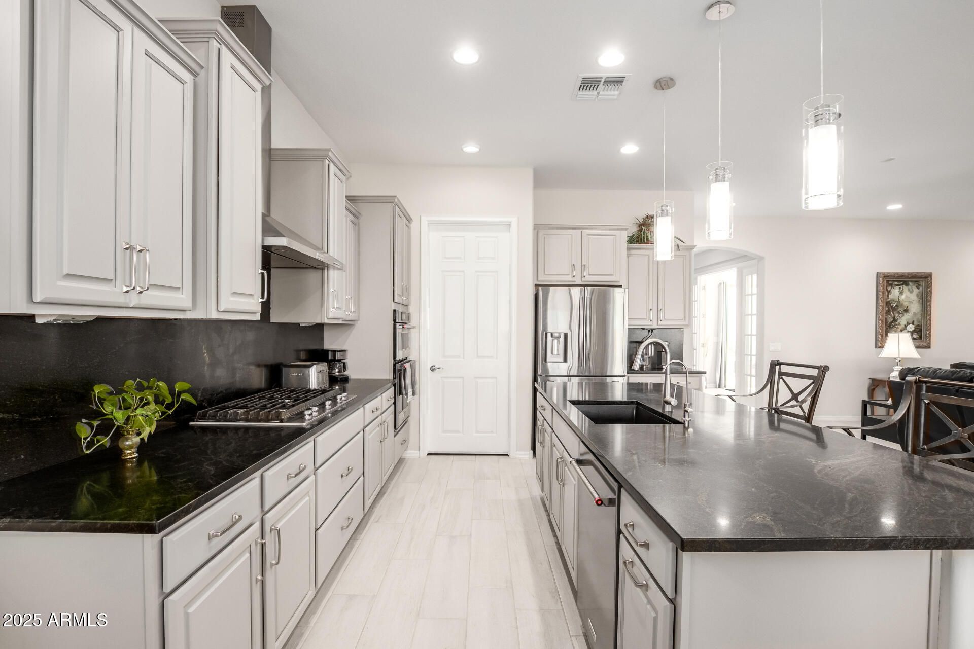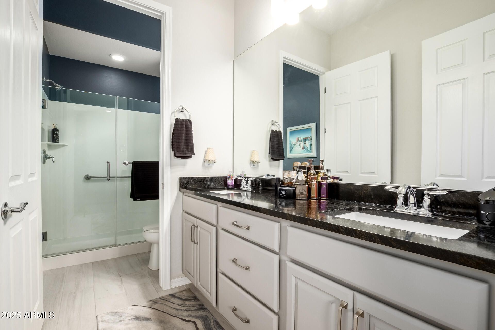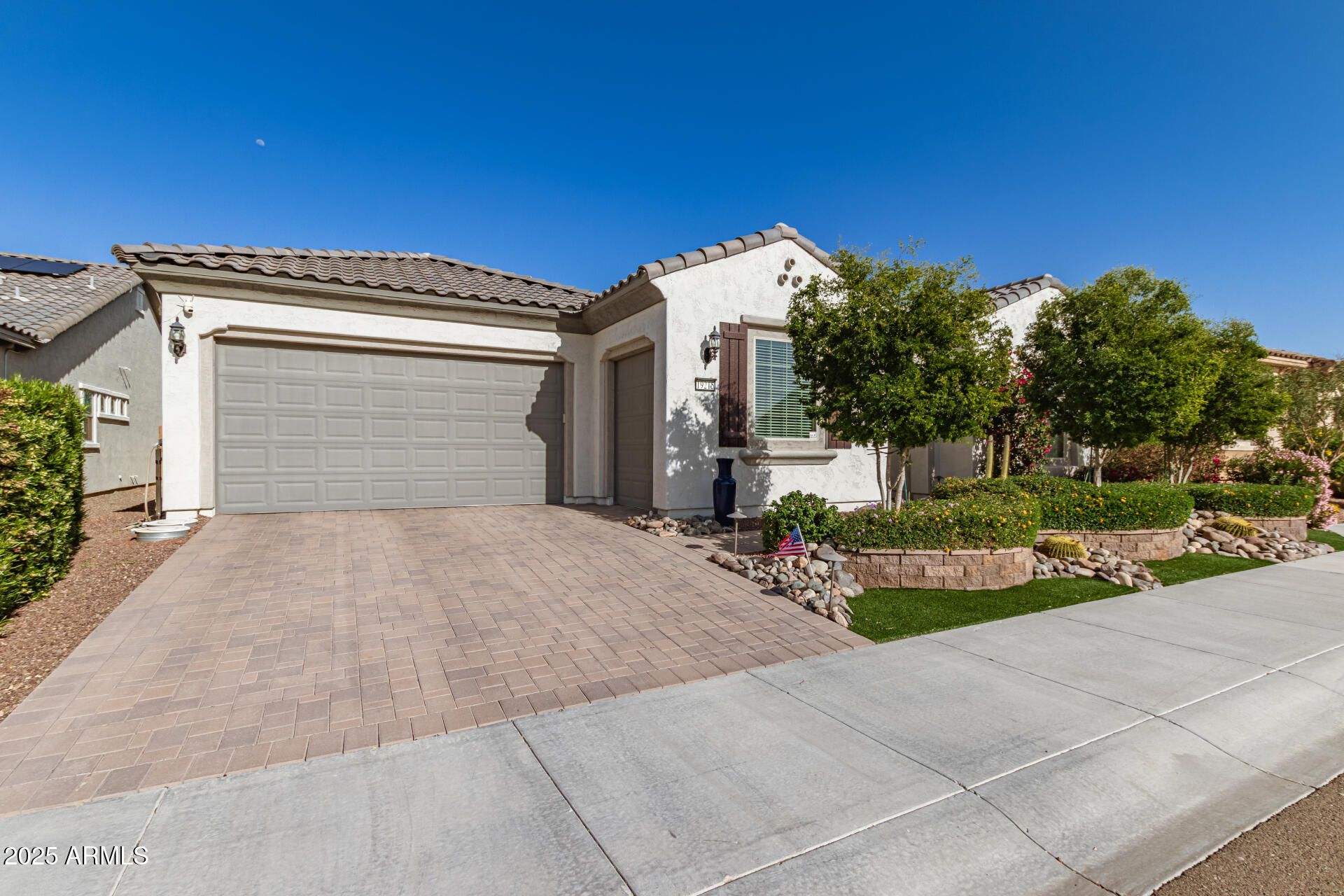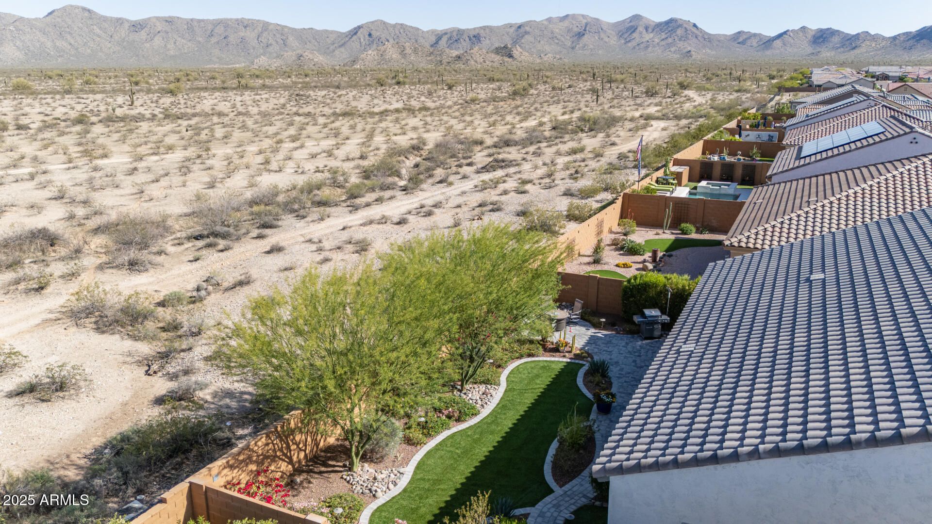 Don't let this INCREDIBLY PRICED Moutain view home pass you by! This beautiful 2,800 SF 3 Bdrm + Den Voyage Model home located in Festival's Mountainside neighborhood is impressive. This home borders desert State Trust Land, is incredibly landscaped, has beautiful White Tank Mountain Views yet still has privacy with it's walled backyard that creates a tranquil parklike backyard paradise! Upgrades abound inside and includes a classy Chef's Kitchen with Honed Granite Countertops & Backsplash, KitchenAid Appliance package and Gas Cooktop. This home features 2 Owners Suites, a Den off the private courtyard and a versatile 3rd room that can serve as a Bedroom, office or Craft Room. The Owners Suite features Granite Counters and a luxurious Tiled Walk-in Rain Shower. All on a quiet cul-de-sac! This truly is a great home and superb value. Come on in and see for yourself!