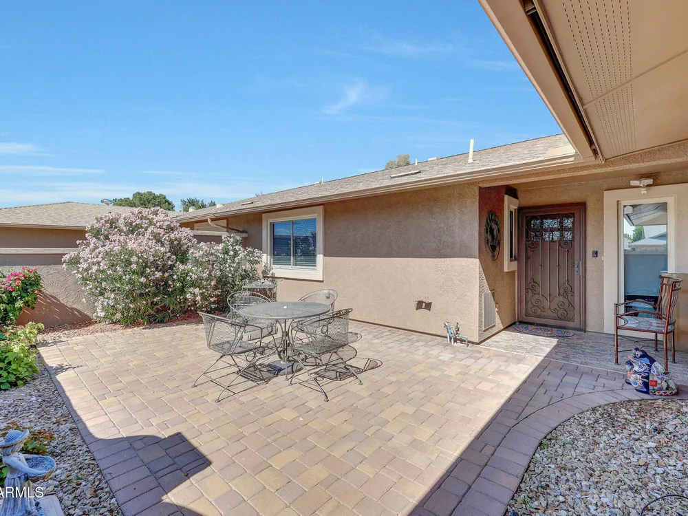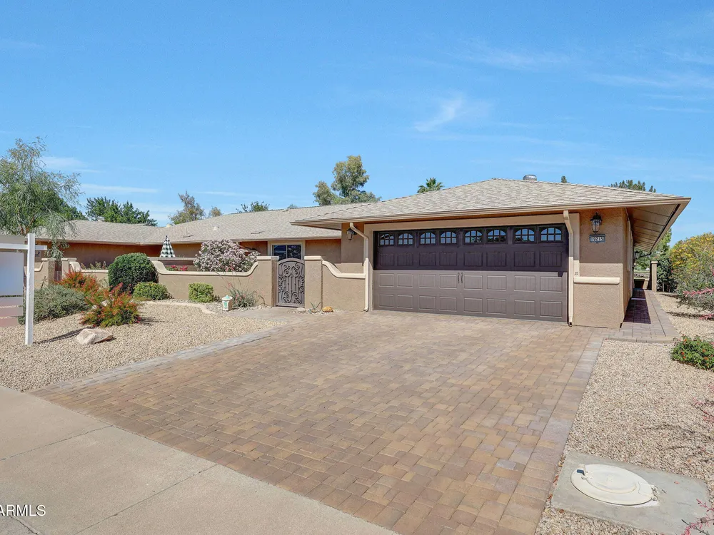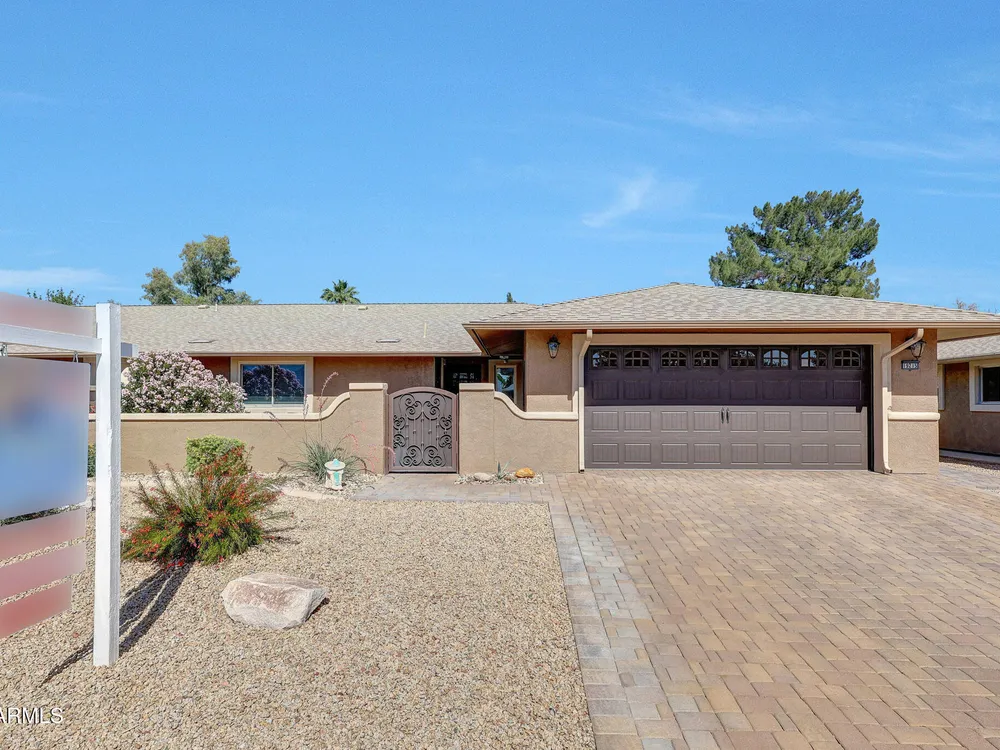 WOW! HERE YOU HAVE AN EXTENSIVELY UPDATED, MODIFIED, STUCCOED GEMINI TWIN HOME ON UNION HILLS GOLF COURSE WITH AN OPEN FLOOR PLAN AND AN OFFICE WITH A SEPARATE ENTRY TO IT! OVERSIZE TILE FLOORING THROUGHOUT. THIS HOME FEATURES A WONDERFUL KITCHEN & HUGE KITCHEN ISLAND WITH SEATING, STAINLESS APPLIANCES, GORGEOUS KNOTTY MAPLE CABINETS, GRANITE IN KITCHEN AND BATHS. ANDERSON WINDOWS AND DOORS! (WHAT A BEAUTIFUL FRONT DOOR). PAVER DRIVEWAY, PAVER COURTYARD ENTRY, PAVER BACK PATIO, WONDERFUL, PRIVATE VAULTED BACK PATIO SPACE WITH SKYLIGHTS AND KNEE WALL (APPROX. 42 X 16). BEAUTIFULLY APPOINTED PRIMARY BATH WITH STEP-IN TILE SHOWER, UPDATED VANITY, INSIDE LAUNDRY. THIS HOME IS VERY CHEERY, VERY COMFORTABLE AND VERY PHOENIX. IT IS LOCATED IN THE HIGHLY DESIRABLE PHASE 3 OF SUN CITY AZ.