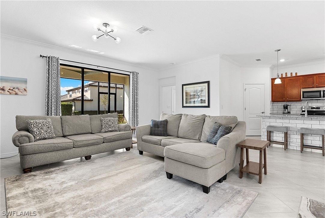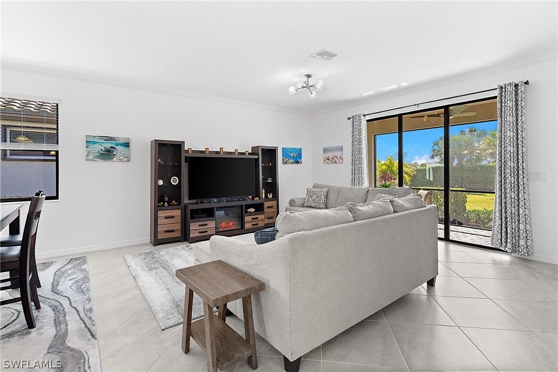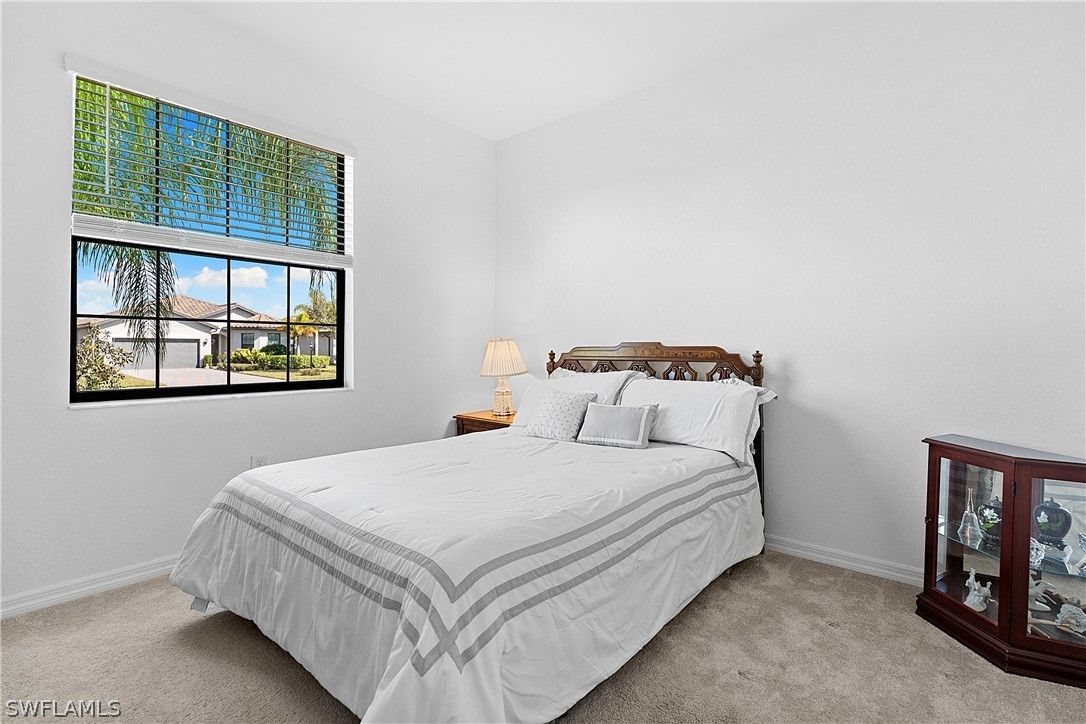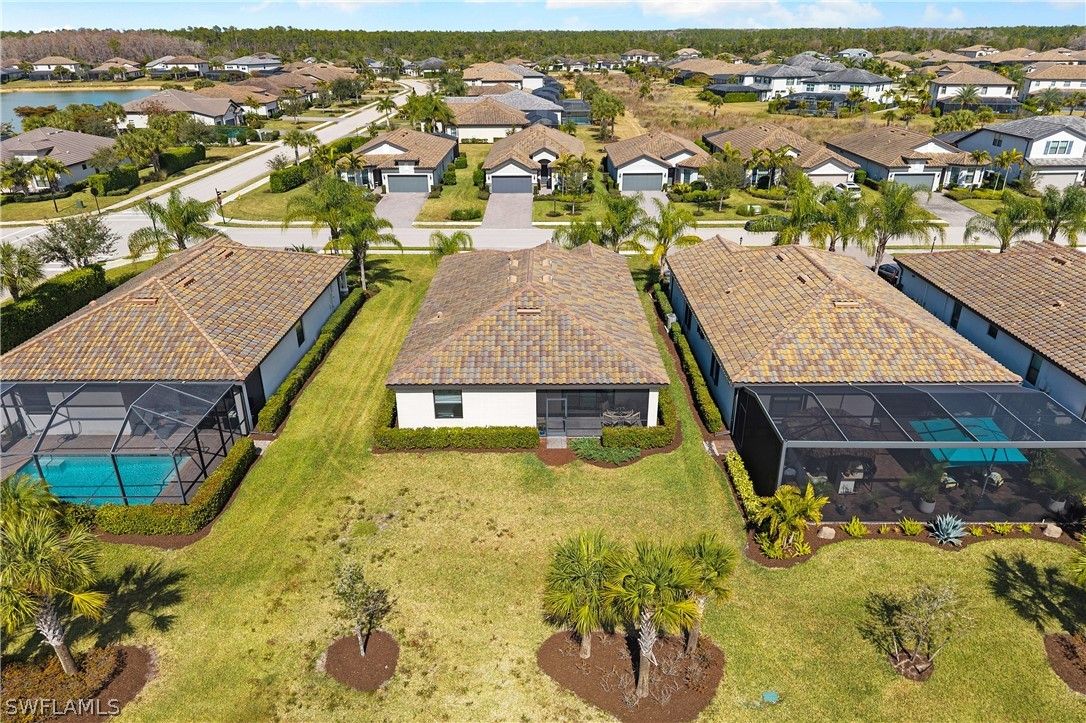 PRICED TO SELL, THIS IMMACULATELY KEPT “TREVI” WITH SOUTHERN REAR EXPOSURE AND LARGE BACKYARD IS NOW AVAILABLE IN THE PLACE AT CORKSCREW! This Residence features 4 Bedrooms, 3 Full Bathrooms (1 Guest Bedroom has an EN-SUITE Bath), 2,032sf living area + 149sf outdoor living space. As you enter the home, you’ll immediately notice how BRIGHT and CLEAN it is. The front door with DESIGNER GLASS INSERT allows the sun to pour into the home keeping it full of light throughout the day. Porcelain tile flooring flows seamlessly through the main areas of the home. In the center of the home, you'll find a NICE SIZED KITCHEN with rich brown cabinetry accented by Carrara style subway tile BACKSPLASH and matching tile on the face of the LARGE KITCHEN ISLAND, along with STAINLESS STEEL APPLIANCES and upgraded LG FRENCH DOOR REFRIGERATOR, which elevate the style and functionality of the space. The WALK-IN PANTRY provides abundant storage for dry goods and small appliances. The kitchen is joined by the dining and Greatroom in this OPEN CONCEPT home which creates an ideal entertaining space for hosting gatherings with family and friends. Enjoy INDOOR/OUTDOOR ENTERTAINING when you open the glass sliding door to the screened covered lanai. The lanai overlooks your large backyard with tons of green space! Build your own DREAM OASIS with a custom pool and spa, or FENCE THE YARD for your kids and pets to play, or do BOTH! The extra distance on the side of the home provides for convenient access so equipment can easily get to the back of the home. The SOUTHERN REAR EXPOSURE homesite will provide sun on your backyard and/or pool all year round. Inside, you’ll enjoy a SPACIOUS PRIMARY SUITE with DUAL CLOSETS and bedside views of your backyard. The Primary Bathroom boasts a large vanity with granite countertop and twin sinks, an OVERSIZED ENCLOSED SHOWER, linen closet and private water closet. Your guests will enjoy the accommodations provided by either the private EN-SUITE Bedroom (bath showcases a tub with HEAVY GLASS ENCLOSURE) or the secluded split bedrooms that share a hall bath with tub. The laundry boasts UPGRADED LG FRONT LOADING WASHER/DRYER The garage comes complete with a GE refrigerator for added food storage. THIS PROPERTY IS HIGH AND DRY AND LOCATED IN FLOOD ZONE X... NO FLOOD INSURANCE REQUIRED! The amenities at The Place at Corkscrew are second to none!... Resort Pool w/100' Waterslide & Spa, Indoor Restaurant and Bourbon Bar, Cafe, Outdoor Bar, Fitness Center, Movement Studio, Tennis, Pickleball, Bocce, Basketball, Playground, Dog Park, Childwatch, Spa Services, 2 Entry Gates. Just Minutes to Schools, Shopping, Restaurants, Airport, Beaches. For GOLF ENTHUSIASTS, the highly rated Jack Nicklaus designed OLD CORKSCREW GOLF CLUB is open to the public and located across the street from the community! NEW PUBLIX GROCERY STORE PLAZA, JUST 1.4 MILES AWAY! OTHER TENANTS INCLUDE DUNKIN DONUTS, UPS STORE, LEGNO ITALIAN RESTAURANT, NAIL SALON, DENTAL OFFICE, AND MORE!