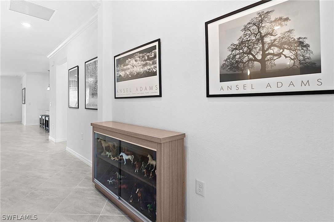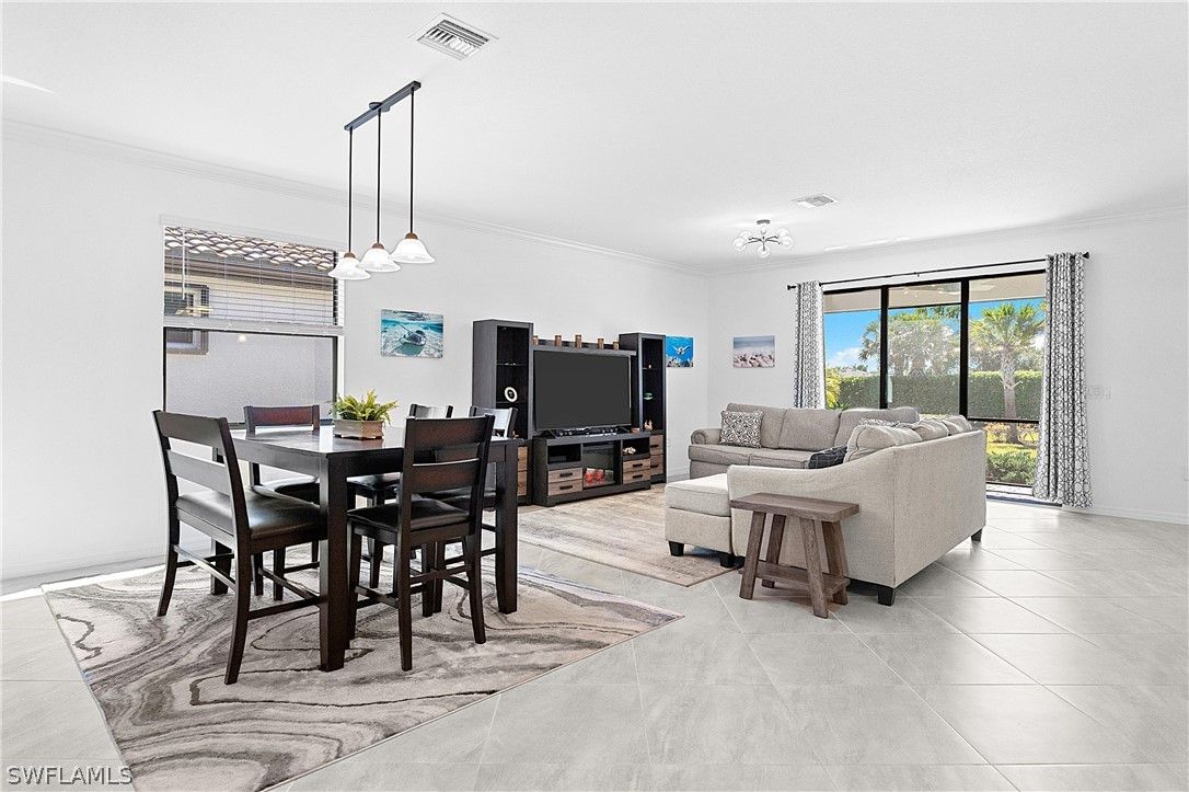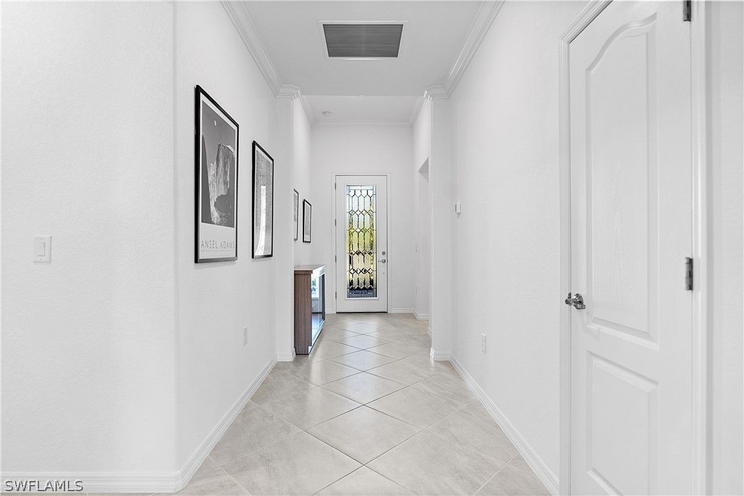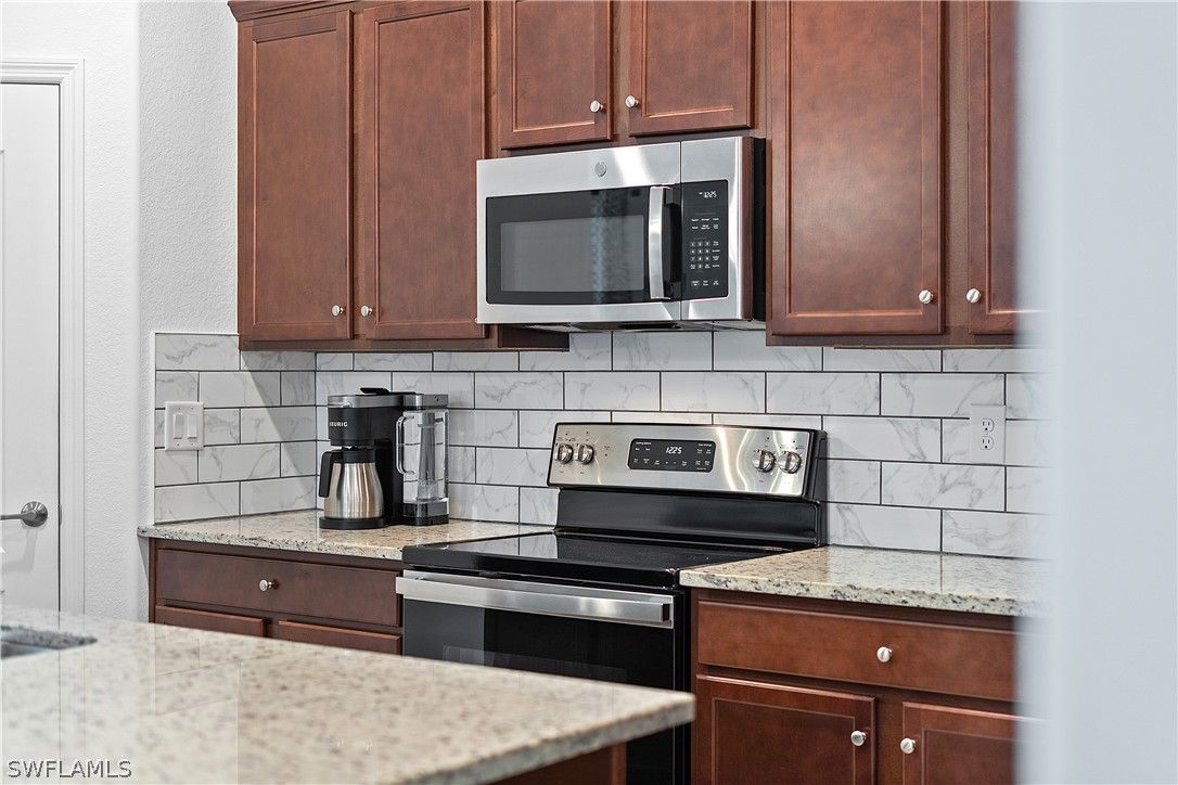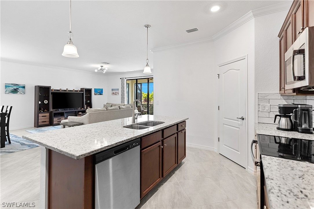 PRICED TO SELL, THIS IMMACULATELY KEPT “TREVI” WITH SOUTHERN REAR EXPOSURE AND LARGE BACKYARD IS NOW AVAILABLE IN THE PLACE AT CORKSCREW! This Residence features 4 Bedrooms, 3 Full Bathrooms (1 Guest Bedroom has an EN-SUITE Bath), 2,032sf living area + 149sf outdoor living space. As you enter the home, you’ll immediately notice how BRIGHT and CLEAN it is. The front door with DESIGNER GLASS INSERT allows the sun to pour into the home keeping it full of light throughout the day. Porcelain tile flooring flows seamlessly through the main areas of the home. In the center of the home, you'll find a NICE SIZED KITCHEN with rich brown cabinetry accented by Carrara style subway tile BACKSPLASH and matching tile on the face of the LARGE KITCHEN ISLAND, along with STAINLESS STEEL APPLIANCES and upgraded LG FRENCH DOOR REFRIGERATOR, which elevate the style and functionality of the space. The WALK-IN PANTRY provides abundant storage for dry goods and small appliances. The kitchen is joined by the dining and Greatroom in this OPEN CONCEPT home which creates an ideal entertaining space for hosting gatherings with family and friends. Enjoy INDOOR/OUTDOOR ENTERTAINING when you open the glass sliding door to the screened covered lanai. The lanai overlooks your large backyard with tons of green space! Build your own DREAM OASIS with a custom pool and spa, or FENCE THE YARD for your kids and pets to play, or do BOTH! The extra distance on the side of the home provides for convenient access so equipment can easily get to the back of the home. The SOUTHERN REAR EXPOSURE homesite will provide sun on your backyard and/or pool all year round. Inside, you’ll enjoy a SPACIOUS PRIMARY SUITE with DUAL CLOSETS and bedside views of your backyard. The Primary Bathroom boasts a large vanity with granite countertop and twin sinks, an OVERSIZED ENCLOSED SHOWER, linen closet and private water closet. Your guests will enjoy the accommodations provided by either the private EN-SUITE Bedroom (bath showcases a tub with HEAVY GLASS ENCLOSURE) or the secluded split bedrooms that share a hall bath with tub. The laundry boasts UPGRADED LG FRONT LOADING WASHER/DRYER The garage comes complete with a GE refrigerator for added food storage. THIS PROPERTY IS HIGH AND DRY AND LOCATED IN FLOOD ZONE X... NO FLOOD INSURANCE REQUIRED! The amenities at The Place at Corkscrew are second to none!... Resort Pool w/100' Waterslide & Spa, Indoor Restaurant and Bourbon Bar, Cafe, Outdoor Bar, Fitness Center, Movement Studio, Tennis, Pickleball, Bocce, Basketball, Playground, Dog Park, Childwatch, Spa Services, 2 Entry Gates. Just Minutes to Schools, Shopping, Restaurants, Airport, Beaches. For GOLF ENTHUSIASTS, the highly rated Jack Nicklaus designed OLD CORKSCREW GOLF CLUB is open to the public and located across the street from the community! NEW PUBLIX GROCERY STORE PLAZA, JUST 1.4 MILES AWAY! OTHER TENANTS INCLUDE DUNKIN DONUTS, UPS STORE, LEGNO ITALIAN RESTAURANT, NAIL SALON, DENTAL OFFICE, AND MORE!