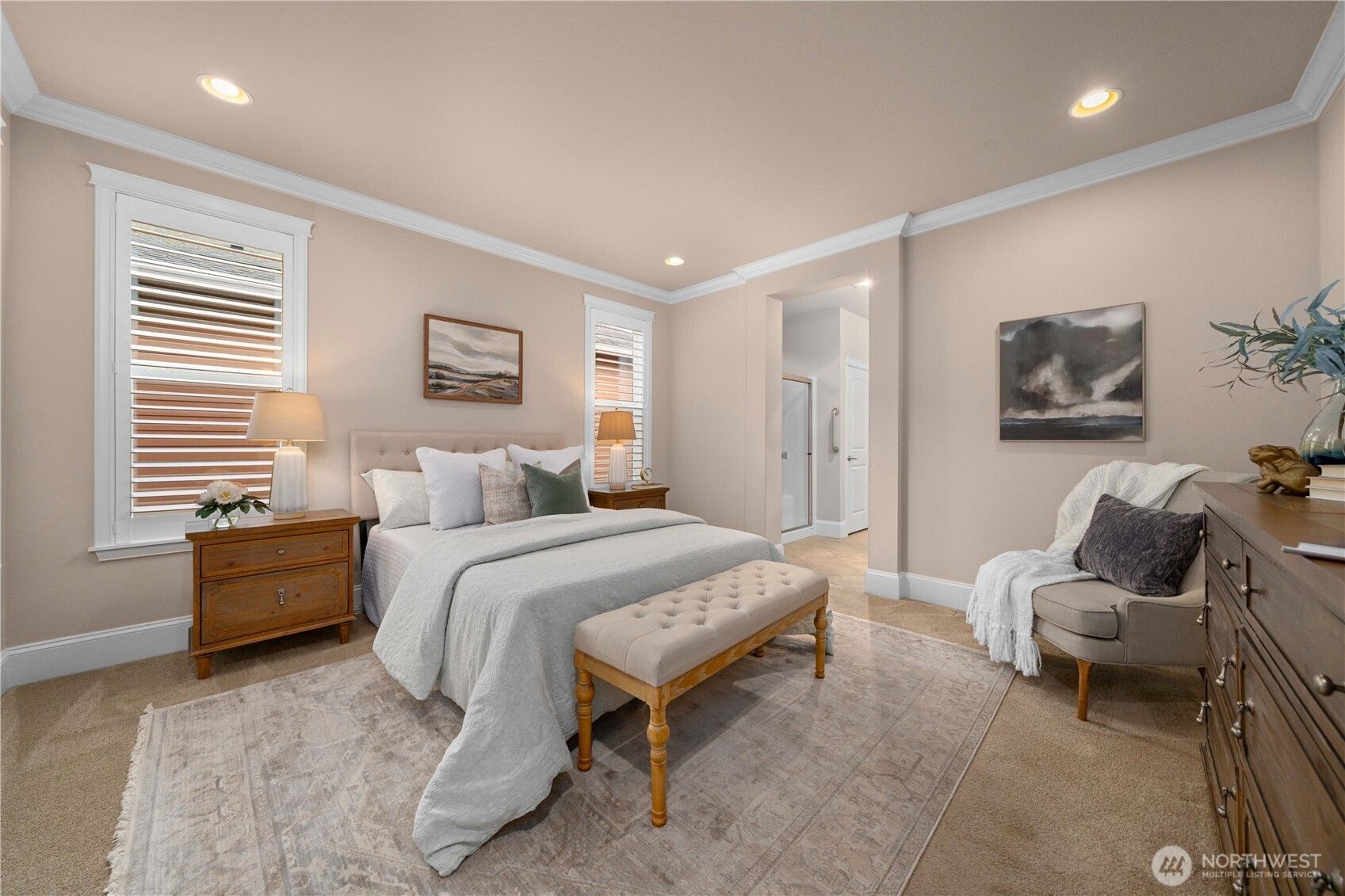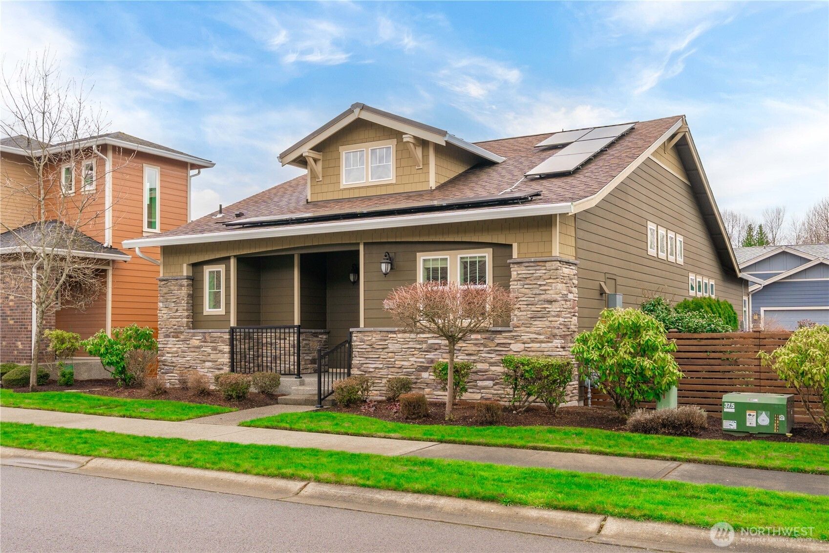 Resort 55+ living at Trilogy at Tehaleh! Better than new, this gorgeous home boasts over $100K in stunning upgrades. 2nd bedroom could easily be enclosed. Pristine kitchen, Quartz counters & extensive Engineered hardwoods w/ tile floors & Quartz in baths. Top tier trim package & crown throughout, custom blinds/shutters. "Smart Space" = laundry/office/crafting. Striking 3 panel wall of glass (w/ polarized tint) leads to private & low maintenance oversized side yard w/ water feature & motorized awning. Finished 2 car garage, solar panels & new AC. New interior/exterior paint & gutters. $9500 Club fee is waived for Buyer! Walk to Lodge/pool/fitness/restaurant & bar/Pickleball, Post & Pour, retail & trails. Live your best life in Trilogy!