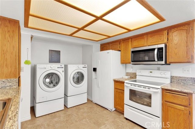 Located within the beautiful, guard-gated 55+ community of Jess Ranch. One of Apple Valley’s most sought-after neighborhoods. This well-appointed home offers comfort, convenience, and an inviting open floor plan. The interior features laminate flooring, classic vaulted wood-beamed ceilings, and ceiling fans that enhance the light and airy feel throughout. The home offers TWO spacious PRIMARY SUITES, each with a WALK-IN CLOSET and FULL BATHROOM. One suite includes a Safe Step walk-in tub, and both bedrooms feature sliding glass doors that open to the outdoor patio, perfect for enjoying fresh air and indoor-outdoor living. The kitchen is open to the formal dining area and features ample cabinetry, granite countertops, and a conveniently located indoor laundry area. The thoughtful layout is ideal for both everyday living and entertaining. Ideally situated approximately one mile from shopping, restaurants, medical facilities, banks, and a local theater, this home offers easy access to daily necessities and entertainment. Jess Ranch residents enjoy a vibrant community lifestyle with nearby farmers markets, golf course, and access to local museums. A wonderful opportunity to enjoy secure, low-maintenance living in a welcoming 55+ community.
