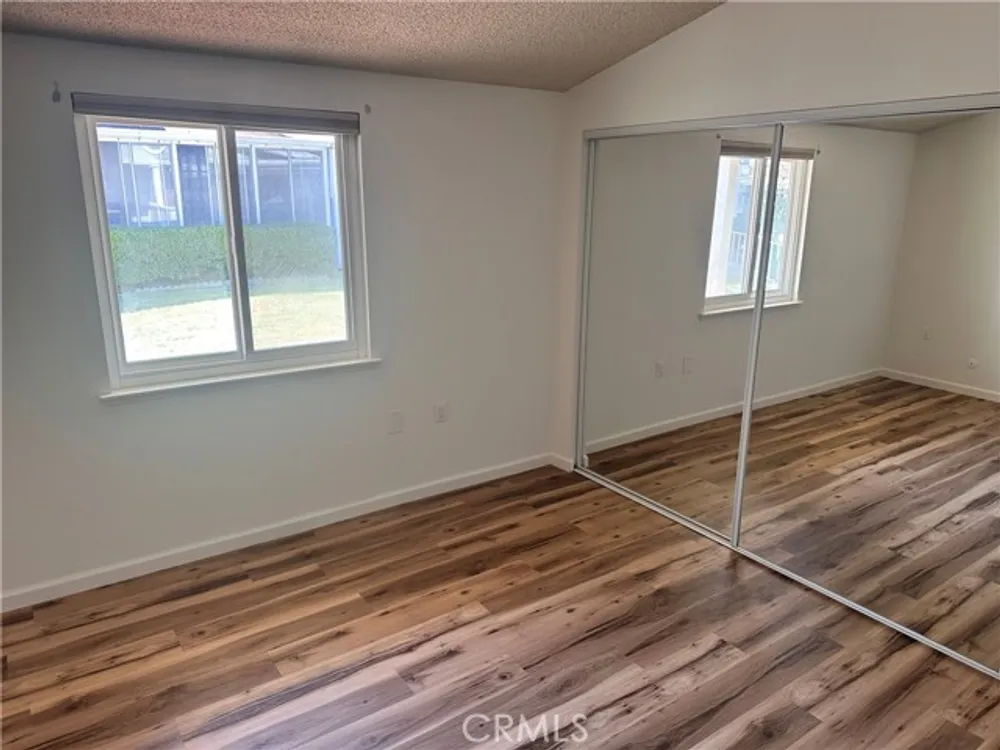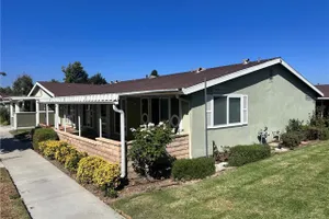 Light and bright single-story end unit located in the desirable guard-gated 55+ community of Friendly Valley. This 2 bedroom 2 bathroom home features a spacious floor plan with updated laminate flooring, fresh paint, dual-pane vinyl windows, French doors to the second bedroom, indoor stacked laundry, and a walk-in stand-up shower in the main bathroom. Enjoy a cozy covered patio very close to the clubhouse and guest street parking. Community amenities include a newly refurbished pool and spa, auditorium, clubhouse, exercise room, game room, woodworking and ceramics studios, shuffleboard, horseshoes, basketball, picnic and BBQ areas, lawn bowling, and two golf courses. The HOA covers trash, water, hot water, sewer, building and roof maintenance, landscaping and gardener services, insurance, a special cable TV package, and more. Friendly Valley offers gated entry with 24/7 guard and patrol for comfort and peace of mind.