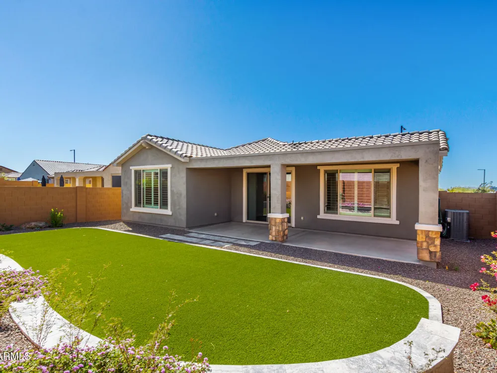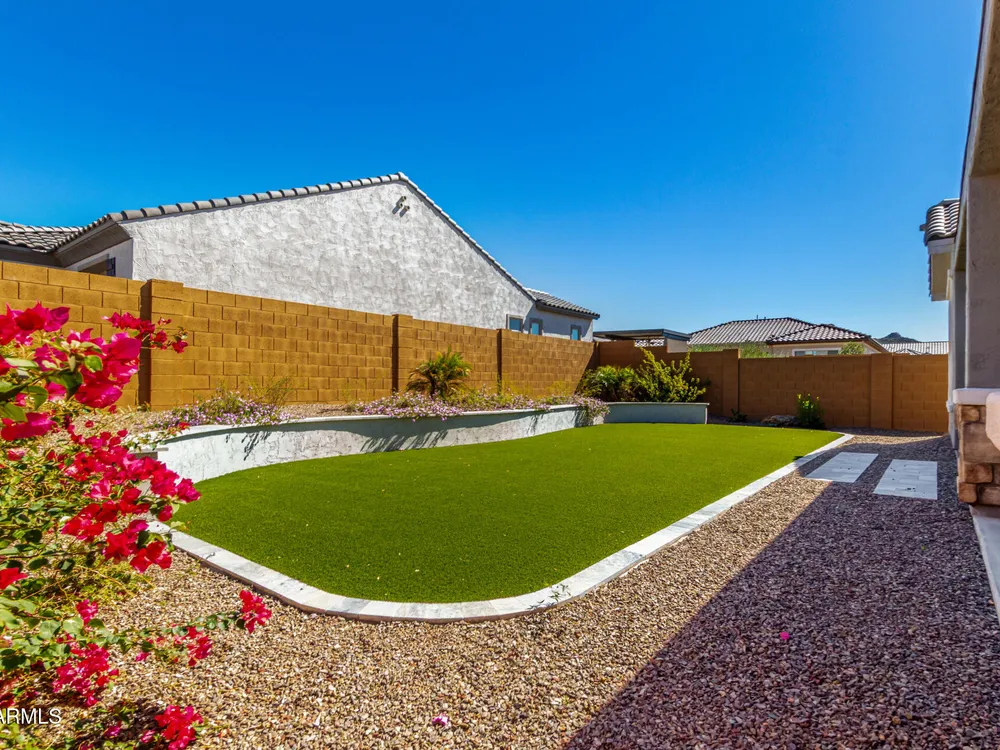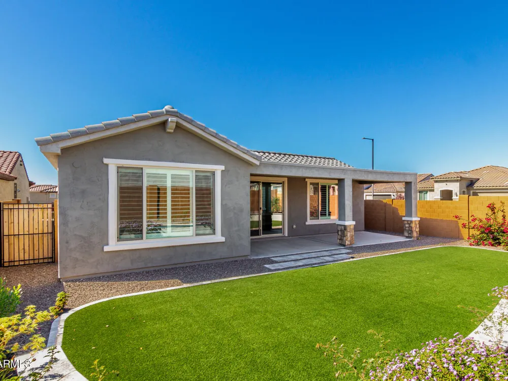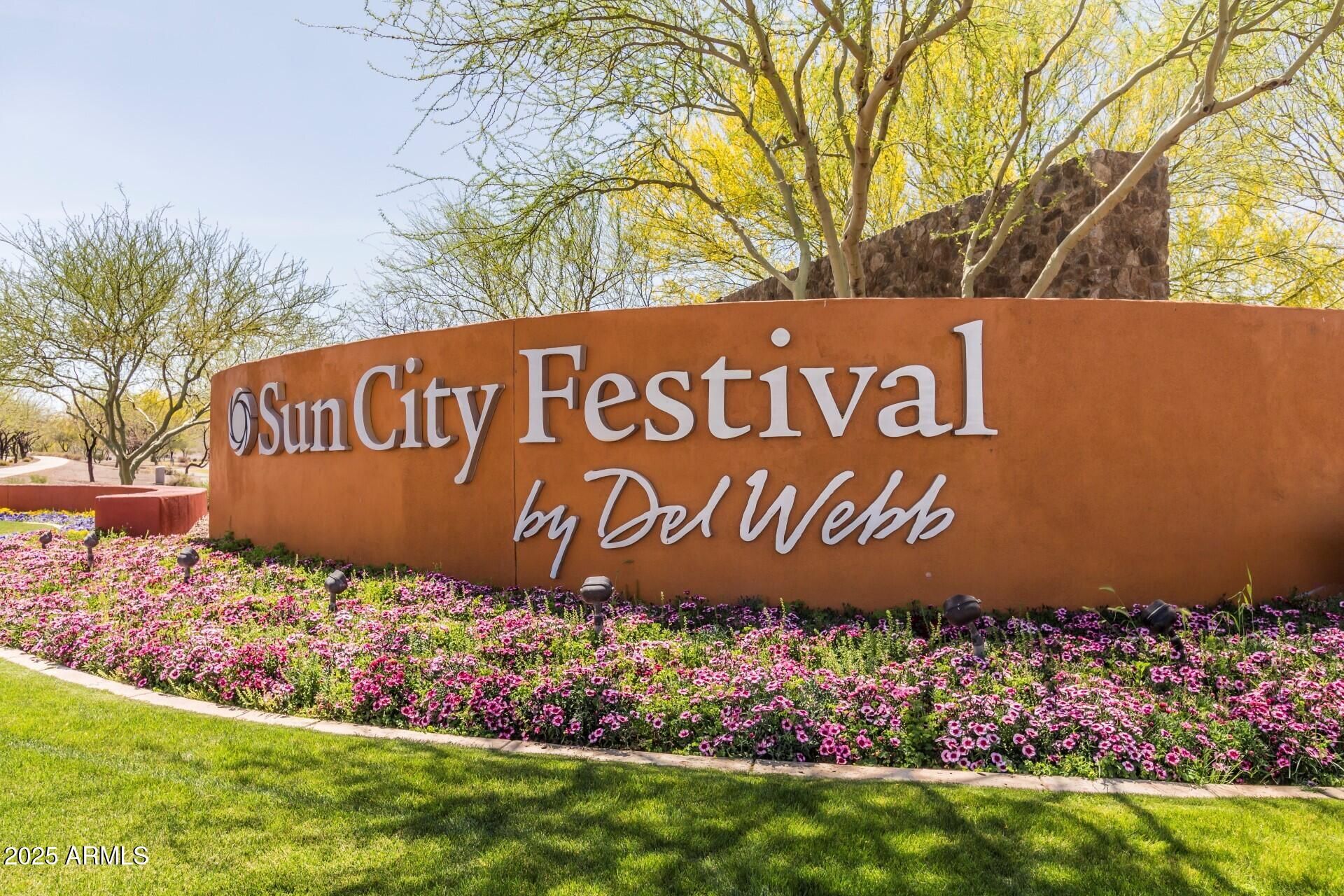 Stylish Desert Living in Sun City Festival! This stunning 2-bed, 2.5-bath home with den offers an open great room layout w/ a chef's kitchen featuring granite counters, gas cooktop, wall oven & microwave, soft-close cabinets, walk-in pantry, a large island and enjoy a private courtyard just off the kitchen. Relax in the spacious primary suite with dual vanities, walk-in shower, and closet. Guest room is a true suite as it includes attached bath. Powder room is just the off hallway. Laundry room complete with washer/dryer and storage cabinets. Garage features cabinets, tankless water heater and water softener. Home includes separate golf cart bay. Enjoy effortless outdoor living in your low-maintenance backyard featuring lush artificial turf and desert landscaping for year-round beauty!