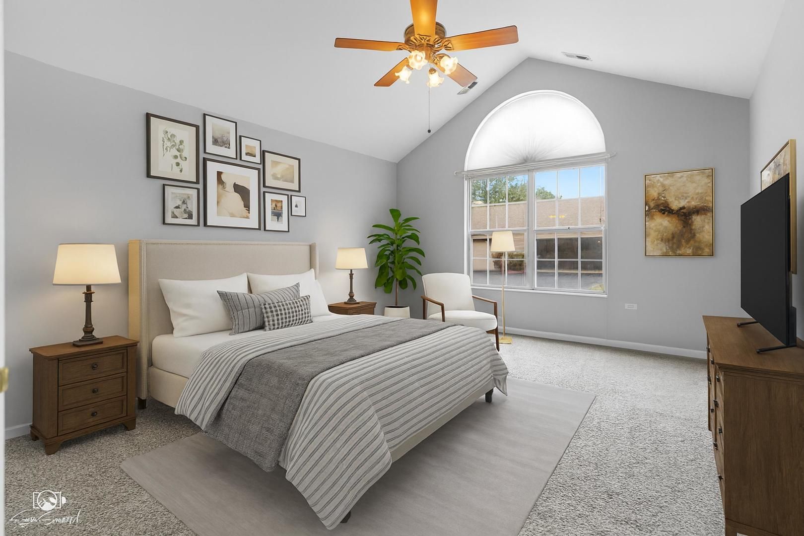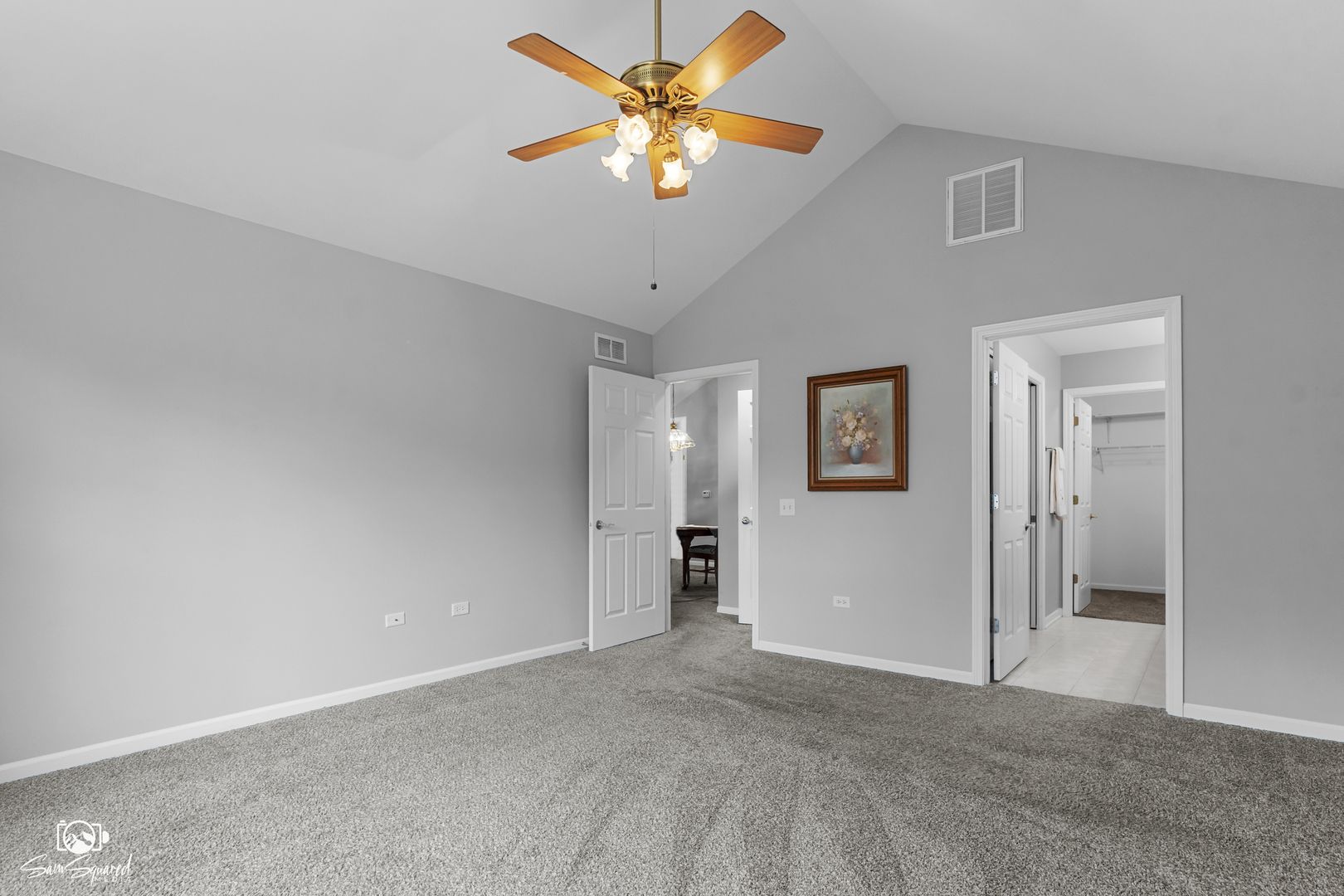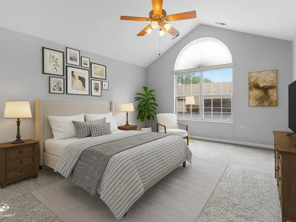 - Vaulted Ceiling(s), Bedroom on Main Level, Full Bathroom, Walk-In Closet(s), Open Floorplan, Den, Dual Sinks, Living/Dining Room