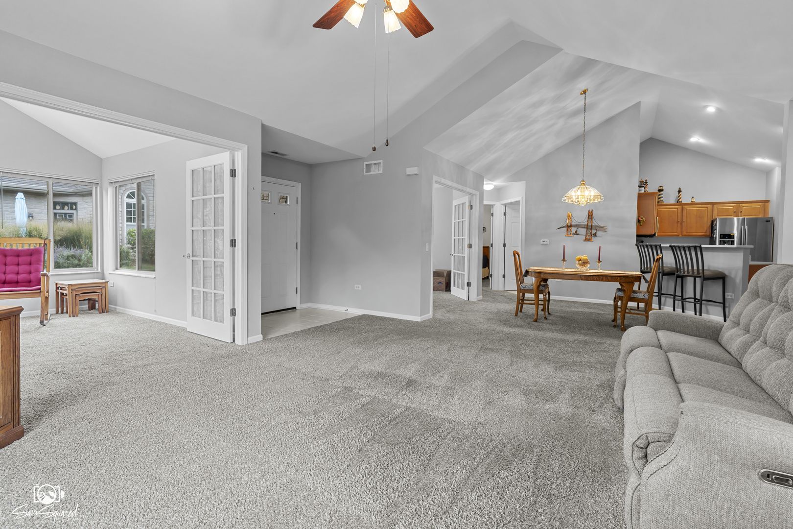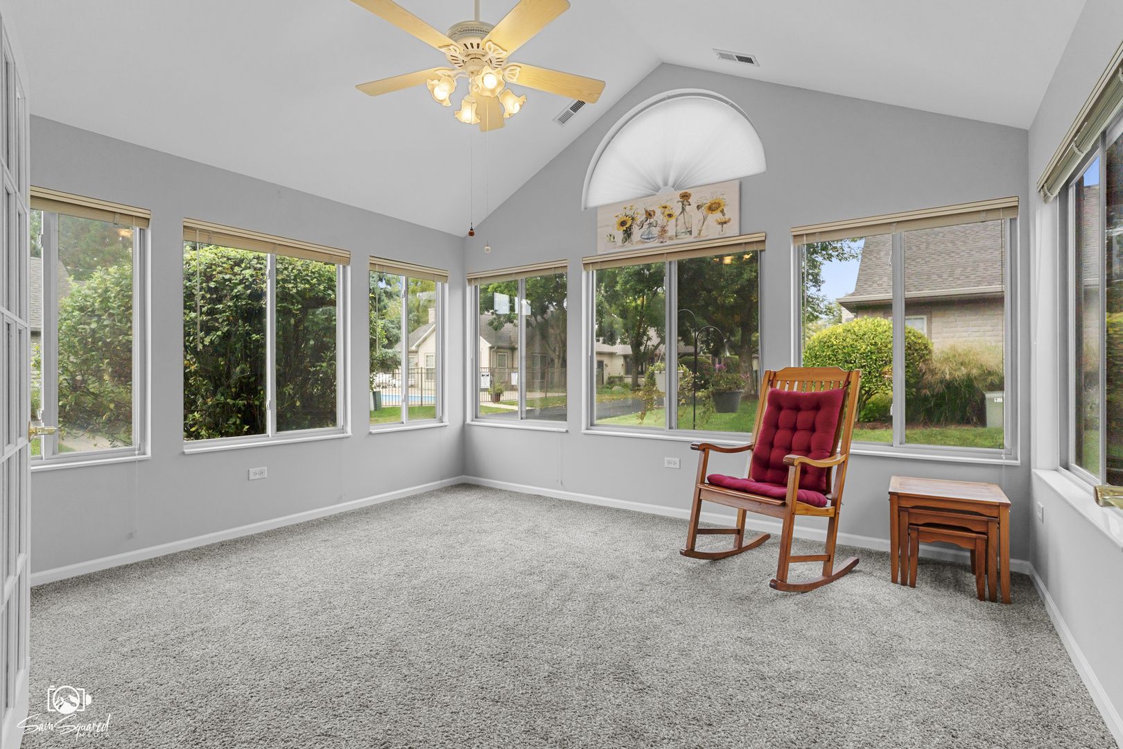 Experience the ease and comfort of single-level living in this inviting ranch townhome, where every detail is designed for convenience and enjoyment. Picture cozy evenings by the gas fireplace beneath vaulted ceilings, or hosting family and friends as the open living, dining, and kitchen spaces flow effortlessly together. French doors lead to a private office, ideal for working from home or creating a quiet retreat. The heated sunroom is the perfect spot to sip your morning coffee while watching the seasons change, and the spacious owner's suite with walk-in closet and private bath offers a relaxing end to each day. With maintenance-free living, you'll never have to worry about mowing the lawn or shoveling snow - instead, spend your time enjoying the community clubhouse or lounging in the summer by the sparkling outdoor pool. Nestled among mature trees in a beautifully maintained subdivision and just minutes from shopping, dining, and everyday conveniences, this home offers not just a place to live, but a lifestyle of ease, comfort, and connection.