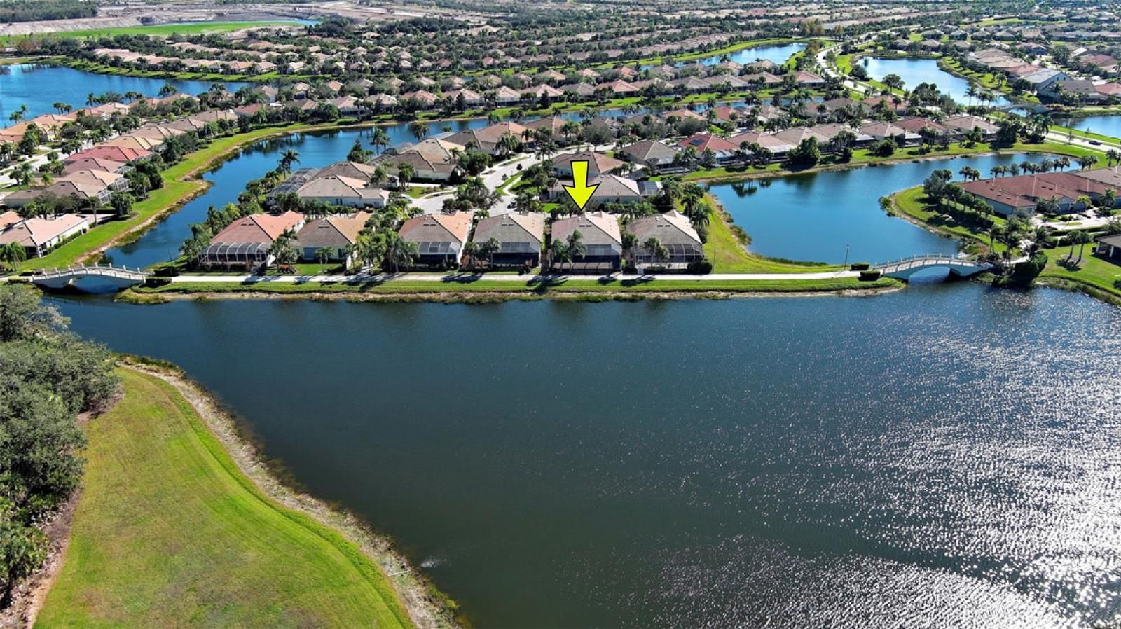 Front-row sunsets over tranquil water define this exceptional home, set on a premium lot in the heart of IslandWalk. Offering long water views and a desirable west-facing exposure that fills the evening sky with soft pink and vibrant sunset hues, the home is tucked away on a private hammerhead cul-de-sac. Centrally located within the community, it provides easy access to all of IslandWalk’s resort-style amenities, combining convenience with privacy. This highly sought-after Carlyle floor plan offers over 2,500 square feet of living space with four bedrooms and four full bathrooms, and is being sold turn-key furnished. Lightly used as a seasonal residence since new, the home is in pristine condition. Expansive water views are enjoyed from almost every room, creating a bright, open, and inviting atmosphere. Interior features include 12-foot ceilings, 8-foot doors, and a spacious great room with a custom-built feature wall and added cabinetry. The centrally located white kitchen offers tray ceilings, granite countertops, and a pass-through to the formal dining area. The owner’s bath is thoughtfully designed with dual vanities, a soaking tub, and a walk-in shower with dual entryways, providing flexible use and a sense of separation within the suite. The bedroom layout is split for privacy, with secondary bedrooms served by full baths in the hallway. The 50’ x 24’ screened lanai with clear-view screens is ideal for entertaining or enjoying sunsets over the water. Recent updates include a new water heater (2023), HVAC system (2019), and exterior paint (2024). IslandWalk offers a resort-style lifestyle with 12 pickleball courts, 8 Har-Tru tennis courts, 2 dog parks, a basketball court, playground, community garden, 2 fitness gyms, 2 resort-style pools, 1 lap pool, 2 firepits, and 6 bocce courts. HOA fees include cable, Wi-Fi, and 24-hour manned, gated security. While new communities are being built throughout Wellen Park, IslandWalk stands out with its extensive walking paths, Venice-inspired bridges, and unmatched resort-style amenities, providing a lifestyle experience that is difficult to find elsewhere. The community is conveniently located near the Atlanta Braves spring training stadium and Wellen Park, offering easy access to shopping, dining, and entertainment. OPEN HOUSE SCHEDULED FOR JANUARY 11TH, FROM 1:00 TO 4:00 PM. Don't miss this lovely home, priced to sell!