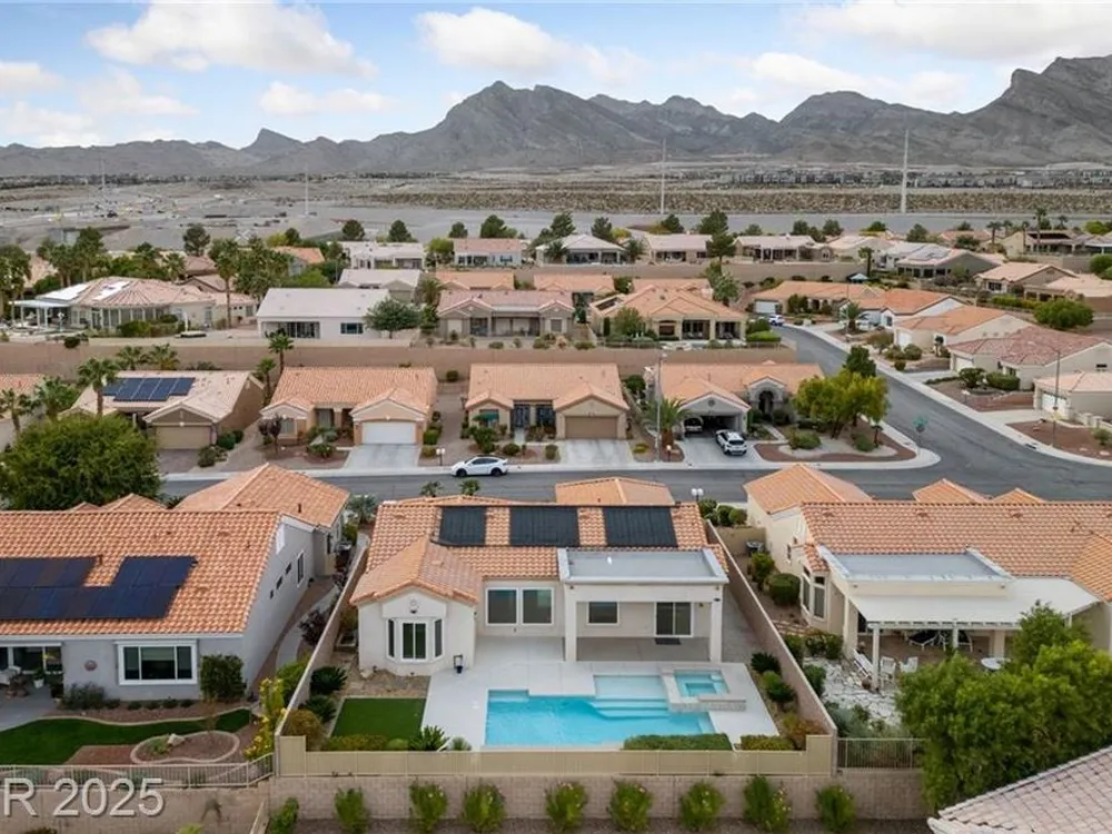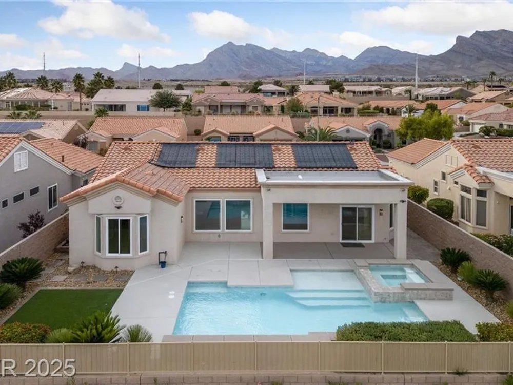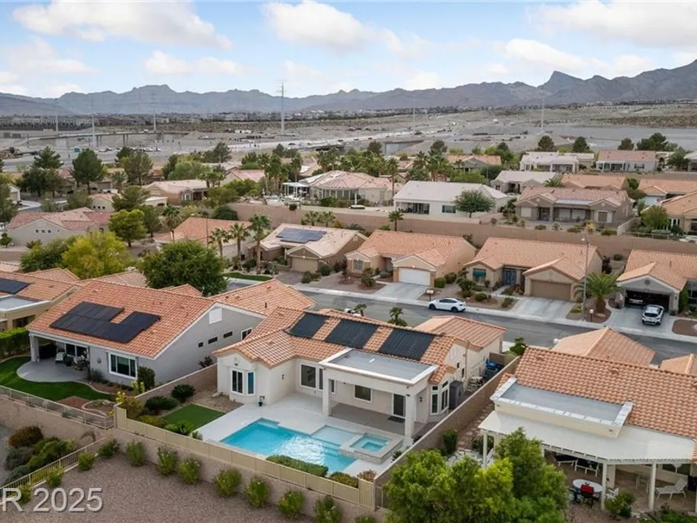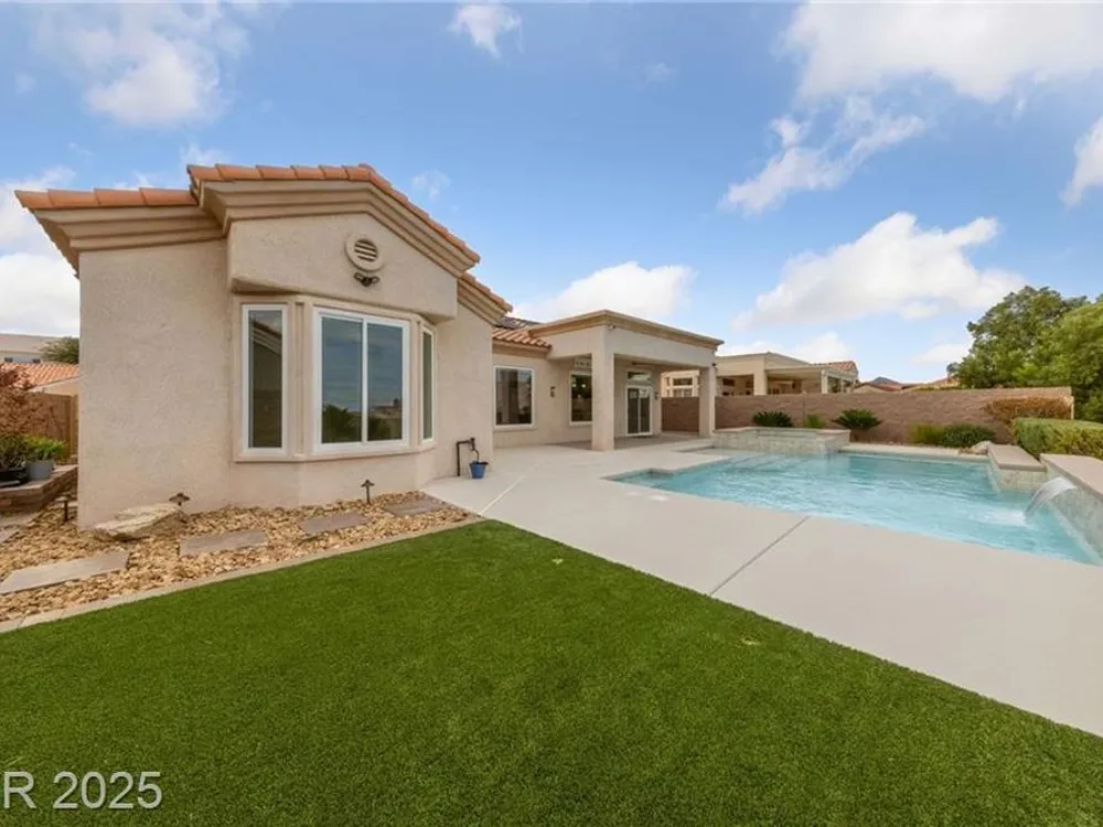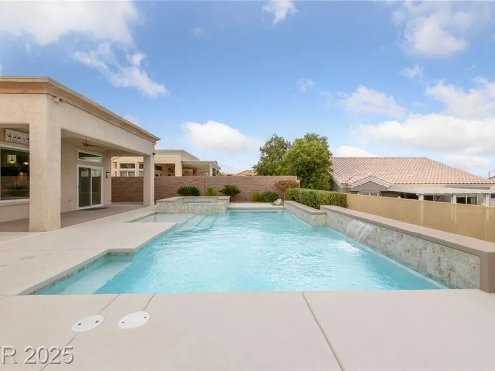 VALLEY & STRIP VIEW ~ Live Like You Are On Vacation! Exceptional 2 Bedroom, 2 Bath, 1,713 sq. ft. Home. Completely Remodeled & Redesigned, this Residence blends Luxury and Functionality. Enjoy the Solar Heated Built In Pool & Spa with a Waterfall, Cool Deck, Pentair Pool Equipment, and a Beautifully Landscaped Yard Featuring Mature Plants, Upgraded Irrigation, Artificial Turf, and Exterior LED Lighting. Inside, New Windows and Polished, Sealed Travertine Tile Floors Flow Throughout. The Chef’s Kitchen boasts a Farmhouse Sink, Ice-Sprinkled Granite Countertops and Backsplash, Soft-Close Maple Cabinets with Full Pullouts, a Superior Liebherr Refrigerator, a Miele Futura Dishwasher, a Bertazzoni Stove and Hood, a GE Monogram Microwave, an RO Water System, Under/Over Cabinet Lighting, and Dimmable Recessed LED Ceiling Lights. The Spa Inspired Master Bathroom features a Custom Travertine Shower, Double Kohler Sinks, & Granite Countertops. ENJOY OUR SUN CITY 55plus LIFESTYLE & AMENITIES.