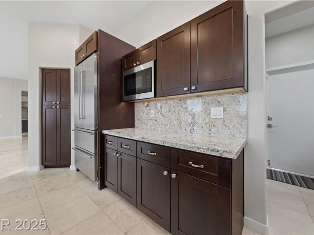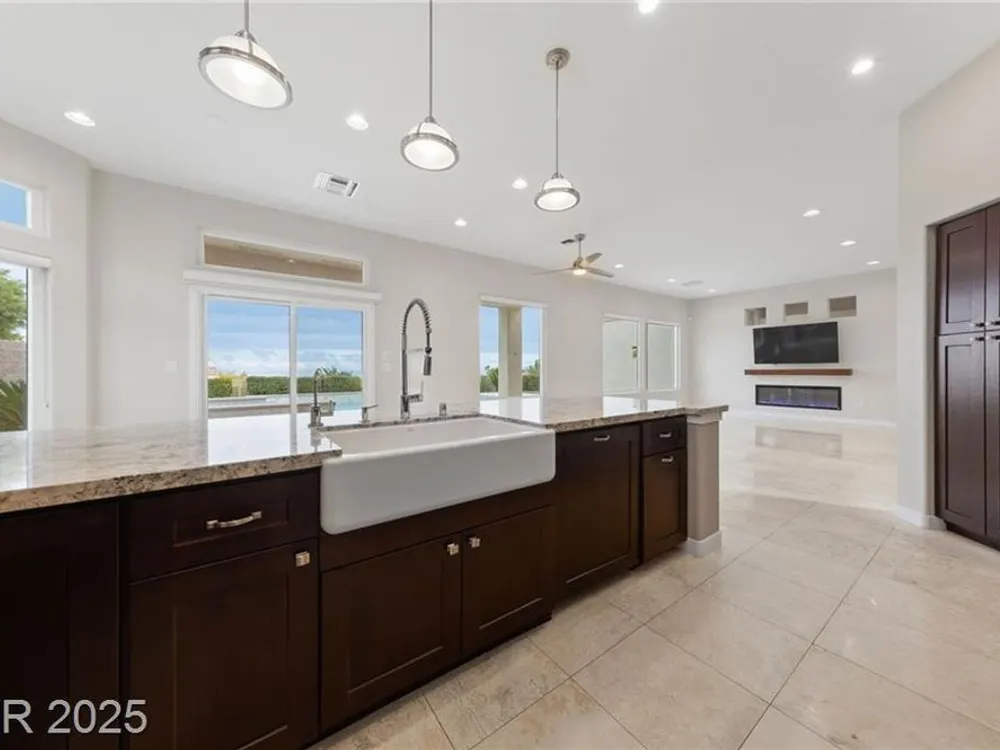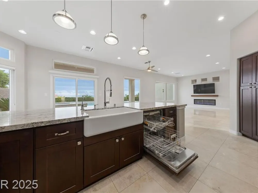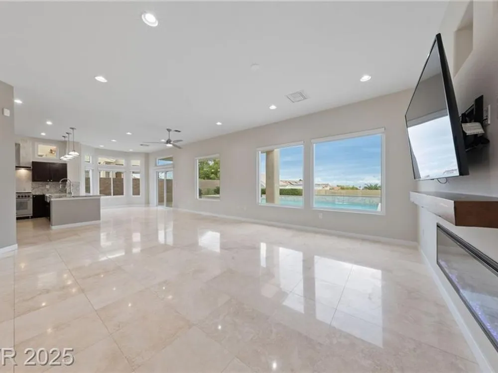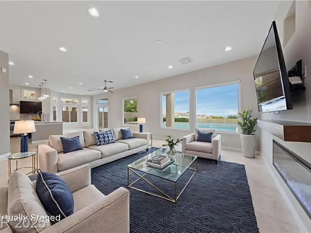 VALLEY & STRIP VIEW ~ Live Like You Are On Vacation! Exceptional 2 Bedroom, 2 Bath, 1,713 sq. ft. Home. Completely Remodeled & Redesigned, this Residence blends Luxury and Functionality. Enjoy the Solar Heated Built In Pool & Spa with a Waterfall, Cool Deck, Pentair Pool Equipment, and a Beautifully Landscaped Yard Featuring Mature Plants, Upgraded Irrigation, Artificial Turf, and Exterior LED Lighting. Inside, New Windows and Polished, Sealed Travertine Tile Floors Flow Throughout. The Chef’s Kitchen boasts a Farmhouse Sink, Ice-Sprinkled Granite Countertops and Backsplash, Soft-Close Maple Cabinets with Full Pullouts, a Superior Liebherr Refrigerator, a Miele Futura Dishwasher, a Bertazzoni Stove and Hood, a GE Monogram Microwave, an RO Water System, Under/Over Cabinet Lighting, and Dimmable Recessed LED Ceiling Lights. The Spa Inspired Master Bathroom features a Custom Travertine Shower, Double Kohler Sinks, & Granite Countertops. ENJOY OUR SUN CITY 55plus LIFESTYLE & AMENITIES.