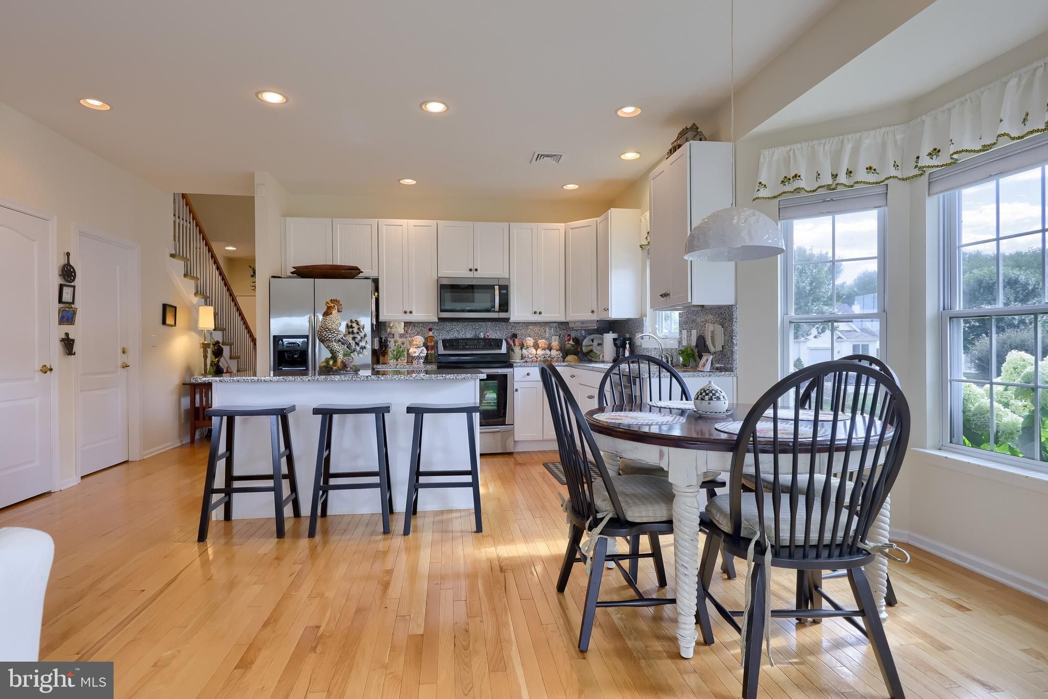 Welcome to this beautifully appointed 3-bedroom, 3-bathroom home in the tranquil 55+ community of Village Grande, where residents enjoy access to a clubhouse with fitness room, swimming pool, community gathering room, game rooms, fire pit, tennis & pickleball courts, and more. The home's main level boasts an open-concept design with a combined living and dining room featuring soaring vaulted ceilings, hardwood floors, and an abundance of natural light. The eat-in kitchen is a chef’s delight with granite countertops and backsplash, a center island, stainless steel appliances, and a sunny breakfast nook with decorative pebble flooring and sliding glass doors leading to the back deck. An inviting family room highlights double crown molding, a stylish wood-paneled accent wall, and ceiling fan. The spacious primary suite with scenic natural views is conveniently located on the main level and features a tray ceiling with crown molding accents, two walk-in closets, and a luxurious ensuite bath with a double sink vanity, soaking tub, and walk-in shower. A second bedroom (currently used as a home office), a full bath with walk-in shower, and a convenient laundry room complete this floor. Upstairs, a large loft overlooks the living room and offers endless possibilities, accompanied by a third bedroom and full bath with tub-shower combo. The finished walk-out basement is perfect for entertaining, offering a recreation room with dry bar, pendant lighting, and a kegerator. The recreation room also features a dining area, cozy gas fireplace, and sliding glass door access to the patio, while an unfinished section of the basement provides ample storage or future expansion potential. Outdoor living is enhanced by a spacious back deck with stairs leading to a patio and private backyard retreat, each offering stunning views of nature's beauty and local wildlife surrounding the detention basin. Additional highlights include an oversized two-car garage and a convenient location near LGH Suburban Pavilion, Park City Mall, Downtown Lancaster, and local amenities, with the Veranda community right next door. Don’t miss the opportunity to call this exceptional property your new home - schedule a private showing today!