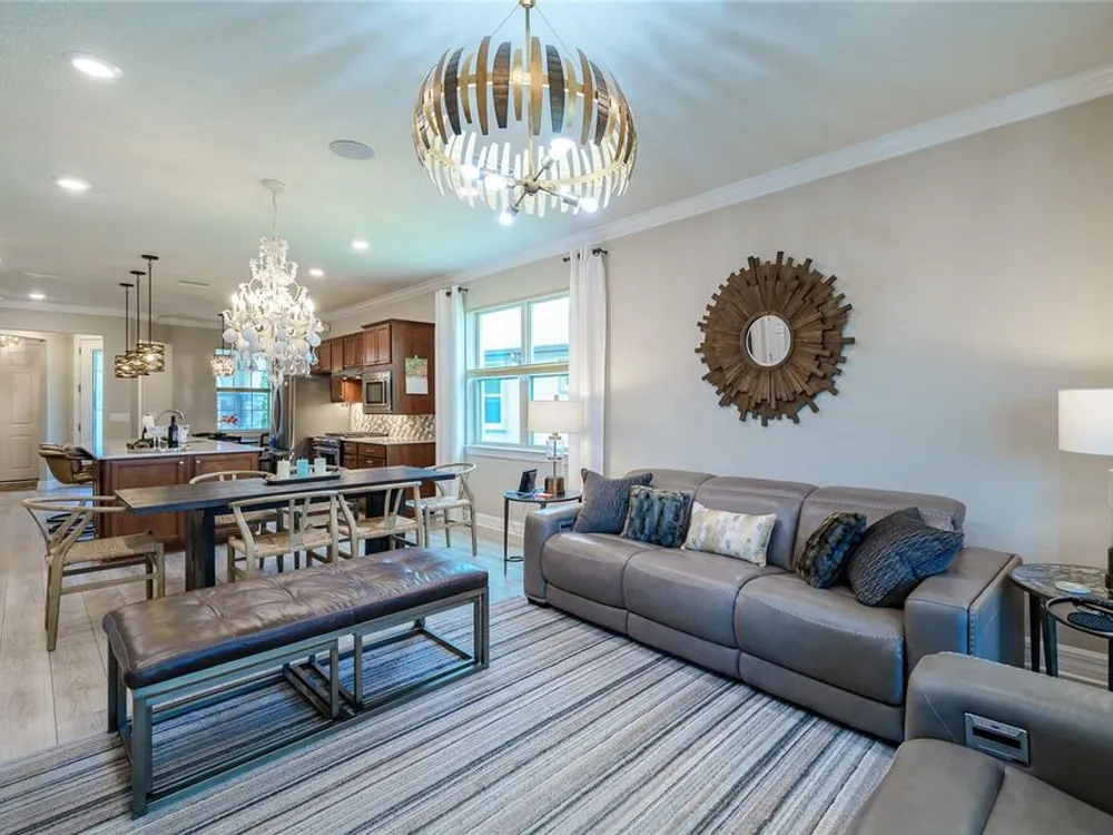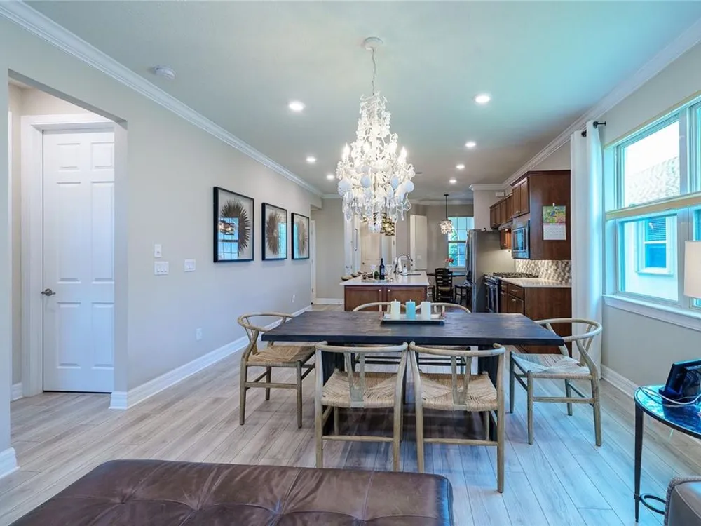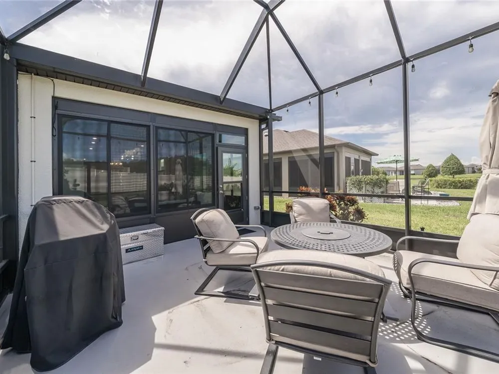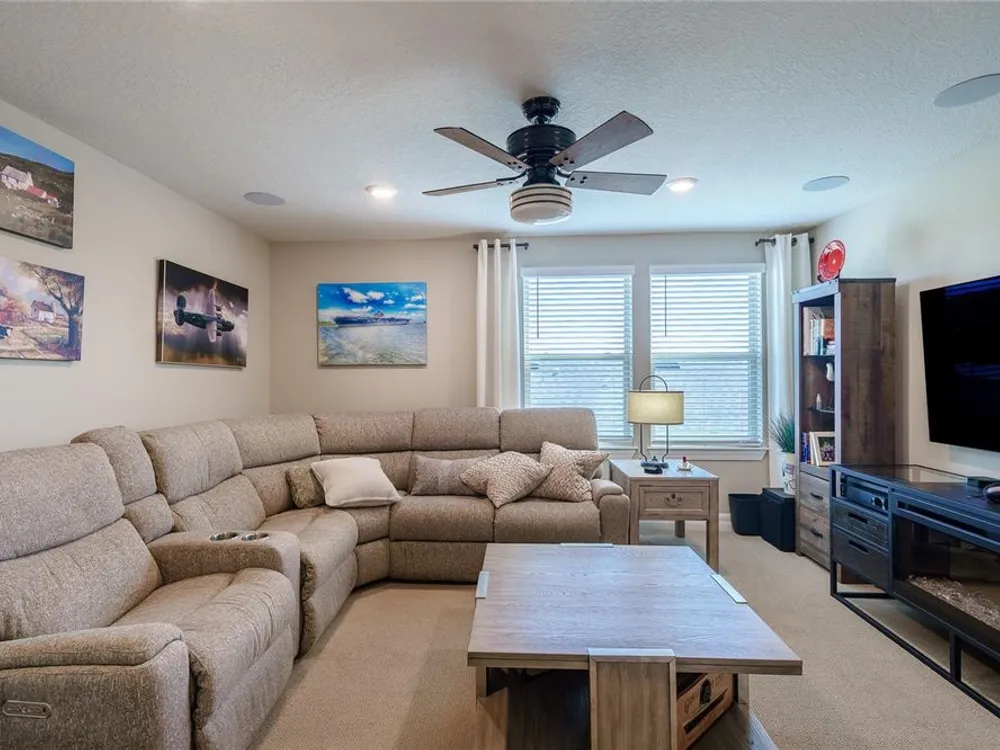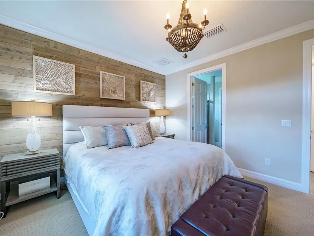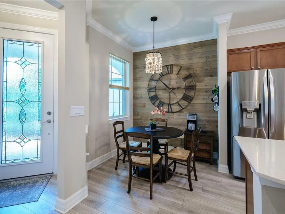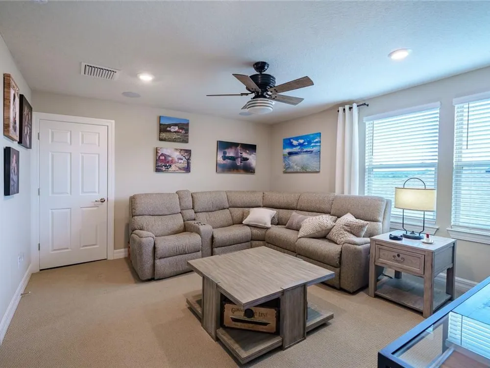 Welcome to this stunning Steel Creek Grand model, perfectly situated in the sought-after gated active over 55 community of Del Webb Bexley in Land O’ Lakes—just minutes from major roads, top shopping and dining, excellent medical facilities, and less than 30 minutes from both Downtown Tampa and Tampa International Airport. From the moment you arrive, the great curb appeal is undeniable, with a brick paver driveway, stone-accented entryway, covered front porch, retractable screen door, and decorative glass inlay front door creating a warm and inviting welcome. Inside, you’ll be greeted by soothing earth tones, wood accent walls, and unique designer light fixtures throughout, with crown molding in every room adding elegance. Luxury vinyl flooring flows through the main living areas, complemented by a staircase with decorative wrought-iron spindles that’s tucked away to preserve the home’s open flow. The heart of the home is the spacious, well-appointed kitchen, featuring a massive quartz island, stainless steel appliances, pull-out shelving, and a custom pantry. Enjoy meals in the sunlit breakfast nook, then transition to the Florida room (not included in square footage) that leads to two screened lanais—one enhanced with perimeter outdoor lighting—perfect for evening gatherings. This well-designed two-story layout features 3 bedrooms, 3 full baths, and a loft. The upstairs offers a private retreat with a bedroom, full bath, and loft—ideal for a guest suite, a grandkids’ playroom, or a home office—complete with built-in surround sound speakers. The primary suite boasts a spa-like ensuite bath with dual sinks, quartz counters, a shower with glass doors, and an exceptional custom-built closet. All closets in the home feature custom built-ins, and the laundry room offers cabinet storage plus an included washer and dryer. The 2-car garage comes with extra storage cabinets that will remain for the new owners. The pie-shaped, oversized backyard provides complete privacy and a peaceful pond view to the left—an ideal spot for morning coffee or quiet relaxation. And with lawn care included, you’ll have more time to enjoy the things you love. If you enjoy staying Active INCREDIBLE AMENITIES include a Resort-Style Pool with lap lanes, Resistance Pool, Hot Tub, and Cabanas, Expansive 19,000 sq. ft. clubhouse, Multipurpose Room and Arts and Crafts Room, Beer and Wine Bar, Cafe/Bistro/, Outdoor Fireplace, Lounge, 2 Tennis Courts, 6 Pickle ball Courts, 4 Bocce Ball Courts, Fitness Center, Movement Studio, Community Garden, Dog Park, and many Resident Clubs and Interest Groups! Whether you're looking for a full-time residence or a second home to escape the cold and snowy days up North, impeccably cared for, this home has it all! Don’t let this one slip away!