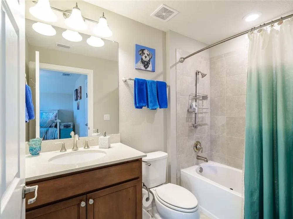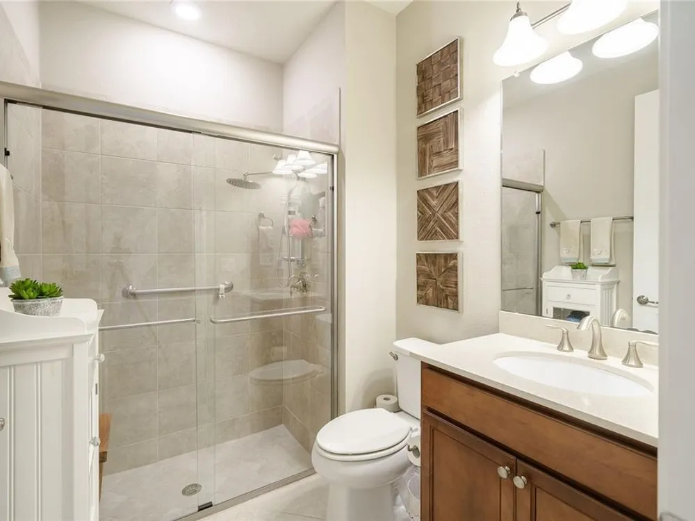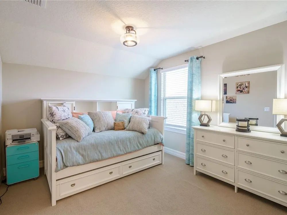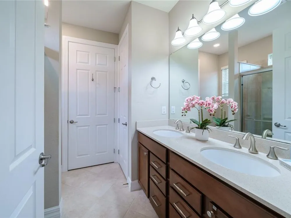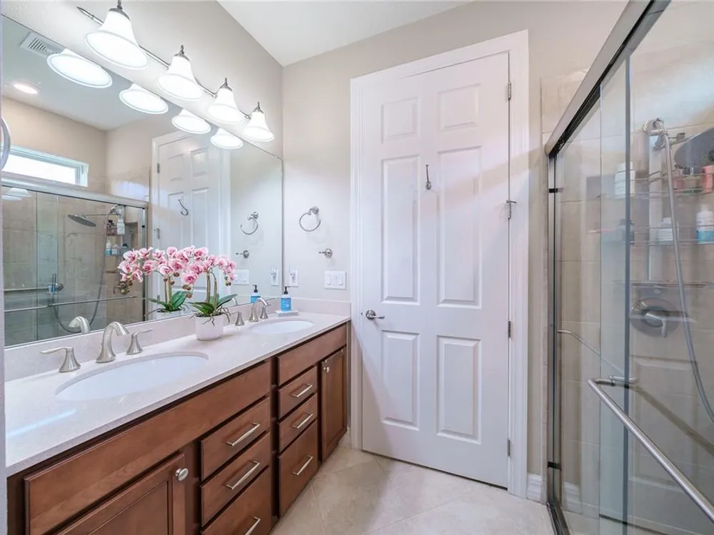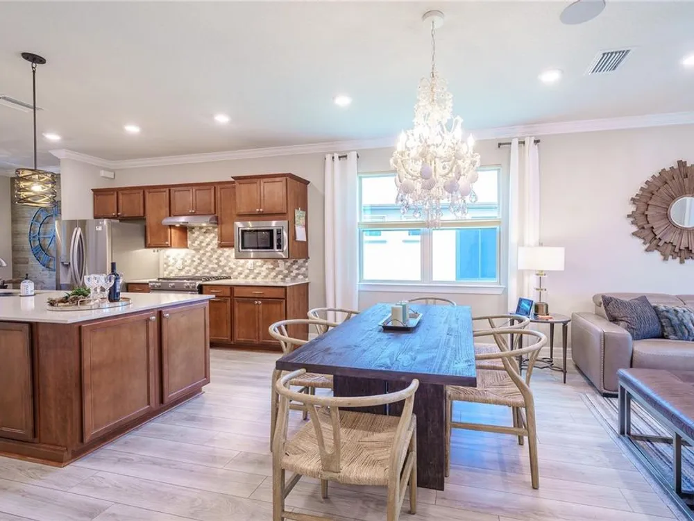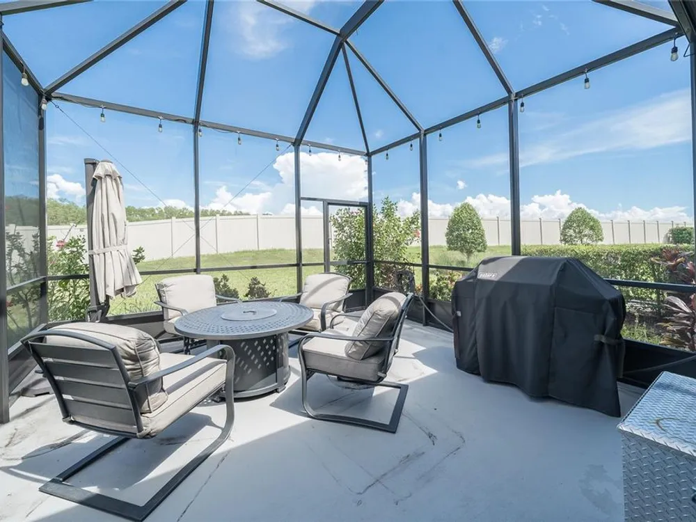 Welcome to this stunning Steel Creek Grand model, perfectly situated in the sought-after gated active over 55 community of Del Webb Bexley in Land O’ Lakes—just minutes from major roads, top shopping and dining, excellent medical facilities, and less than 30 minutes from both Downtown Tampa and Tampa International Airport. From the moment you arrive, the great curb appeal is undeniable, with a brick paver driveway, stone-accented entryway, covered front porch, retractable screen door, and decorative glass inlay front door creating a warm and inviting welcome. Inside, you’ll be greeted by soothing earth tones, wood accent walls, and unique designer light fixtures throughout, with crown molding in every room adding elegance. Luxury vinyl flooring flows through the main living areas, complemented by a staircase with decorative wrought-iron spindles that’s tucked away to preserve the home’s open flow. The heart of the home is the spacious, well-appointed kitchen, featuring a massive quartz island, stainless steel appliances, pull-out shelving, and a custom pantry. Enjoy meals in the sunlit breakfast nook, then transition to the Florida room (not included in square footage) that leads to two screened lanais—one enhanced with perimeter outdoor lighting—perfect for evening gatherings. This well-designed two-story layout features 3 bedrooms, 3 full baths, and a loft. The upstairs offers a private retreat with a bedroom, full bath, and loft—ideal for a guest suite, a grandkids’ playroom, or a home office—complete with built-in surround sound speakers. The primary suite boasts a spa-like ensuite bath with dual sinks, quartz counters, a shower with glass doors, and an exceptional custom-built closet. All closets in the home feature custom built-ins, and the laundry room offers cabinet storage plus an included washer and dryer. The 2-car garage comes with extra storage cabinets that will remain for the new owners. The pie-shaped, oversized backyard provides complete privacy and a peaceful pond view to the left—an ideal spot for morning coffee or quiet relaxation. And with lawn care included, you’ll have more time to enjoy the things you love. If you enjoy staying Active INCREDIBLE AMENITIES include a Resort-Style Pool with lap lanes, Resistance Pool, Hot Tub, and Cabanas, Expansive 19,000 sq. ft. clubhouse, Multipurpose Room and Arts and Crafts Room, Beer and Wine Bar, Cafe/Bistro/, Outdoor Fireplace, Lounge, 2 Tennis Courts, 6 Pickle ball Courts, 4 Bocce Ball Courts, Fitness Center, Movement Studio, Community Garden, Dog Park, and many Resident Clubs and Interest Groups! Whether you're looking for a full-time residence or a second home to escape the cold and snowy days up North, impeccably cared for, this home has it all! Don’t let this one slip away!