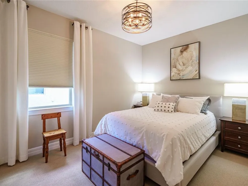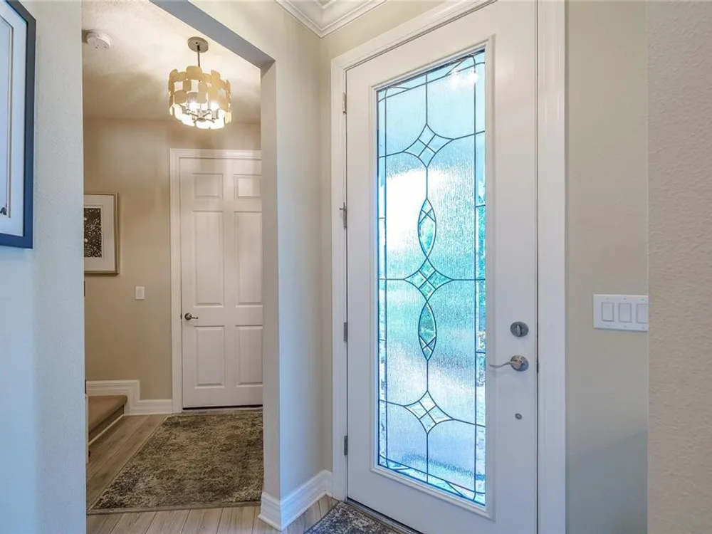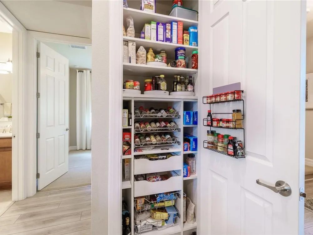 - Ceiling Fan(s), Crown Molding, Eat-in Kitchen, In-Wall Pest Control, Open Floorplan, Main Level Primary, Solid-Wood Cabinets, Split Bedrooms, Stone Counters, Walk-In Closet(s), Window Treatments