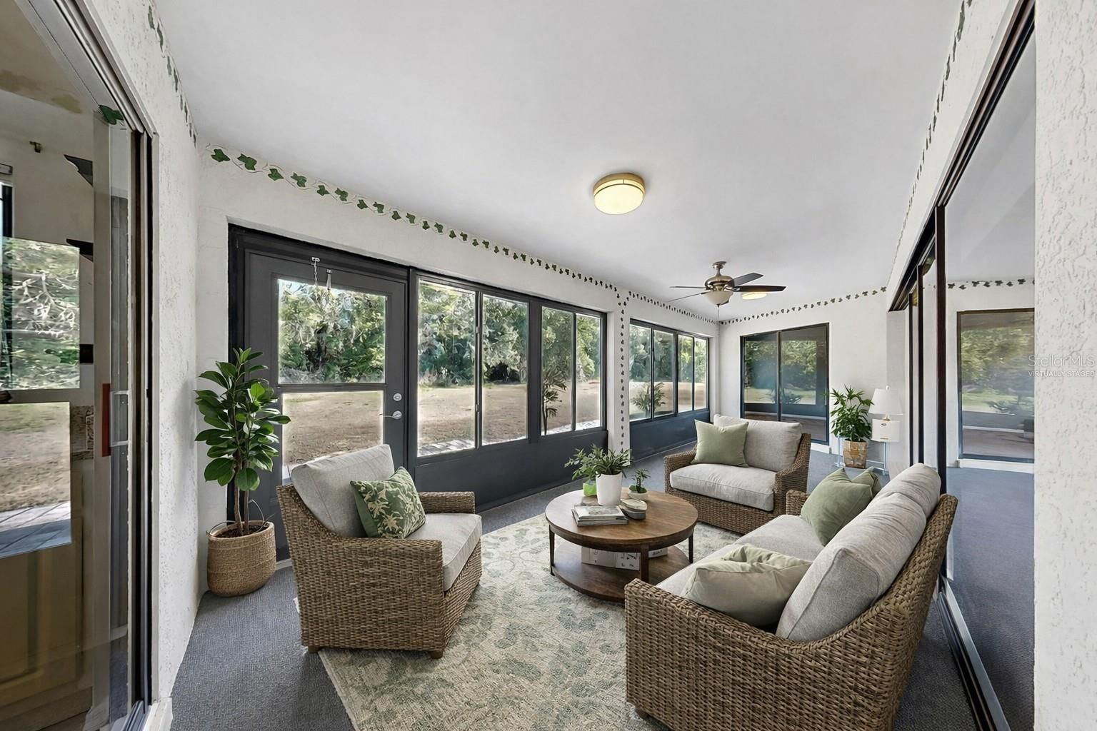 Beautiful “Islander” home in Sun City Center is ready for its new owner! Freshly painted exterior and outstanding curb appeal welcome you with stone pavers, colorful landscaping, and a neutral color palette. Step inside to a bright and airy living space featuring soaring ceilings that create an open, spacious feel. This well-designed home offers 2 bedrooms, 2 bathrooms, a versatile flex space, and a 2-car garage. The split-bedroom layout provides privacy, with the secondary bedroom located on the opposite side of the home. The updated kitchen features white cabinetry, granite countertops, and stainless steel appliances—perfect for both everyday living and entertaining. The spacious primary suite includes a beautifully renovated ensuite bath that is sure to impress. Enjoy outdoor living with a large backyard and private conservation views, offering peace and privacy with no rear neighbors. Updates include: 2026 Exterior Paint, 2010 Roof, 2020 HVAC, 2020 Garage Door, 2018 Electrical Panel, 2005 Re-pipe, and 2019 Dual-Sink Vanity Conversion. This home has a water filtration system. It also has a private well for irrigating the yard which results in big savings costs for watering the lawn. Located in the quiet Westlake Greens neighborhood, this property has no CDD fees and an incredibly low HOA of just $50 per year. Conveniently situated near I-75, Hwy 301, and Hwy 41, you’ll enjoy easy access to downtown Tampa, both major airports, shopping, dining, and the beautiful Gulf beaches. Experience the lifestyle that makes Sun City Center one of Florida’s premier active adult communities, offering fitness centers and pools (indoor & outdoor), tennis and pickleball courts, golf courses and lawn bowling, clubs, dog parks and social activities. This is a true golf cart community, with easy access to medical facilities, banks, restaurants, and everyday shopping. Call today to see this lovely home.