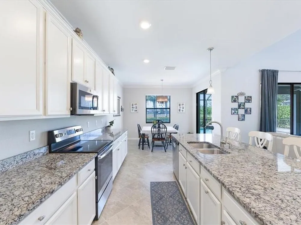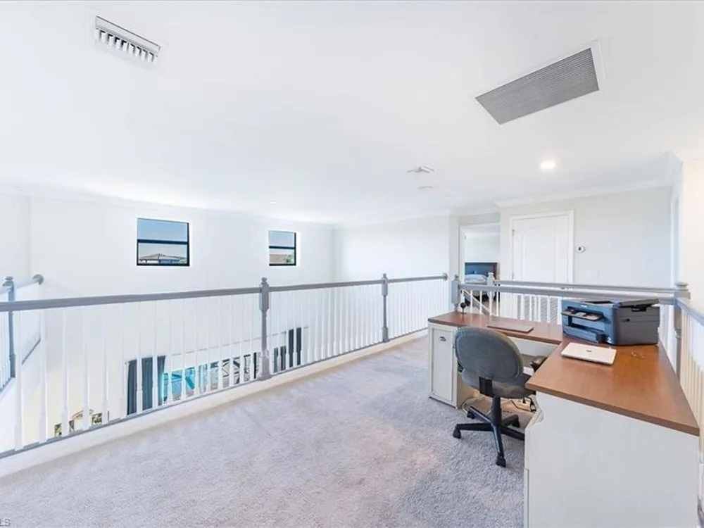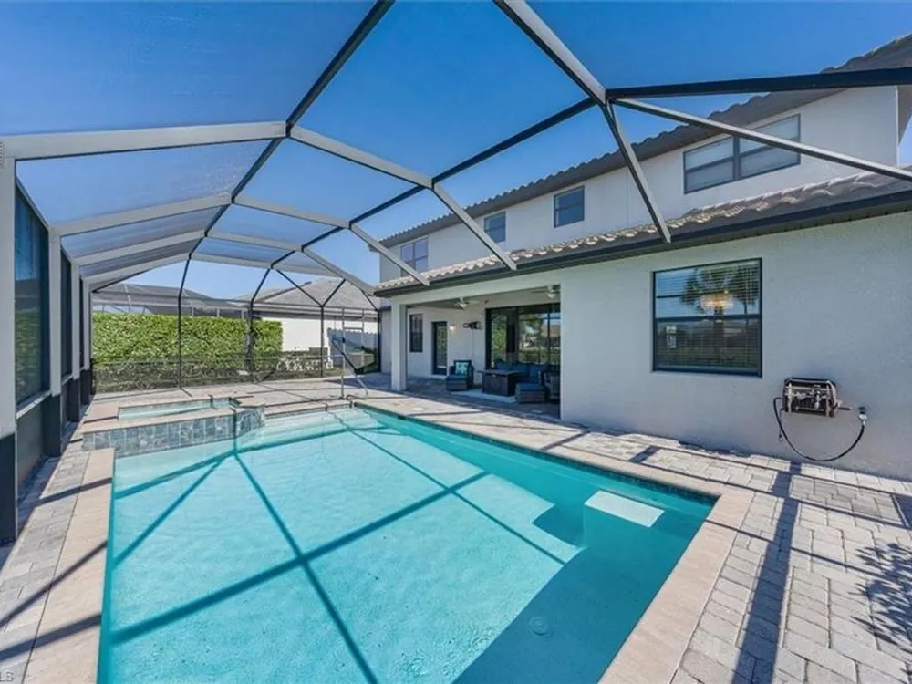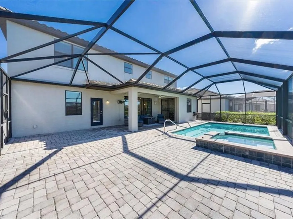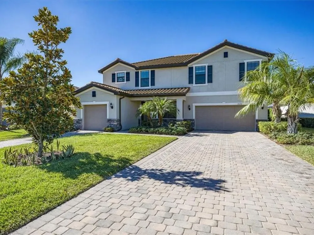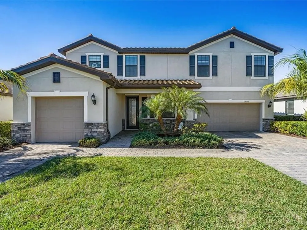 Discover unparalleled comfort in The Sorrento, an impressive residence featuring 5 spacious bedrooms, 4.5 baths - ensuring everyone enjoys their private sanctuary. The open-concept kitchen boasts granite countertops, pantry, sizable center island with breakfast bar, breakfast nook & access to an outdoor haven. Formal affairs find a perfect venue in the connected living & dining room while the first-floor's fifth bedroom is ideal for guests. A huge 2nd level loft beckons as a library or media space while the 2nd-floor master suite exudes luxury with his/hers closets, a soaking tub & a glass walk-in shower. Embrace the Florida lifestyle on the screened, covered lanai featuring a heated saltwater pool & spa overlooking the tranquil landscaped backyard & stunning sunsets! Modern features abound, including luxury finishes, crown molding & designer lighting while the split 3-car garage offers flexibility for both vehicles & toys. Located in the gated community of The Place at Corkscrew, residents enjoy amenities such as a resort-style pool, waterslide, spa, splash park, fitness center, cafe, marketplace, restaurant, bar, playgrounds, dog park and sports courts.