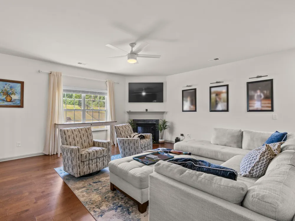 Welcome to this beautiful 4-bedroom, 2.5-bath home located in the highly sought-after gated golf community of Cobblestone Park. This residence offers the perfect blend of luxury, comfort, and peace of mind with 24/7 private security. Step inside to discover a spacious kitchen featuring stainless steel appliances—ideal for both everyday living and entertaining. The open floor plan flows effortlessly, with a cozy fireplace adding warmth to the main living area. Upstairs, a versatile flex space provides the perfect setting for a home office, playroom, or media room. The primary suite is a private retreat, complete with vaulted ceilings, a double vanity, a soaking tub, a separate custom tile shower with glass shower doors , and a large walk-in closet. Step outside to enjoy a covered back porch overlooking a beautifully landscaped backyard—perfect for relaxing or hosting guests. As a resident of Cobblestone Park, you'll also enjoy the community amenities, including sidewalks, pool, tennis courts, a playground, basketball court, and a clubhouse—all within a secure, gated environment. Disclaimer: CMLS has not reviewed and, therefore, does not endorse vendors who may appear in listings.