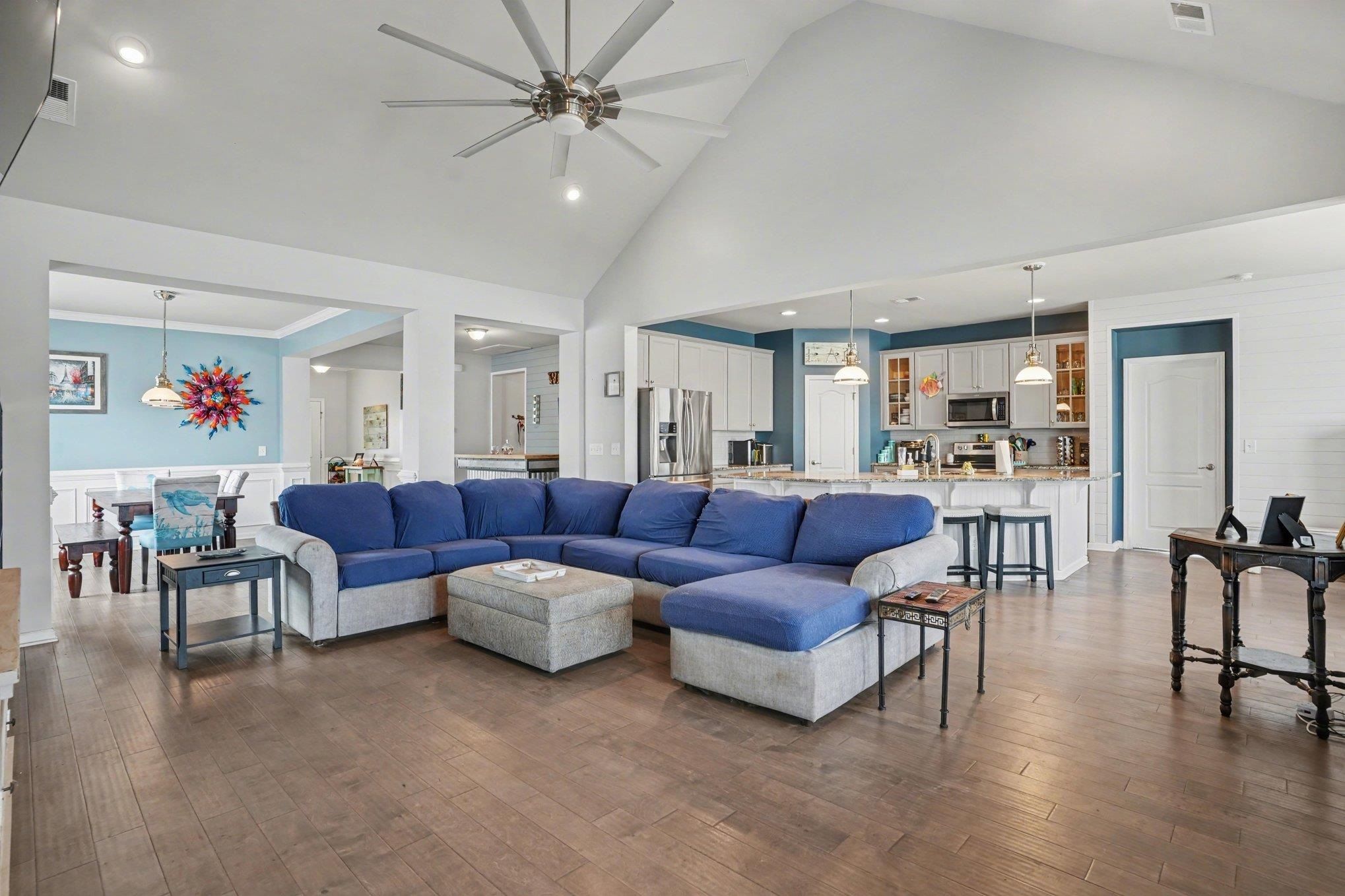 - Tray Ceiling(s), Ceiling Fan(s), Dual Sinks, Main Level Primary, Split Bedrooms, Separate Shower, Vanity, Walk-In Closet(s), Breakfast Bar, Bedroom on Main Level, Entrance Foyer, Stainless Steel Appliances, Solid Surface Counters