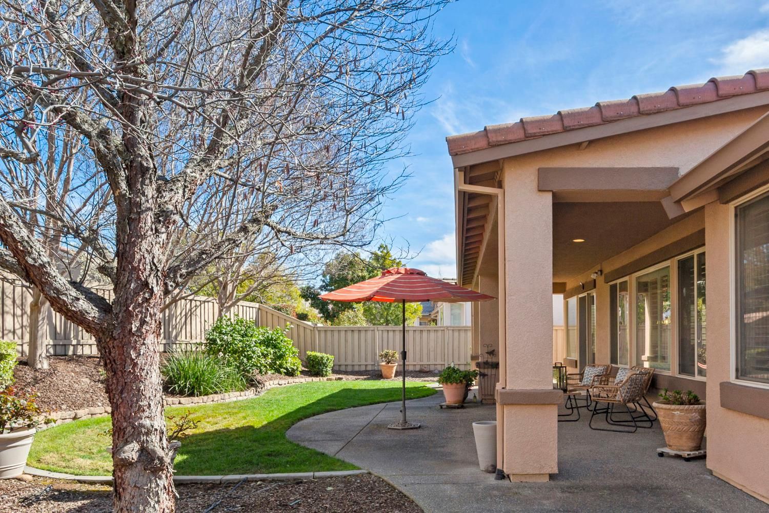 Terrific Orchard Crest plan with wonderful private yard. This home provides a spacious kitchen with center island, pull-out shelving, loads of counter space. It features gas range and oven, dishwasher, refrigerator, 2 bathrooms, laundry room and dining area large enough for a family-sized table and buffet. The Primary bedroom has a boxed Bay Window. Primary bath is updated to include newer stall shower and new countertop with above mount sinks. Plantation shutters throughout. Ceiling fans most rooms. The peaceful backyard has a large covered patio that welcomes the afternoon shade for relaxing outdoors on those warm Summer days. Be sure to check out the 2.5 car garage with loads of professionally installed cabinetry. Newer exterior paint. Seller says no Kitec Plumbing.